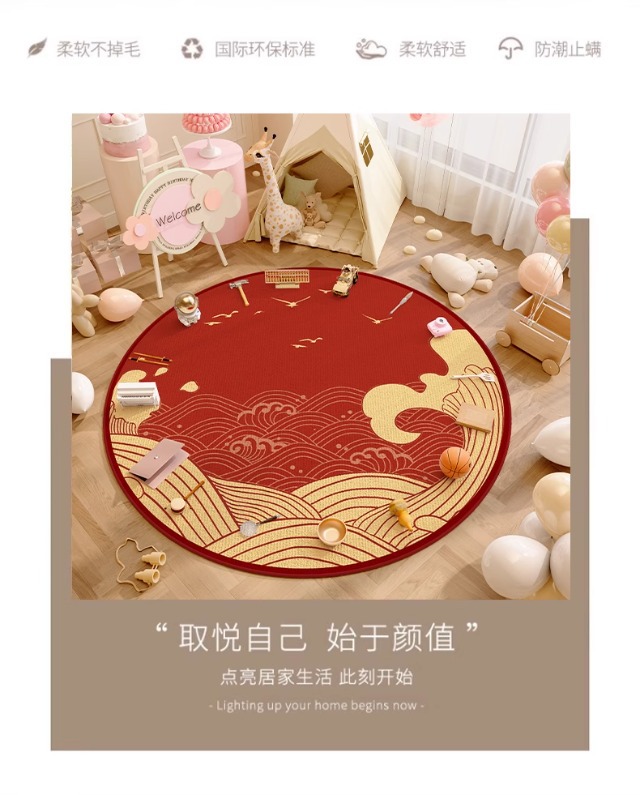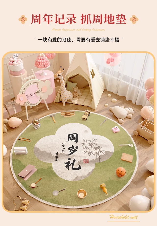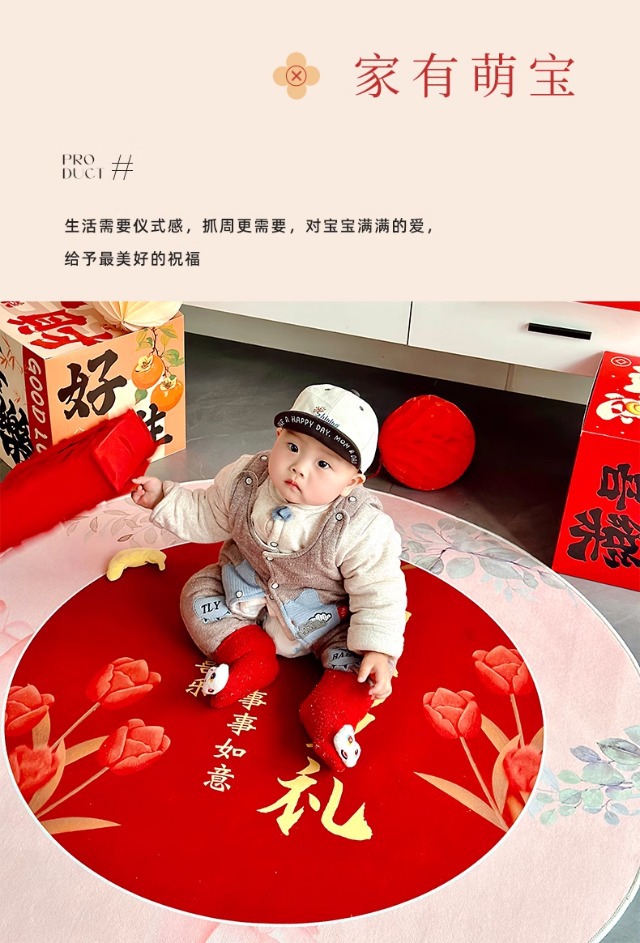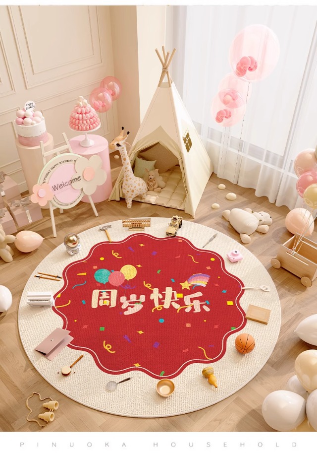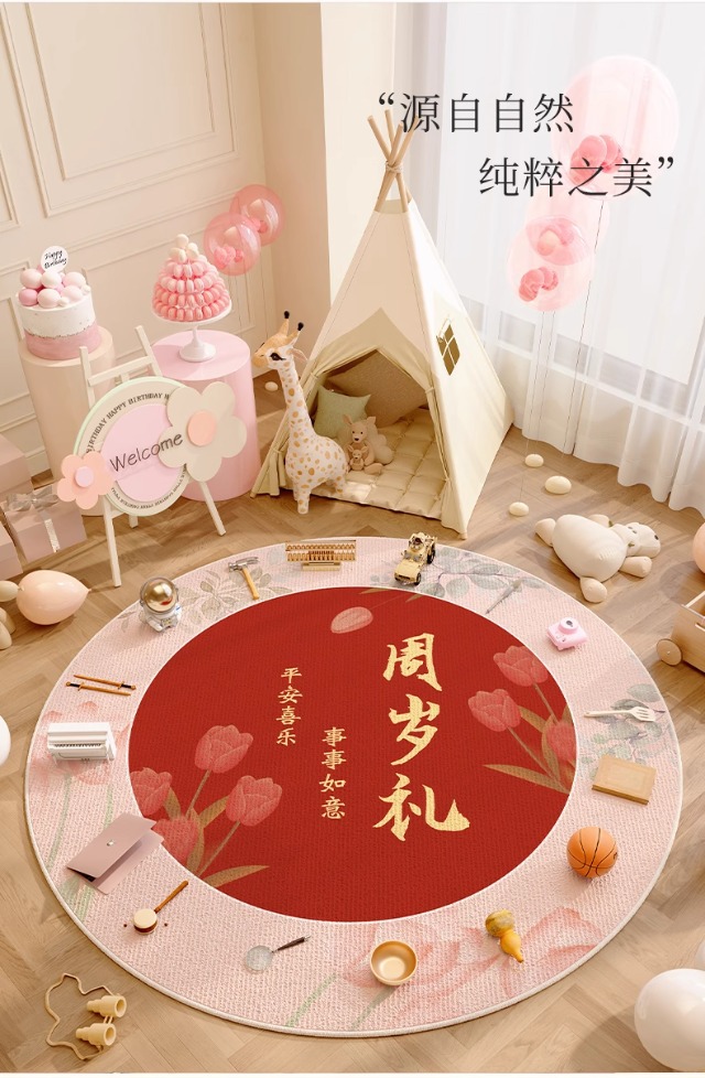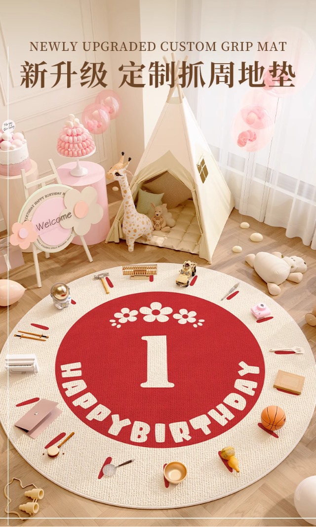 Casi alfombra de un año alfombra de cumpleaños props de diseño dragón bebé raspar la alfombra de la sala de estar para niños almohadilla redonda roja