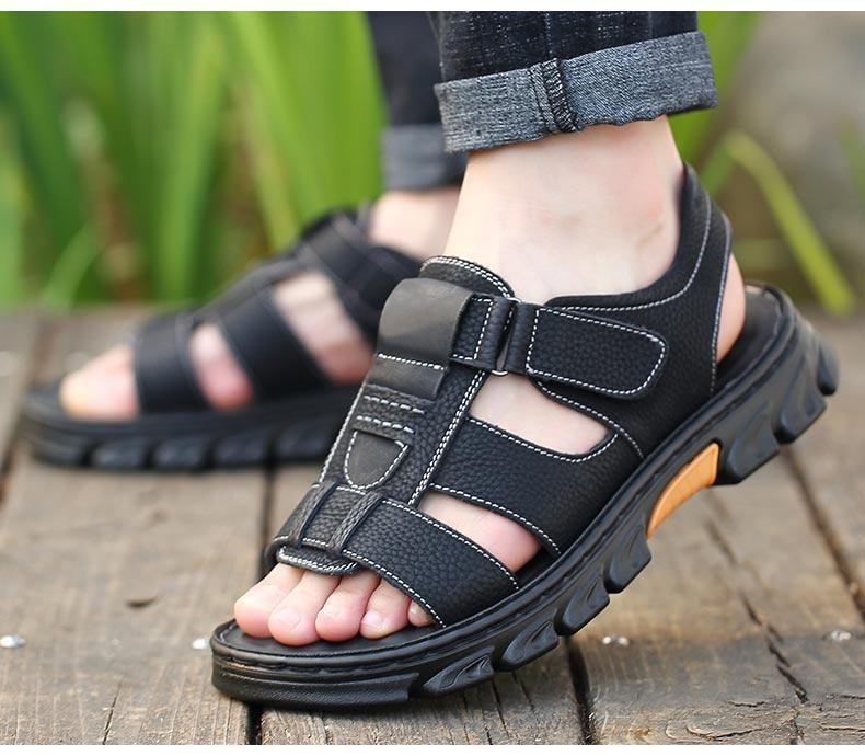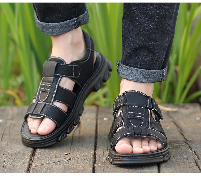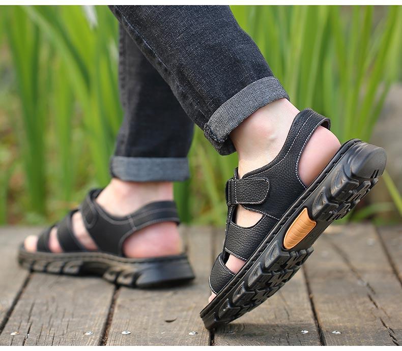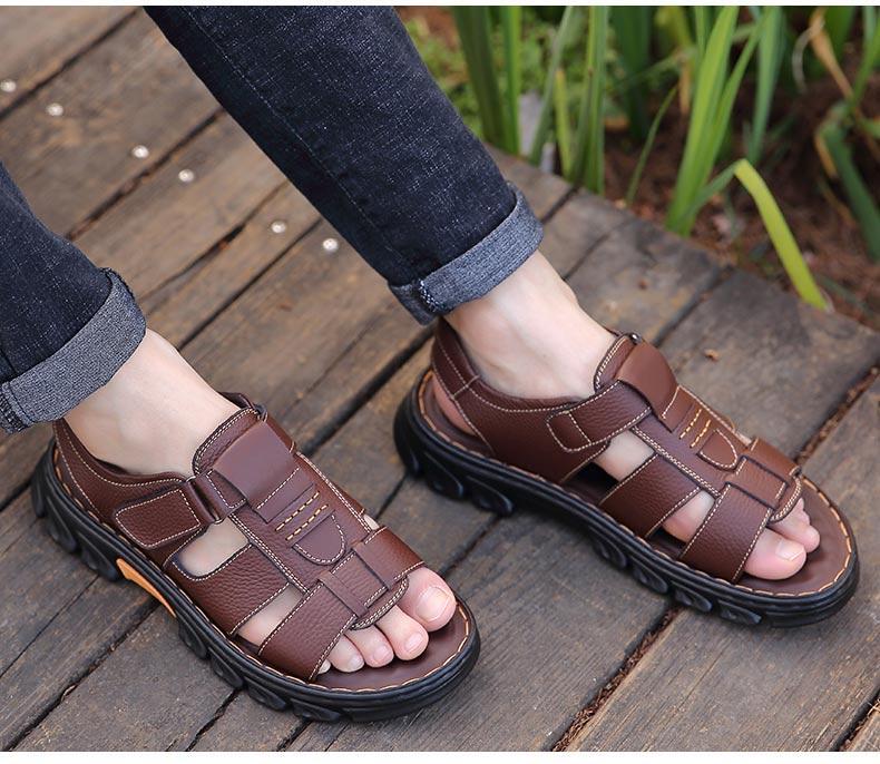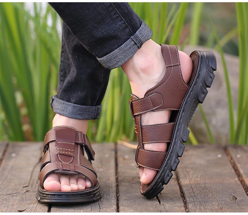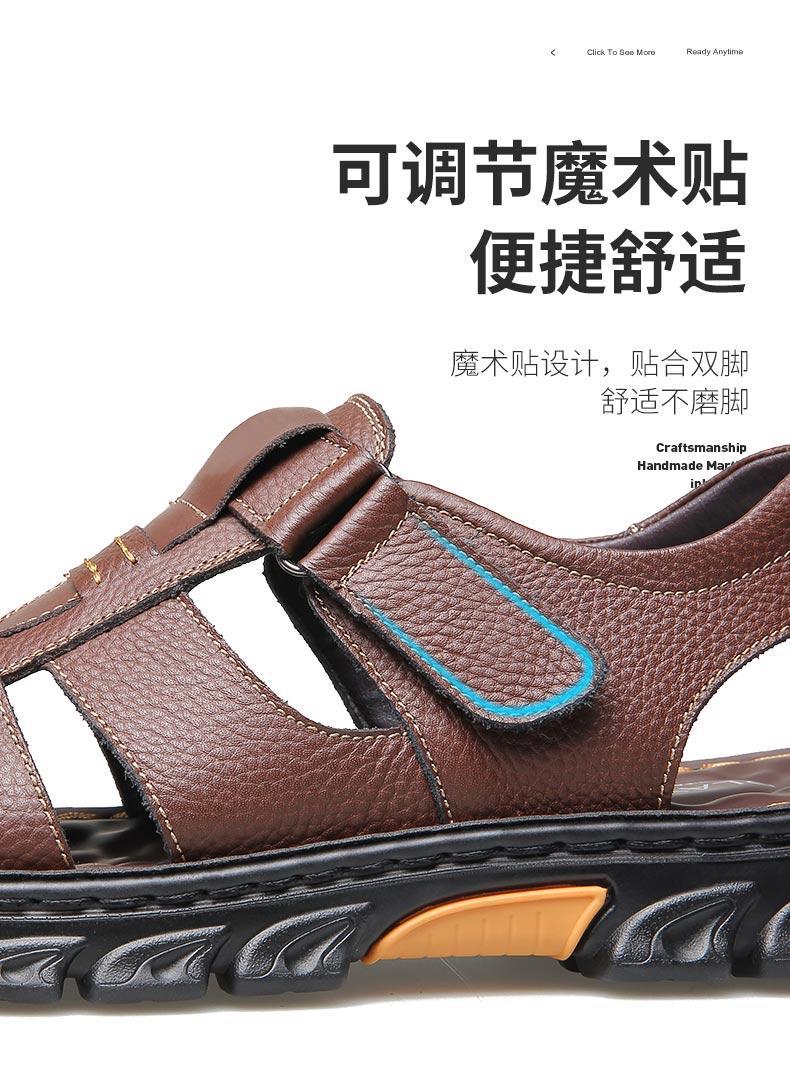 Sandalias de piel de vaca de gran tamaño para hombre verano casual transpirable velcro plataforma impermeable antideslizante zapatos de playa para papá de mediana edad y ancianos
