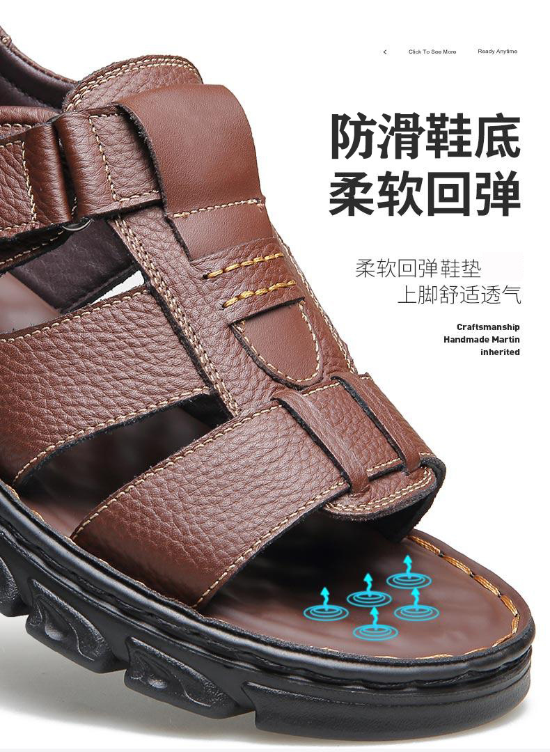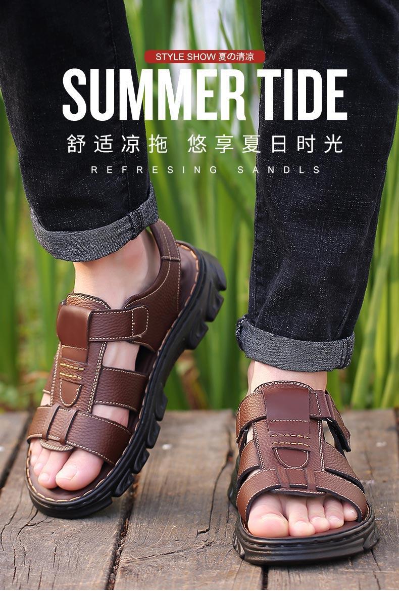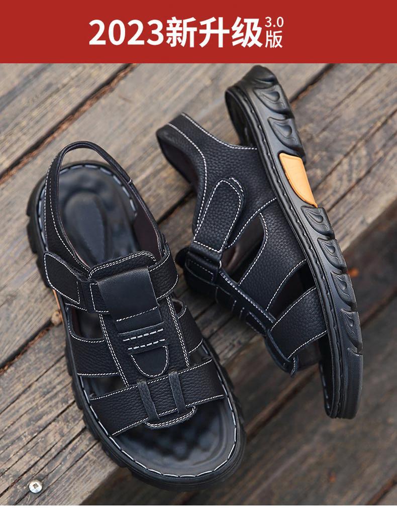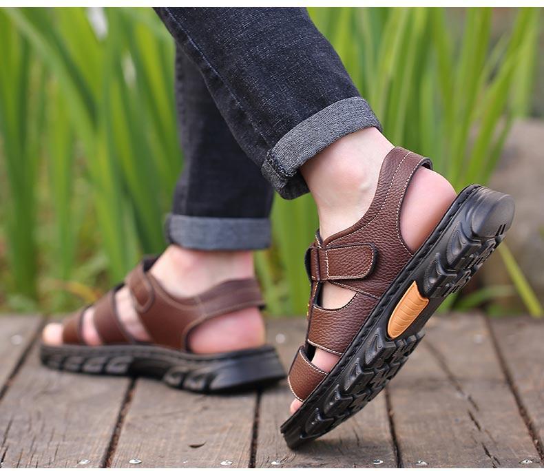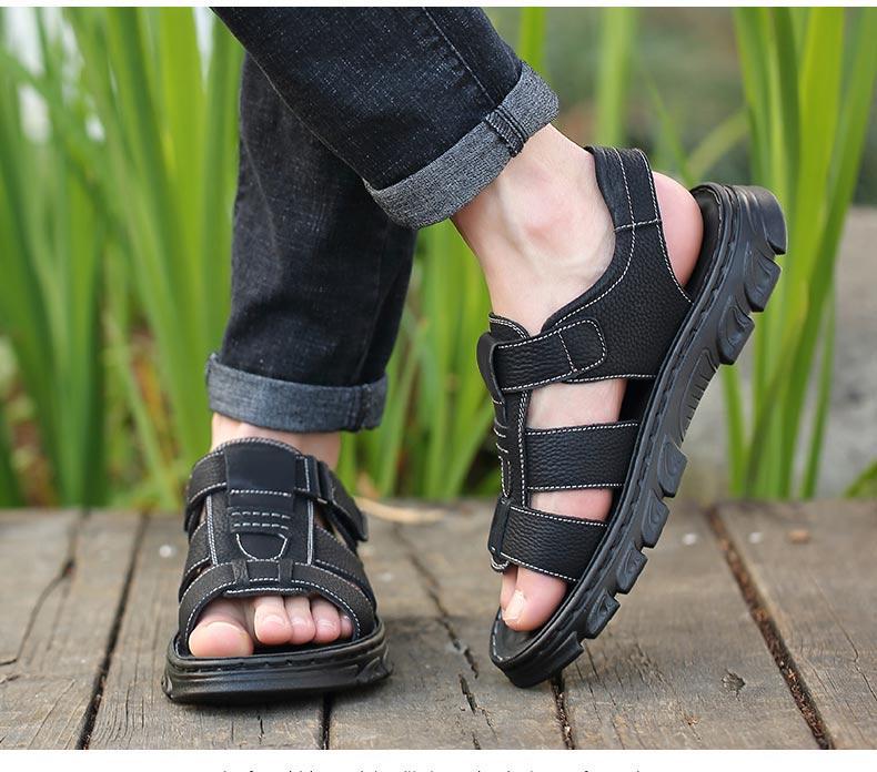 Sandalias de piel de vaca de gran tamaño para hombre verano casual transpirable velcro plataforma impermeable antideslizante zapatos de playa para papá de mediana edad y ancianos
