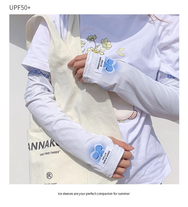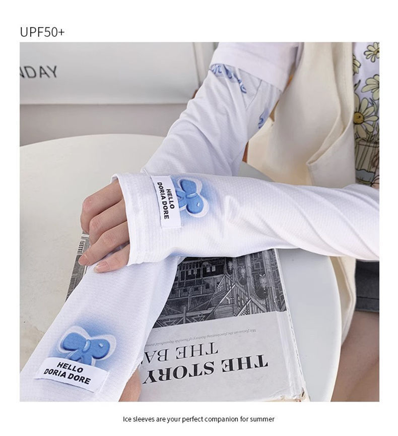 Cubierta de manga de lazo de protector solar de seda de hielo para mujer, ciclismo al aire libre de verano, protector solar, mangas de hielo, protección del brazo, protección UV, estilo fino