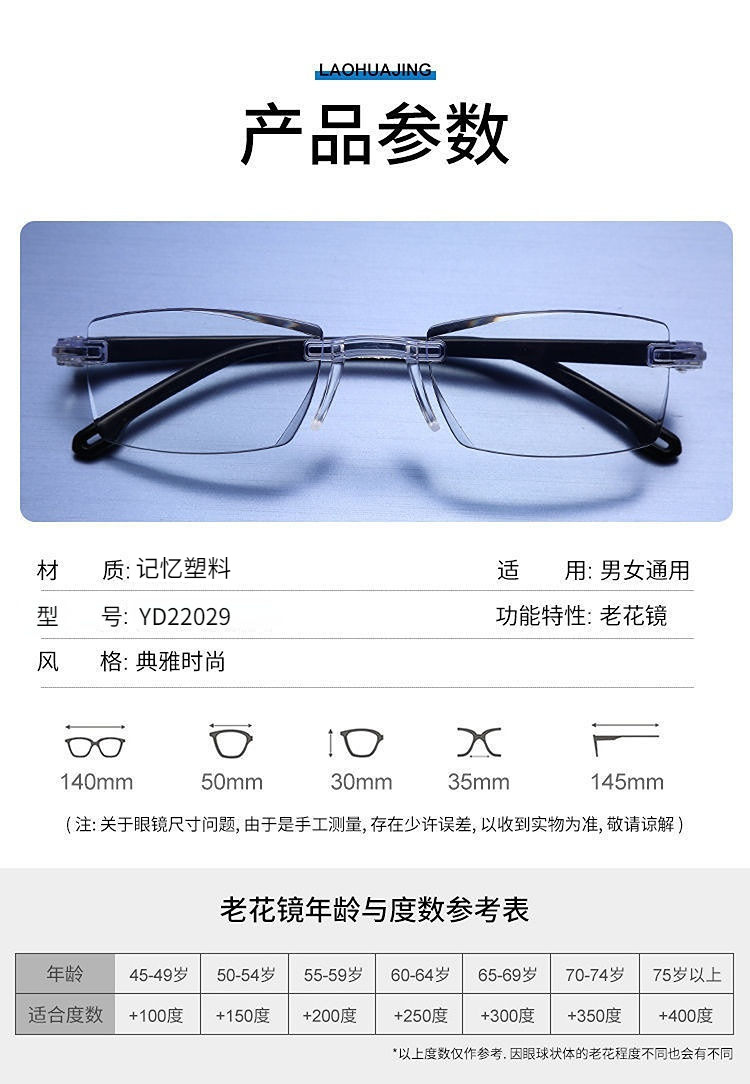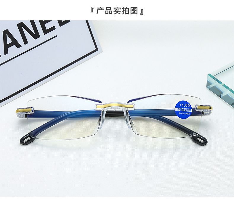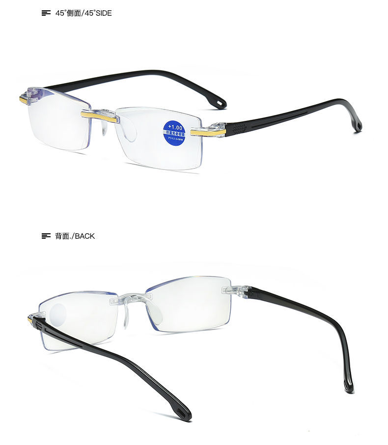 Tecnología negra inteligente anti-luz azul anti-radiación de alta definición de moda sin marco de doble propósito ultraligero anti-caída de mediana edad gafas para ancianos