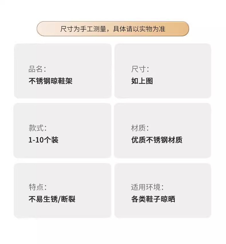 ![Rack de secado de zapatos de acero inoxidable [10 paquetes]](https://cbu01.alicdn.com/img/ibank/O1CN010tQW0g1sOlGFaOPrB_!!2221148235757-0-cib.jpg)