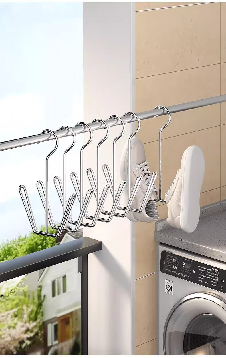 Estante de secado de zapatos de acero inoxidable balcón ventana a prueba de viento colgando estante de secado de zapatos grueso artefacto de secado de zapatos sin agujeros multifuncional