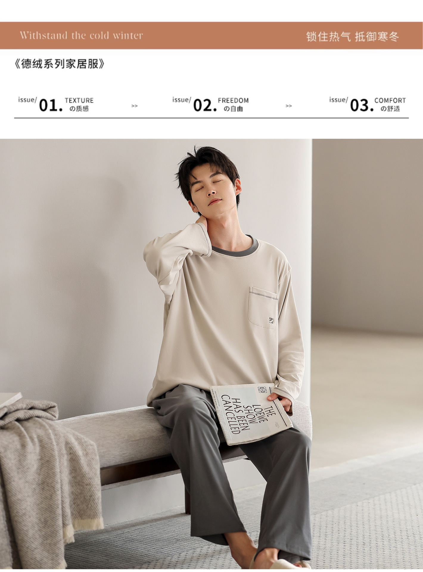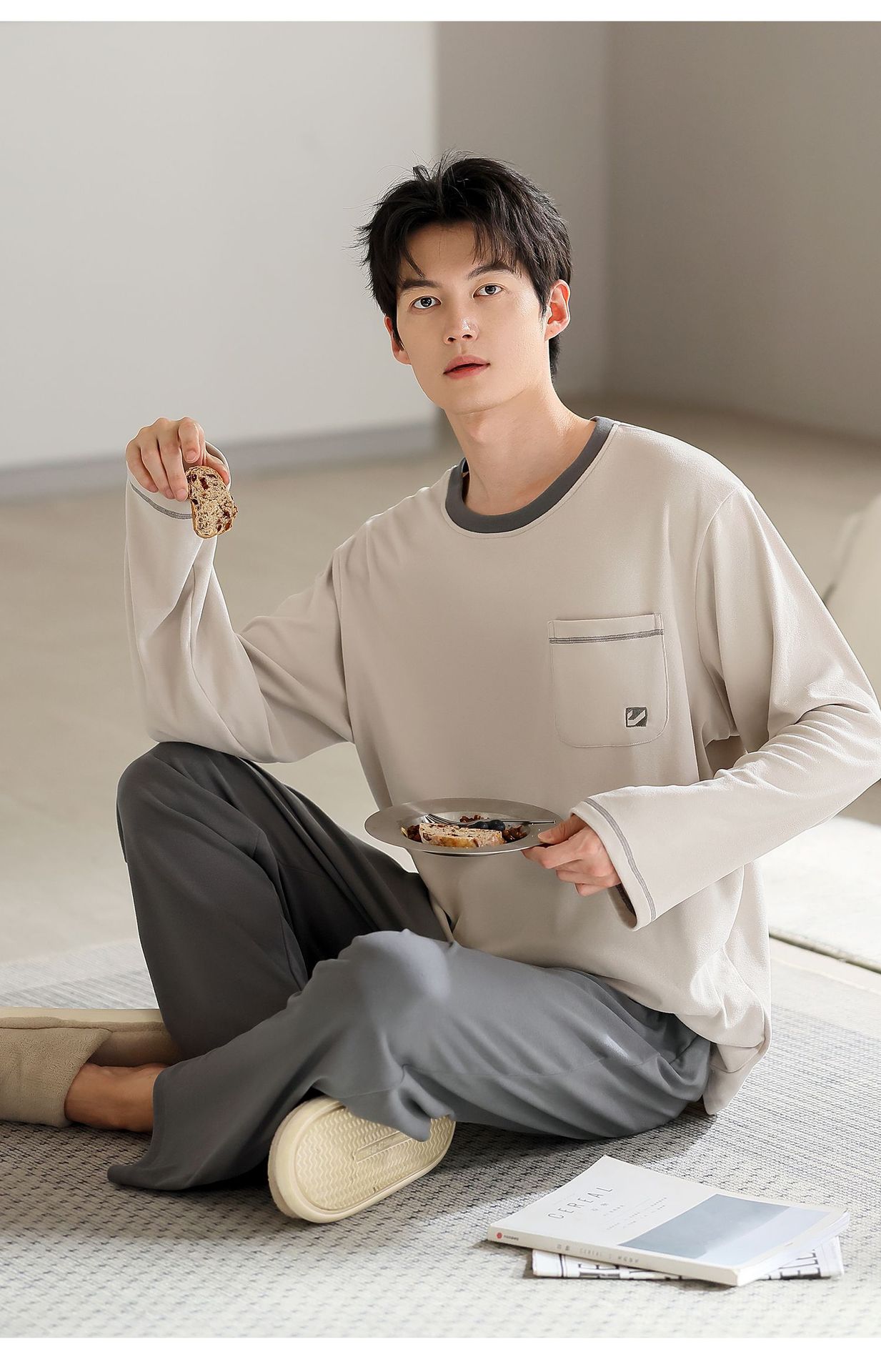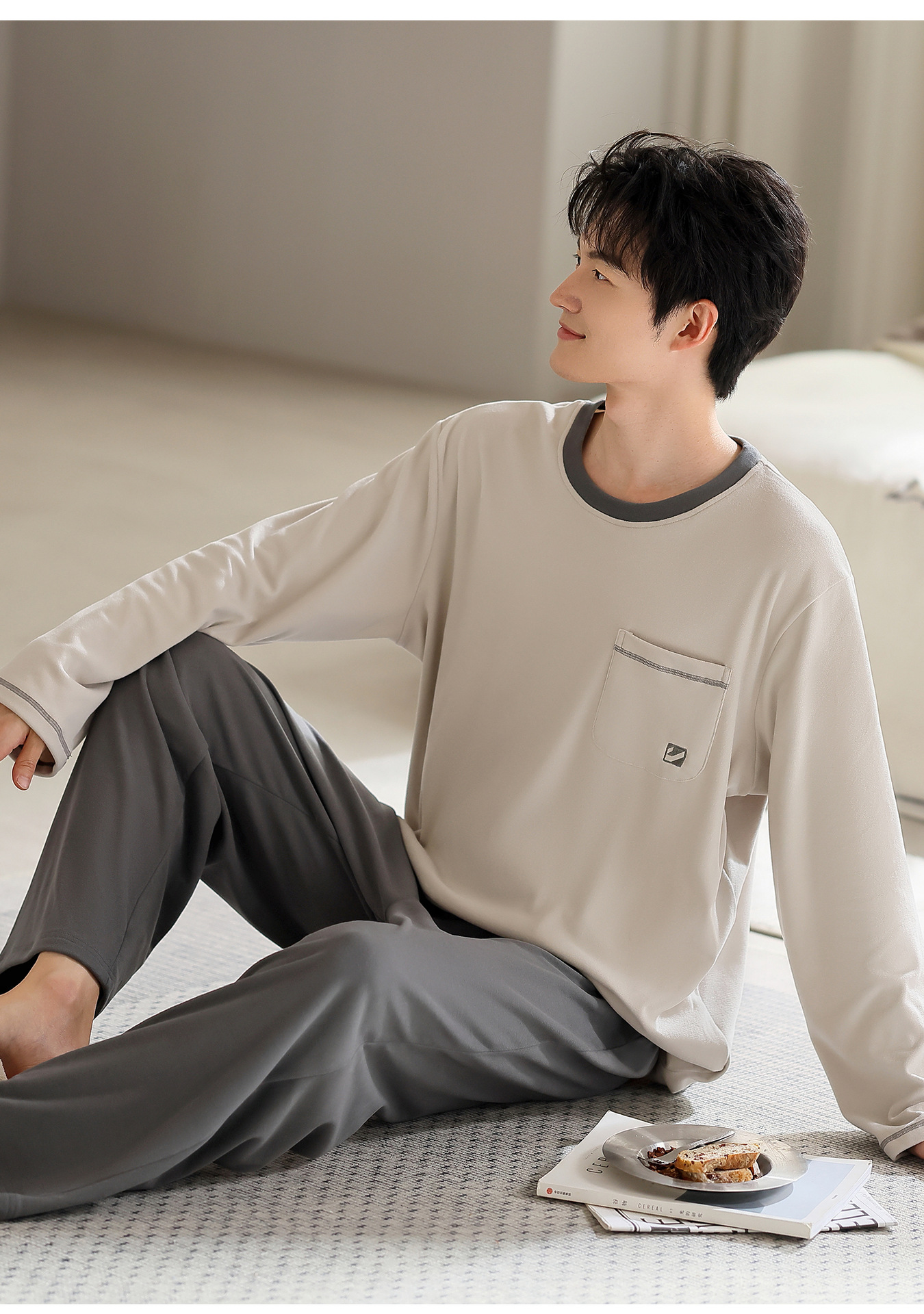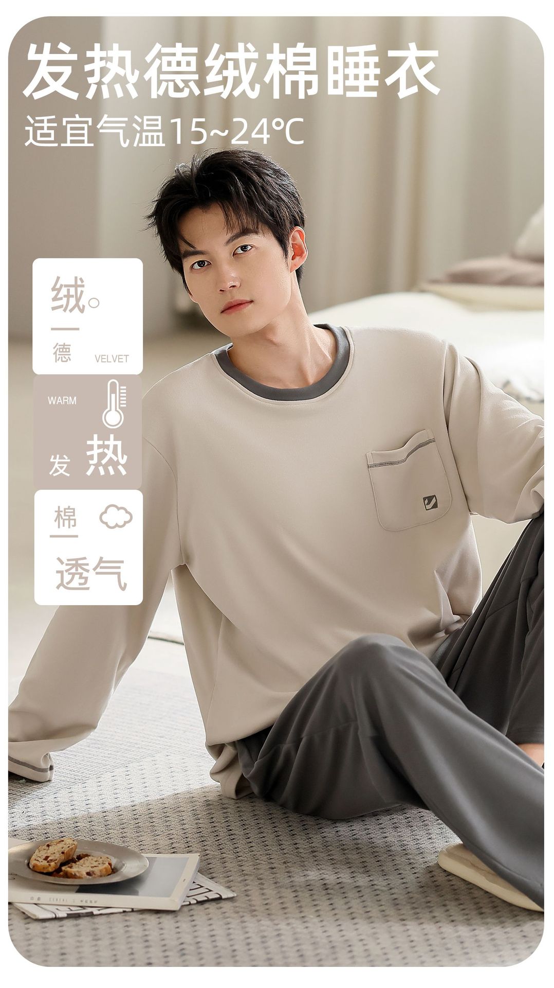 Nuevo otoño y invierno de algodón de terciopelo conjunto de pijamas de terciopelo delgado hombre simple ropa de hogar se puede usar con un conjunto cálido