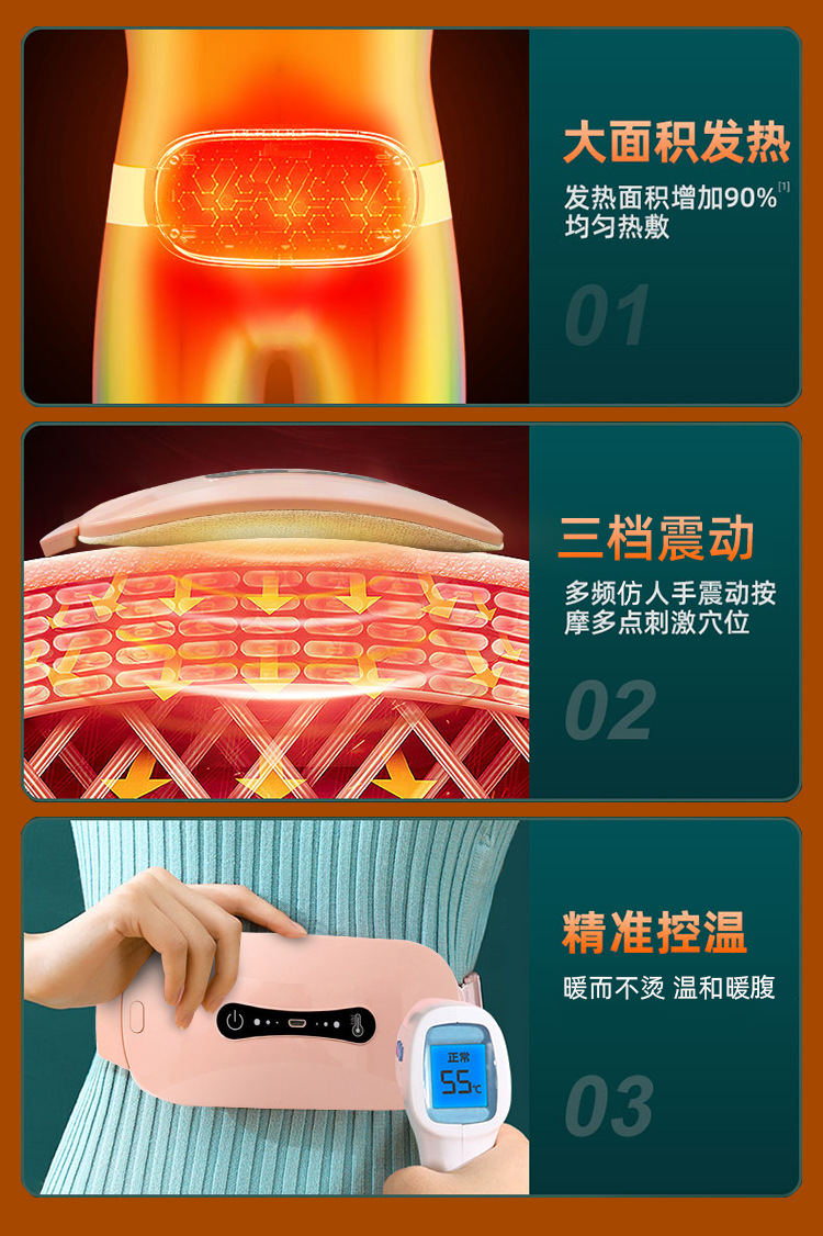 Cinturón abdominal calefactor, protector de cintura, calentador de estómago, cinturón térmico, cinturón menstrual, compresa caliente, fabricante de cinturones de masaje por vibración.