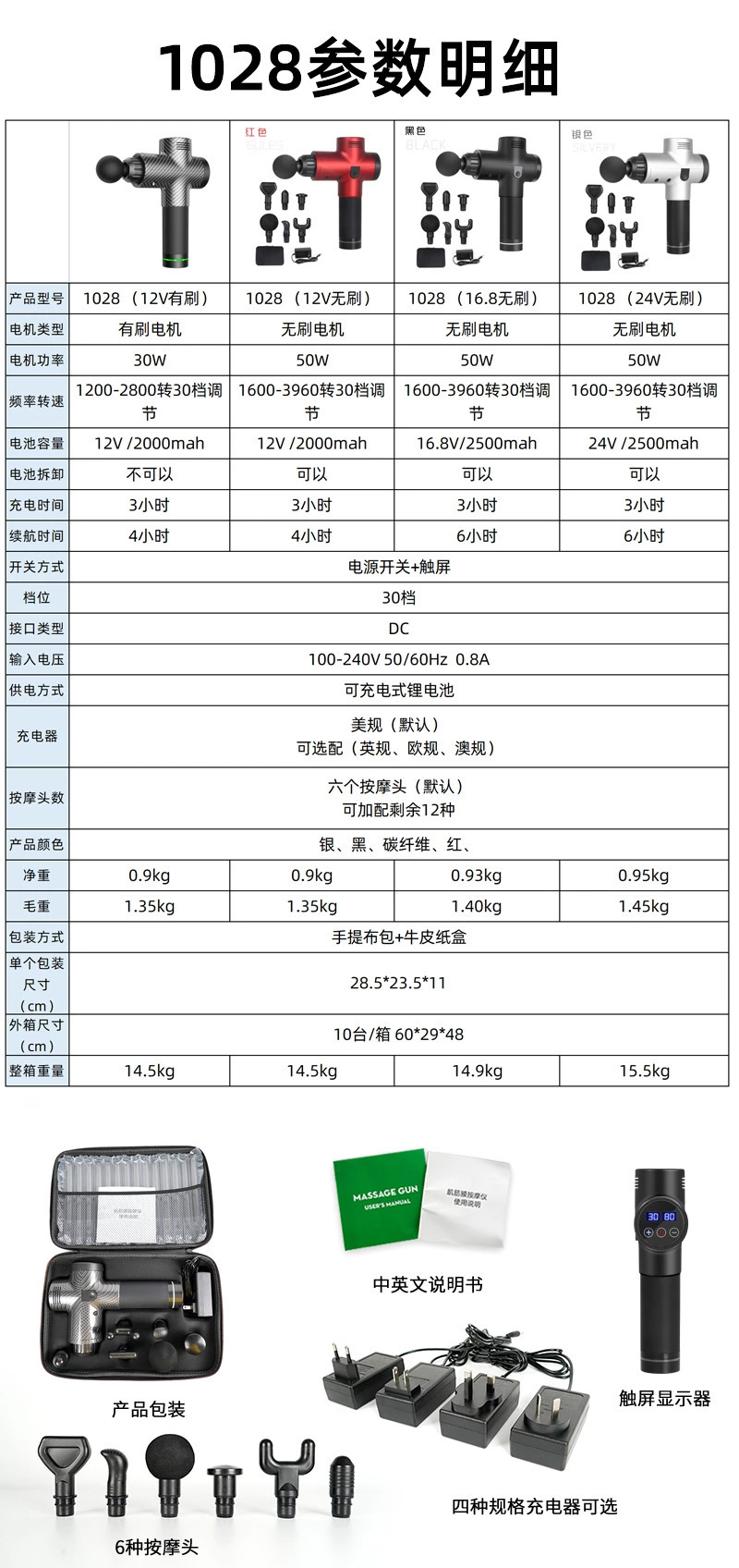 | Color | 1028 pistola de fascia 12V negro, 1028 pistola de fascia 12V plateada, 1028 pistola de fascia 12V fibra de carbono, 1028 pistola de fascia 16.8V negro, 1028 pistola de fascia 16.8V plateada, 1028 pistola de fascia 16.8V fibra de carbono, 1028 pistola de fascia 24V negro, 1028 pistola de fascia 24V plateada, 1028 pistola de fascia 24V fibra de carbono |