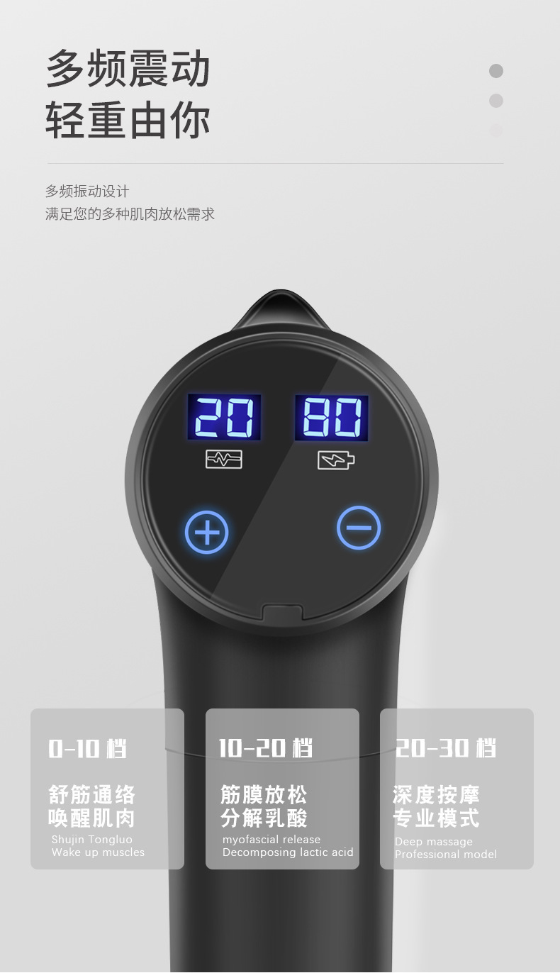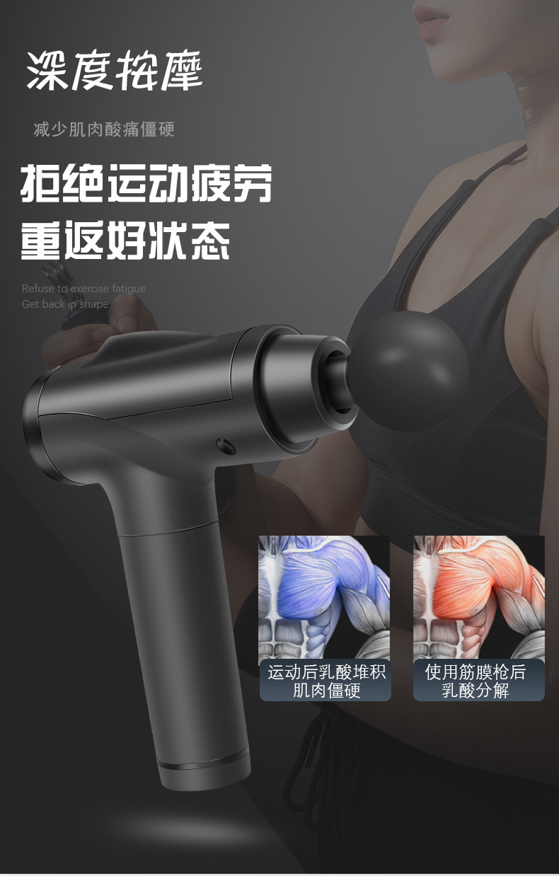Transfronterizos al por mayor deportes portátiles de acondicionamiento físico relajador muscular pistola de choque eléctrico multi-frecuencia pistola de relajación de vibración pistola fascia