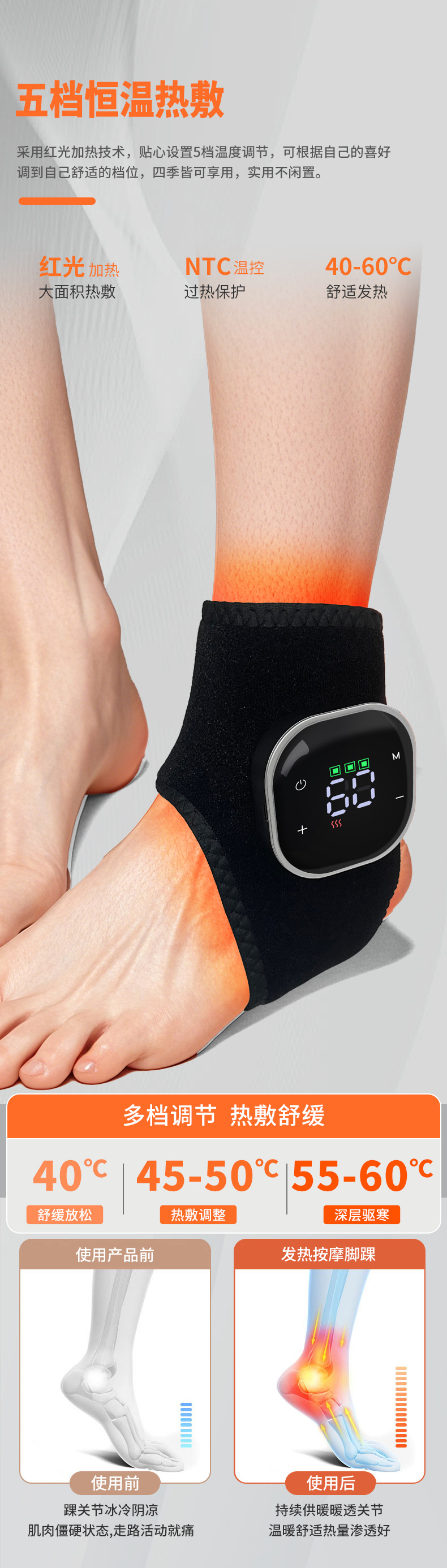 Nuevo masajeador de tobillo de luz roja masajeador de pies de compresión caliente vibración calor articulación pedoterapia transfronteriza