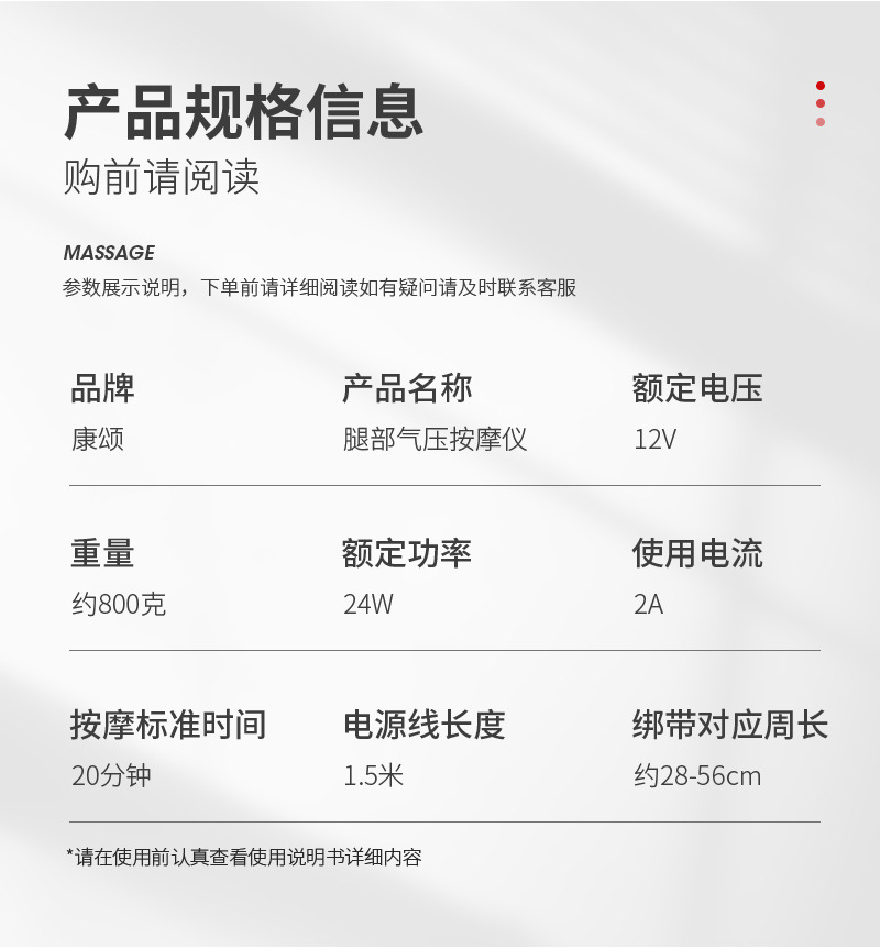 | Color | Tres masajes de piernas, dos masajes de piernas |