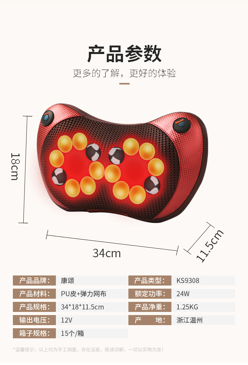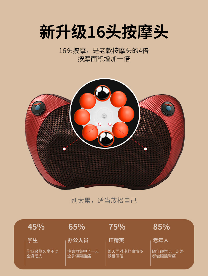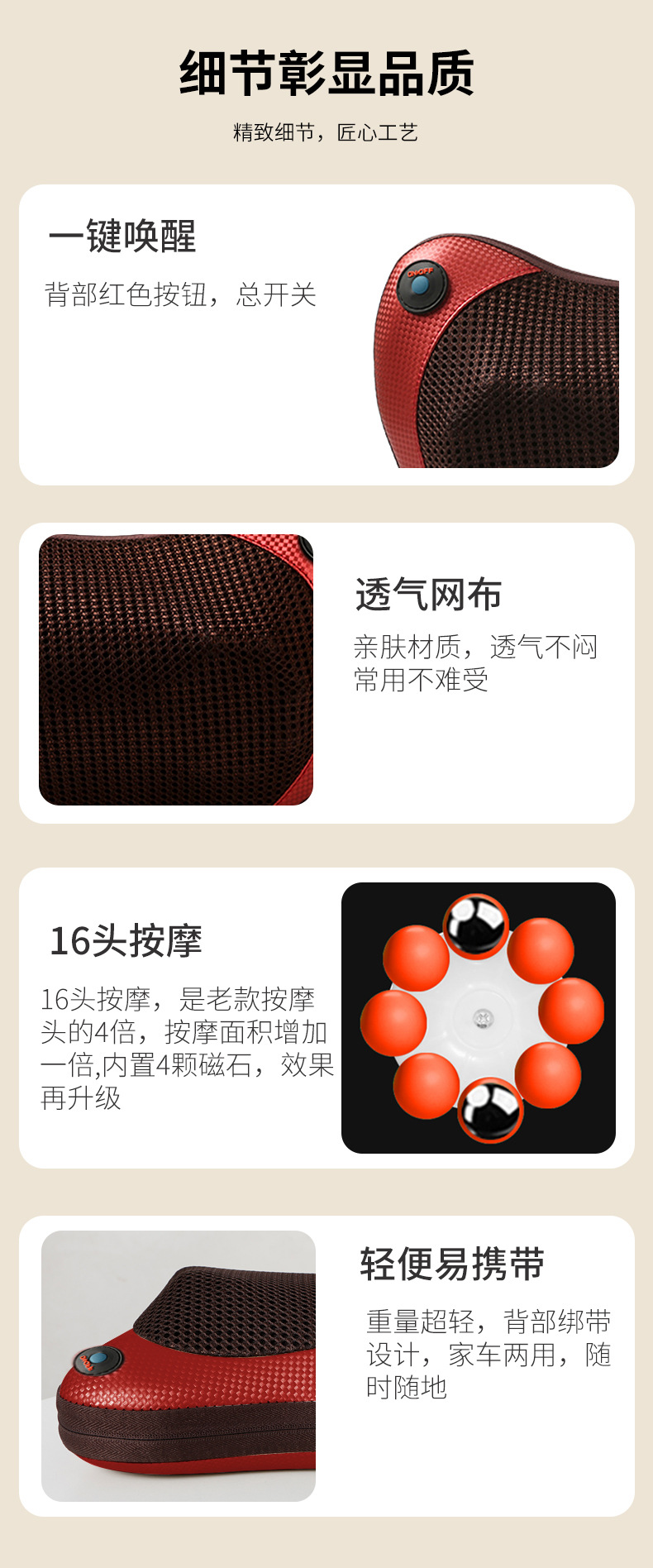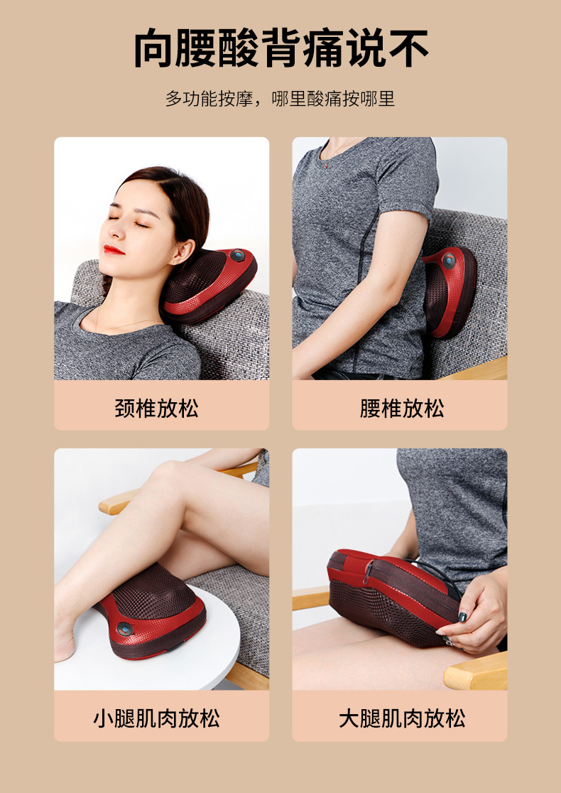 Masajeador de columna cervical de comercio exterior, hombro eléctrico, cuello, cintura, espalda, almohada de masaje de cuerpo completo multifuncional, cojín doméstico para automóvil