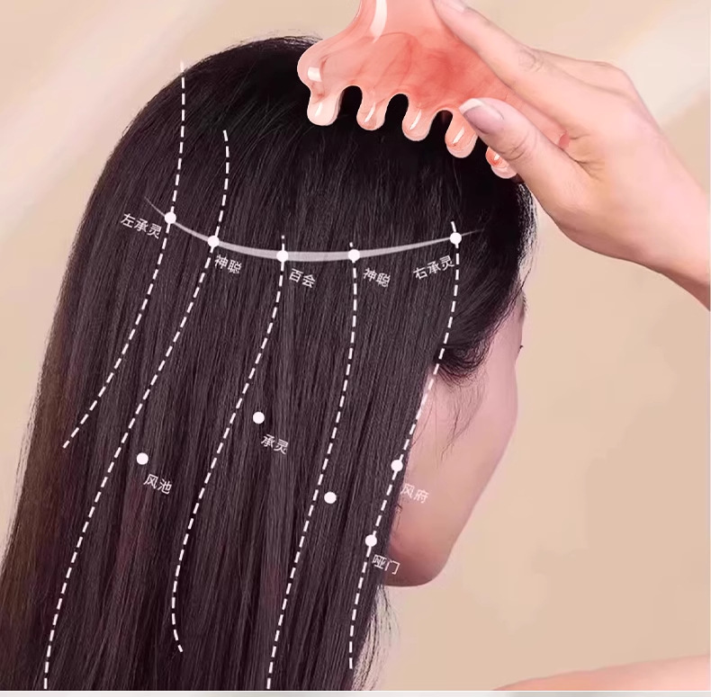 Peine de masaje Peine de meridianos de cabeza Masaje de terapia para hombres y mujeres Raspe el cuero cabelludo para dragar peine de dientes anchos Peine de meridianos portátil