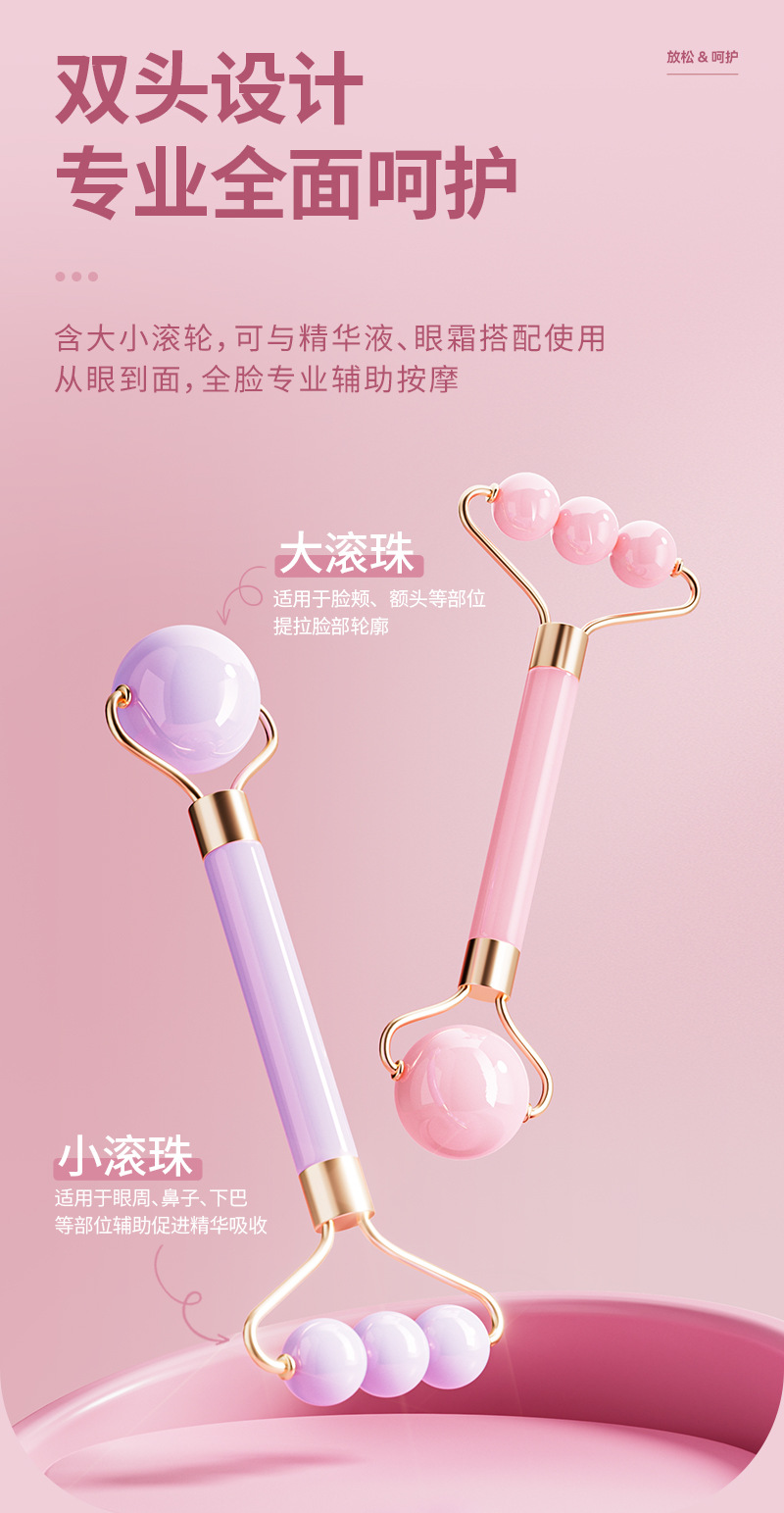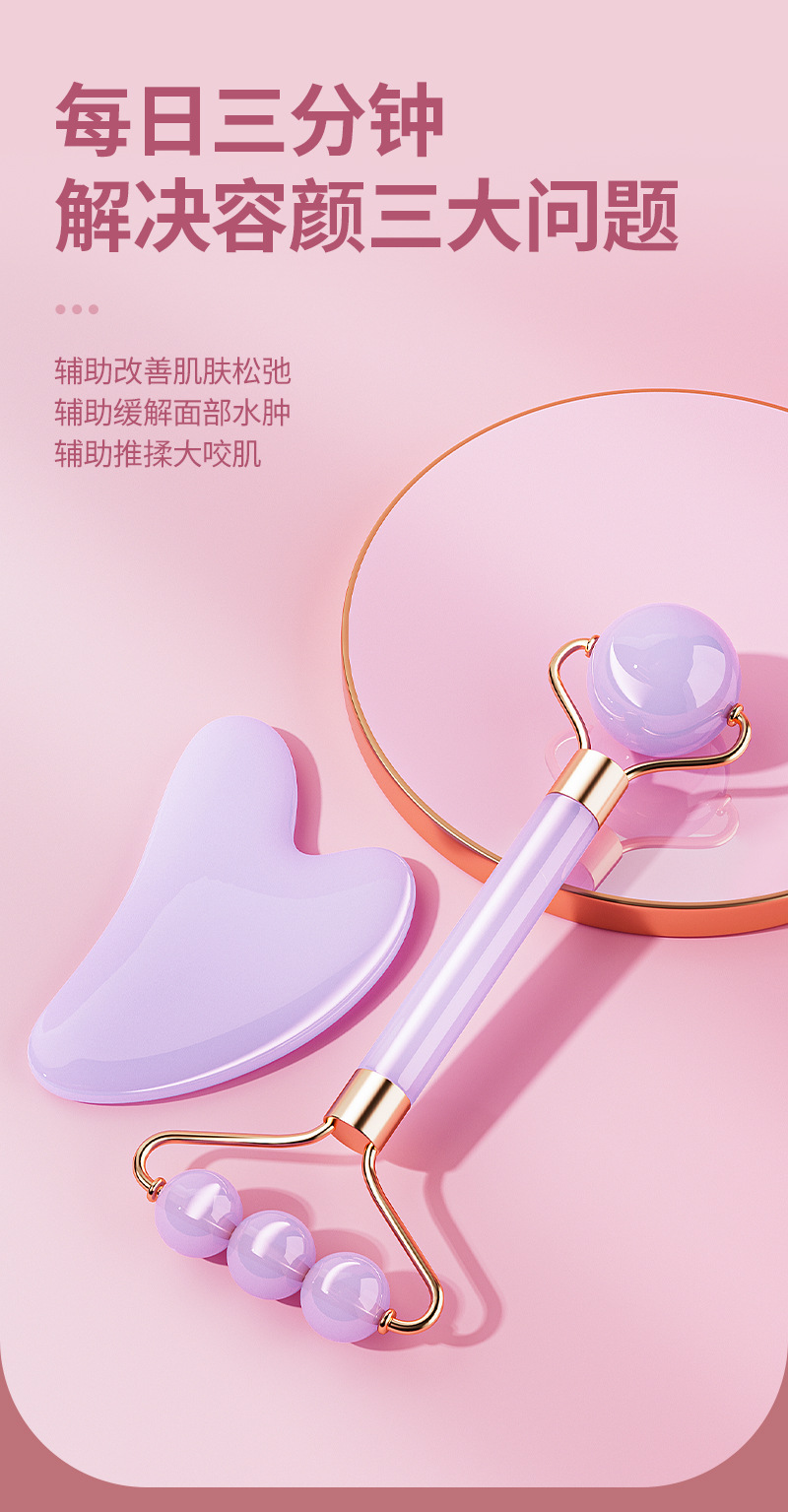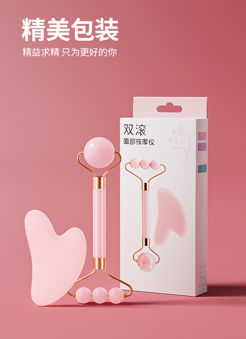 Nuevo rodillo de doble cabeza masaje facial no jade ojo facial levantamiento de masaje apretado conjunto de herramientas de belleza