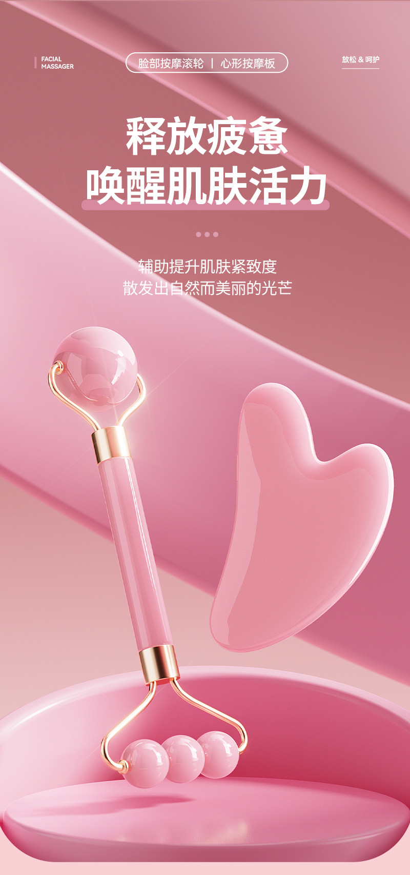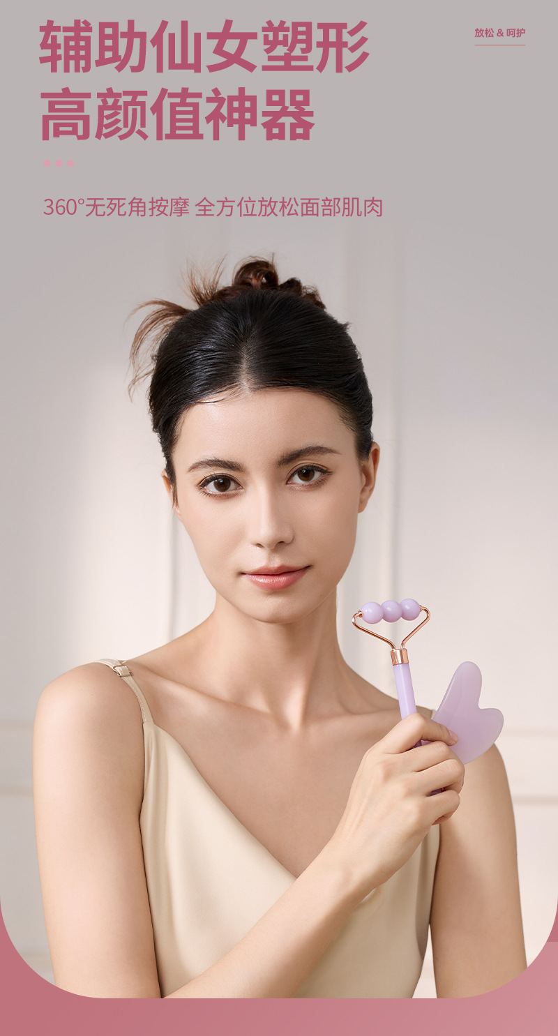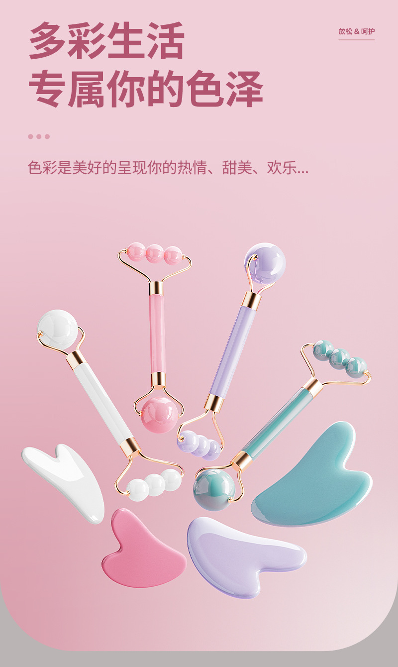 Nuevo rodillo de doble cabeza masaje facial no jade ojo facial levantamiento de masaje apretado conjunto de herramientas de belleza