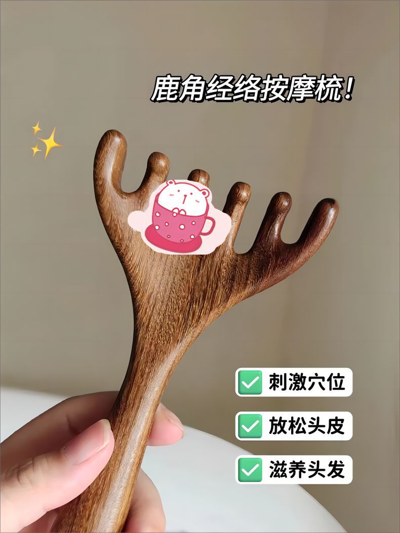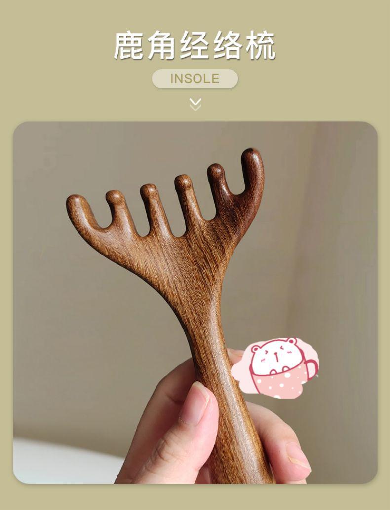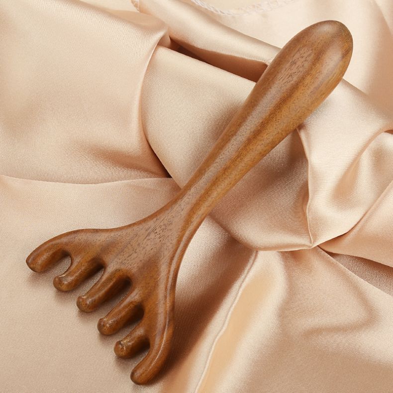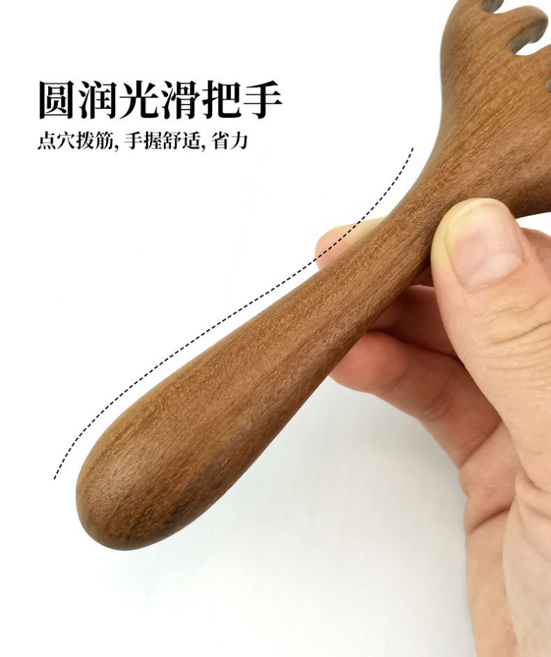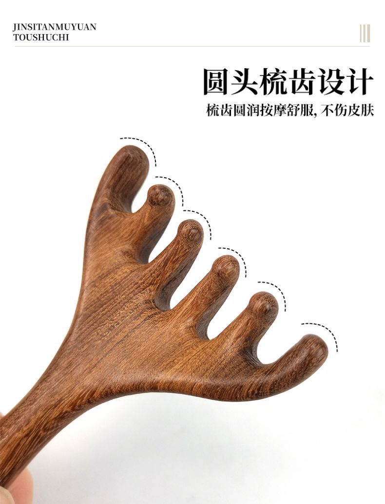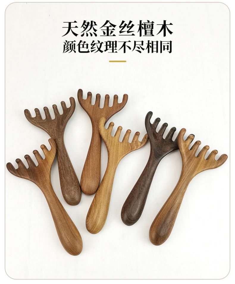 Peine para masaje de cabeza de sándalo, herramienta de terapia capilar, masaje del cuero cabelludo, punto de rascado de cabeza de cinco garras, peine meridiano de asta para rascar la cabeza