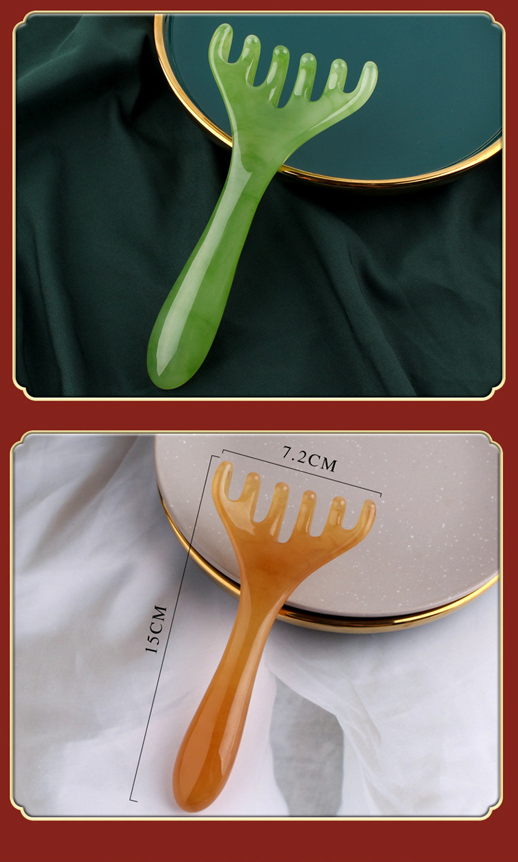 Pein de cuerno de ciervo masajeador de cabeza resina de garra de sándalo meridianos pein de seis dientes rascar cuero cabelludo músculo de pulsación pein de cabeza dispositivo terapéutico
