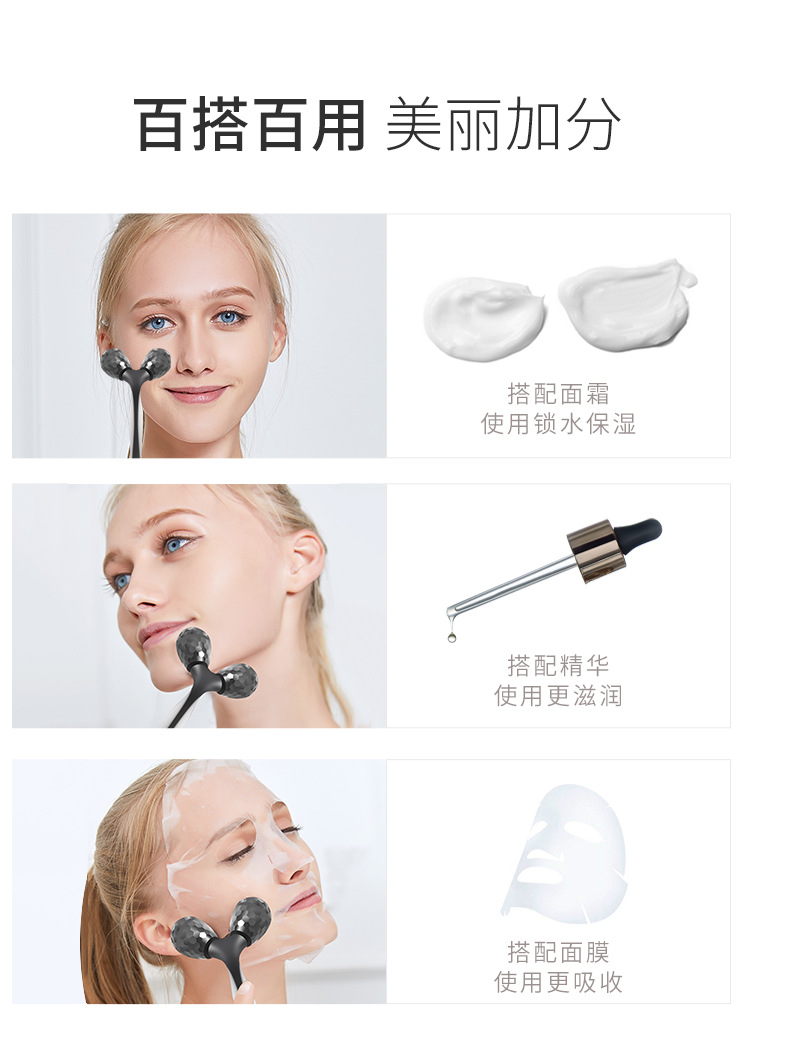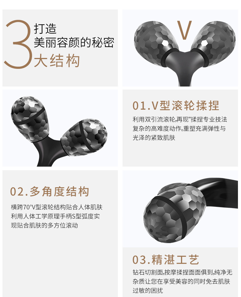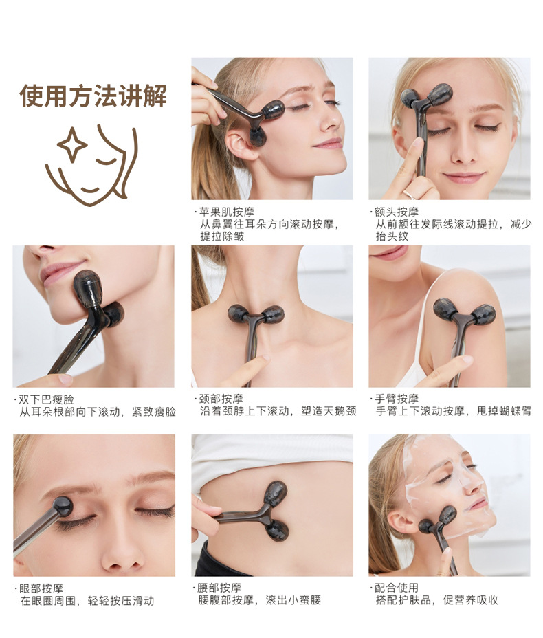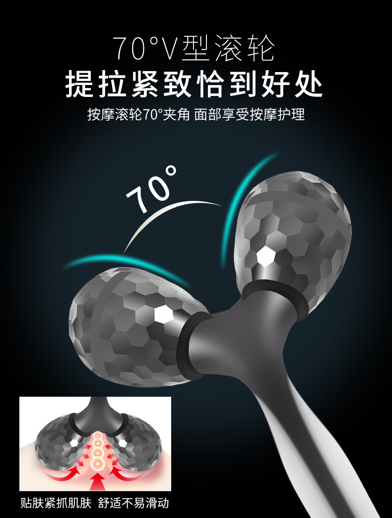 Roller facial dispositivo de belleza de doble cabeza de rodillo de elevación de V-facial compactación manual de extracción de tendones de ojos Herramientas de belleza facial