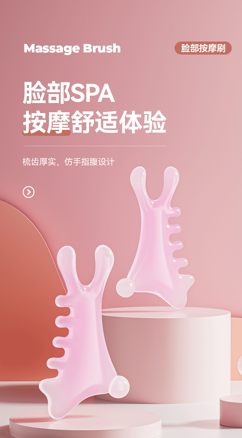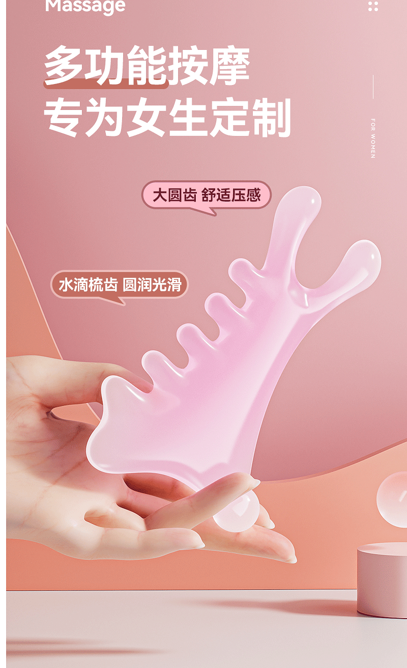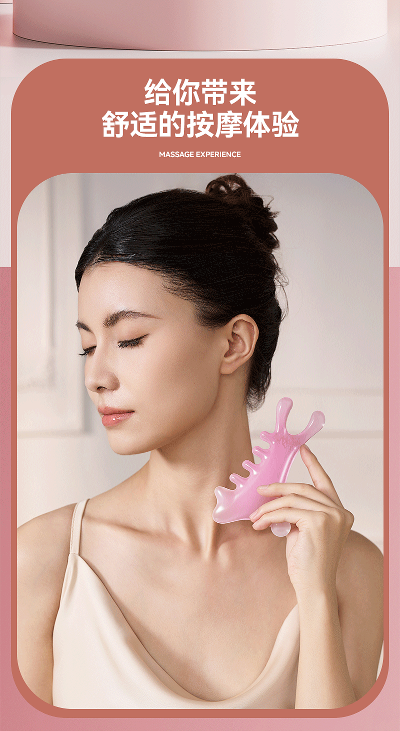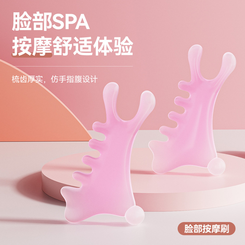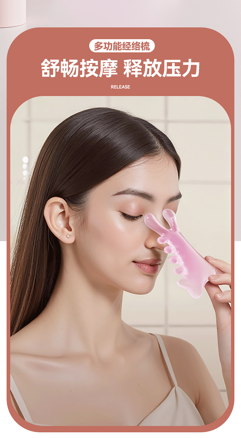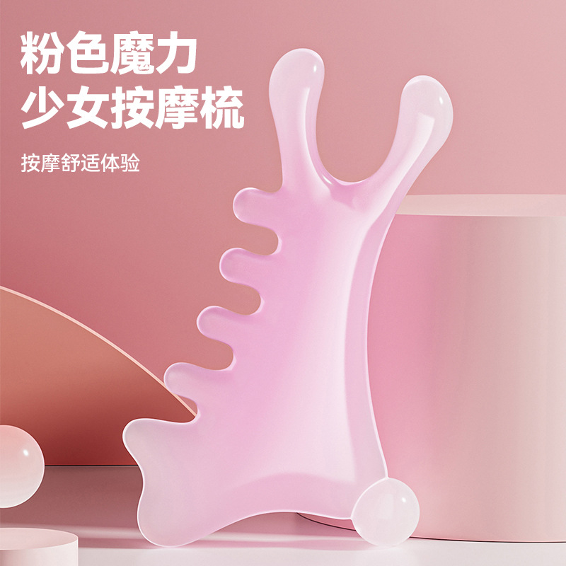 Peine de masaje de cuero cabelludo multifuncional cuatro en uno, terapia de cabeza facial, artefacto de masaje de meridianos de dragado, pequeño monstruo rosa, nariz recta
