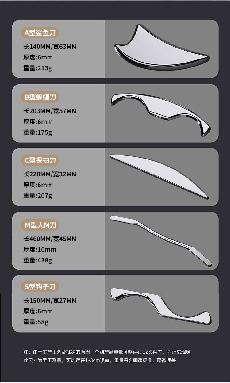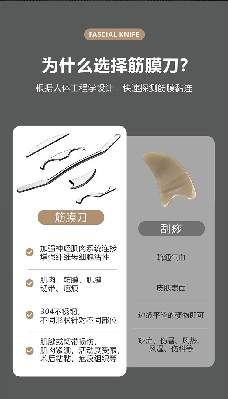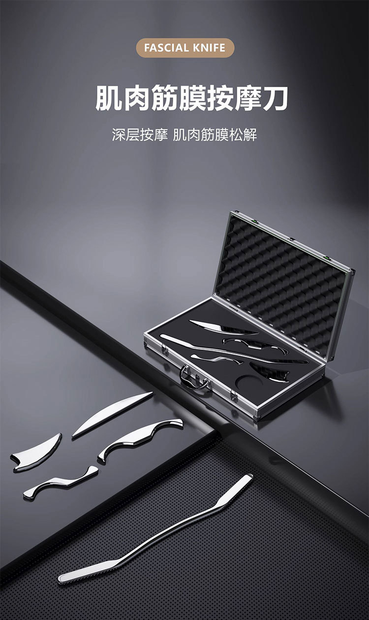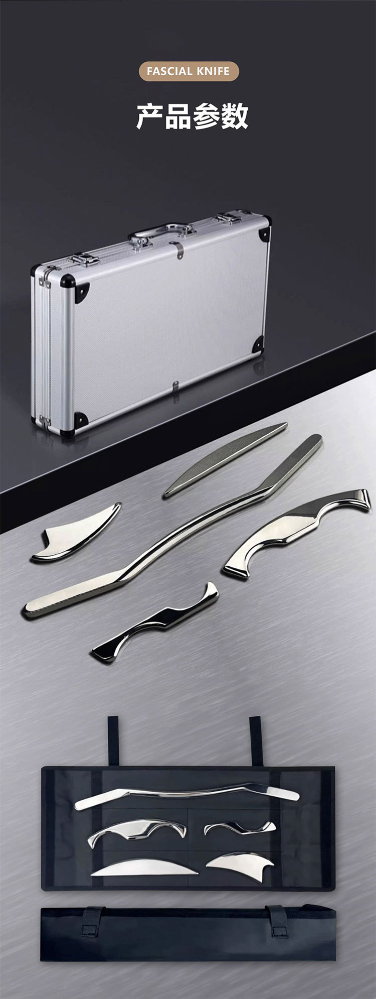 Conjunto de cinco piezas de cuchillo fascial cuchillo de máscara de cuello de acero inoxidable liberación miofascial relajación muscular raspado tendón raspado pierna palo masajeador