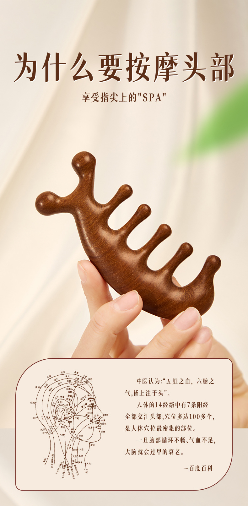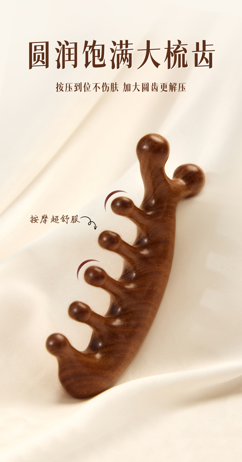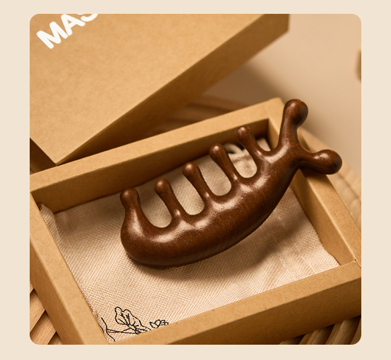 Pein de masaje de madera de sándalo, meridianos de cabeza dragado, dientes de oro de cinco dedos, nariz endurecida delfines, cuidado del cabello, dispositivo terapéutico