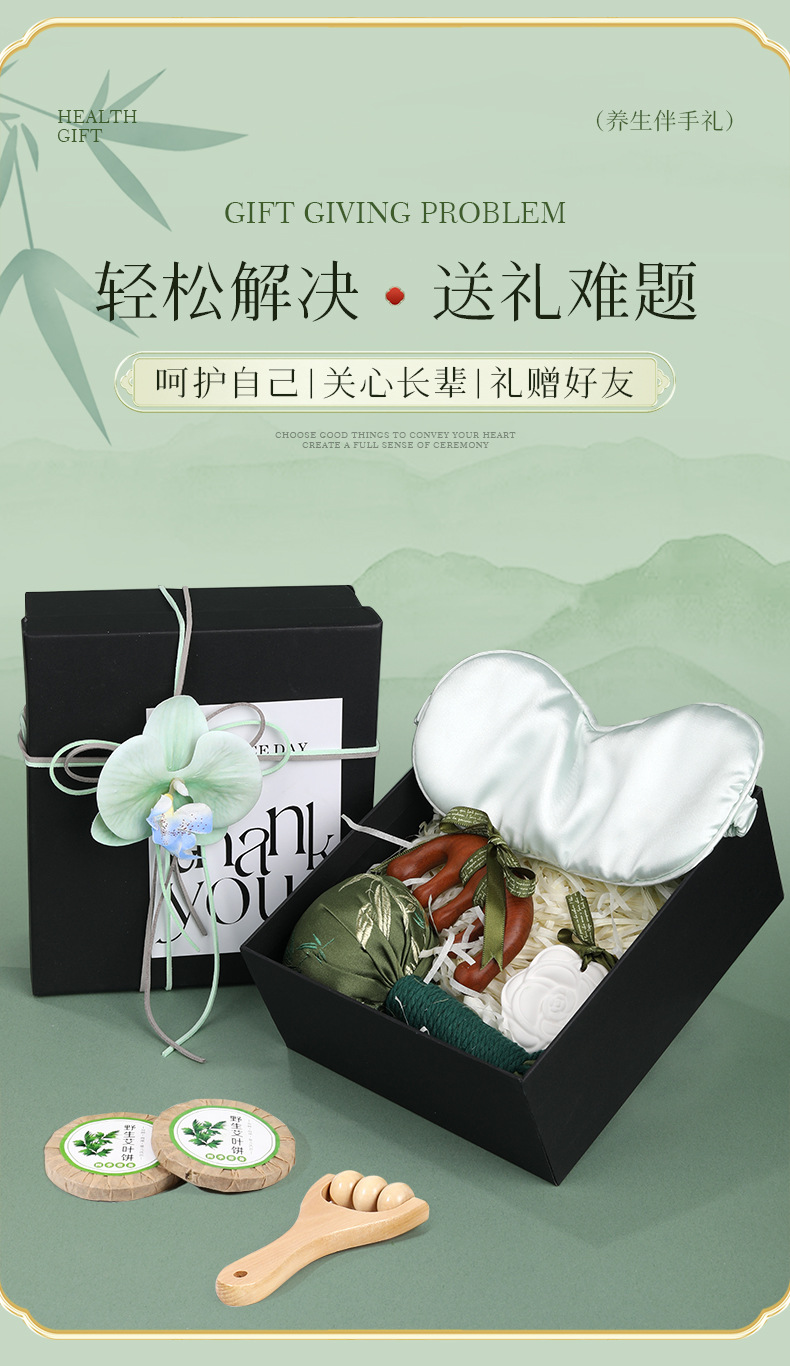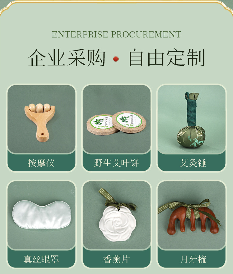 Caja de regalo de salud meridianos saludables, martillo de moxium para la espalda, pastel de hojas de moxium para la cabeza, pein de cinco patas, conjunto de masaje de salud para ancianos