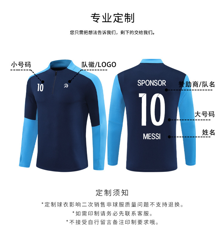 Otoño y invierno media cremallera chaqueta de entrenamiento de fútbol conjunto de ropa de juego de manga larga de punto personalizada ropa deportiva