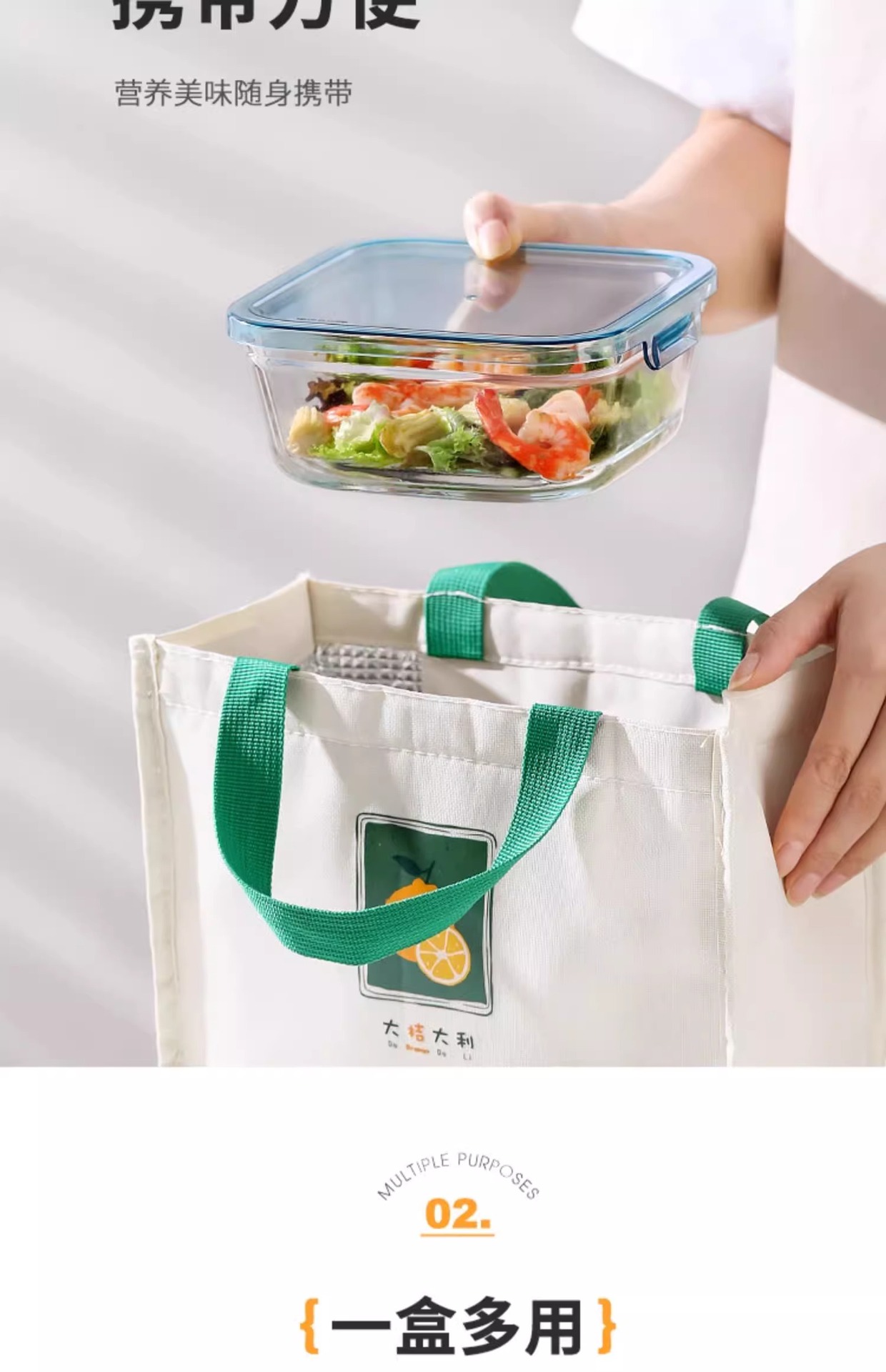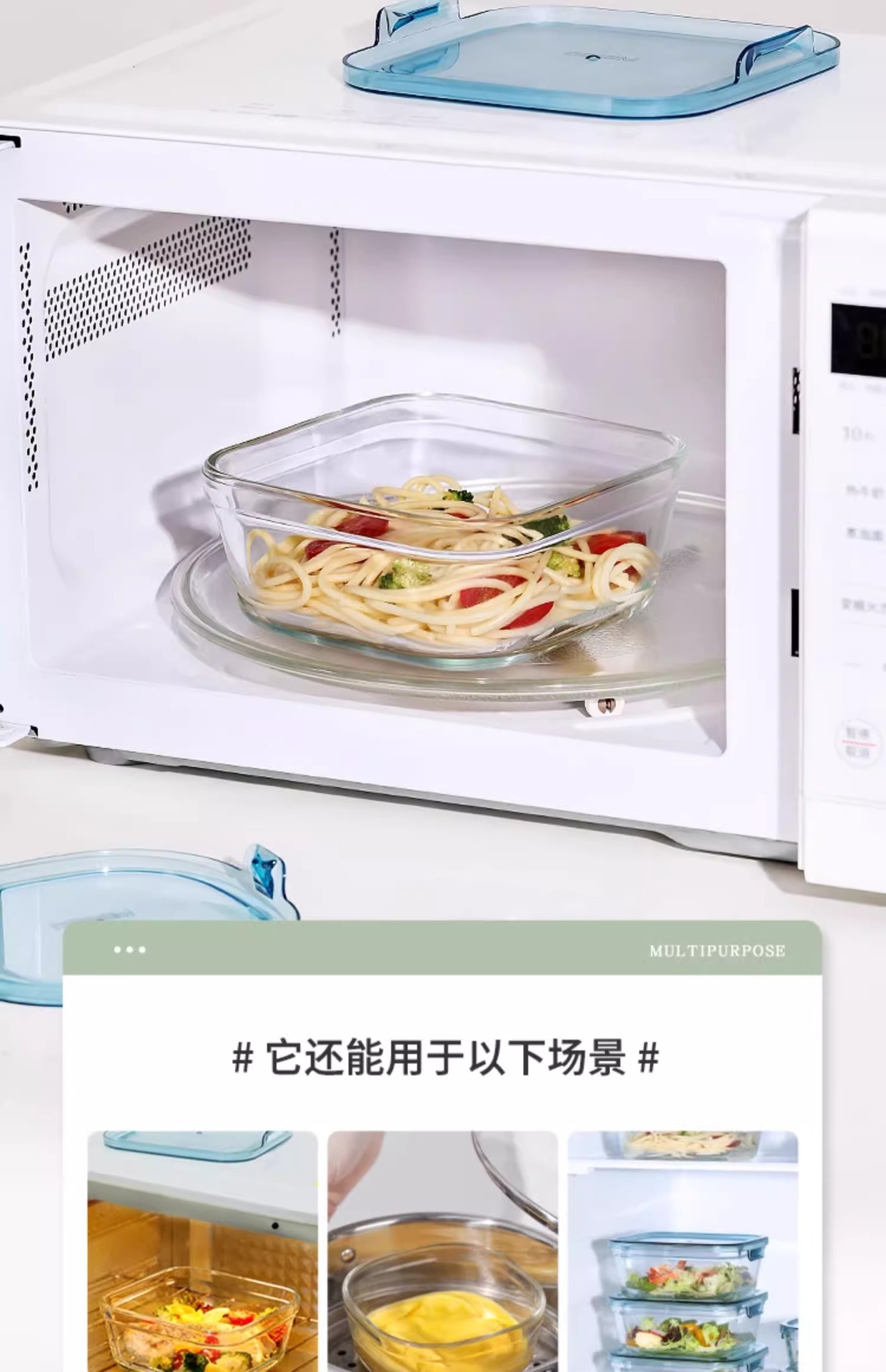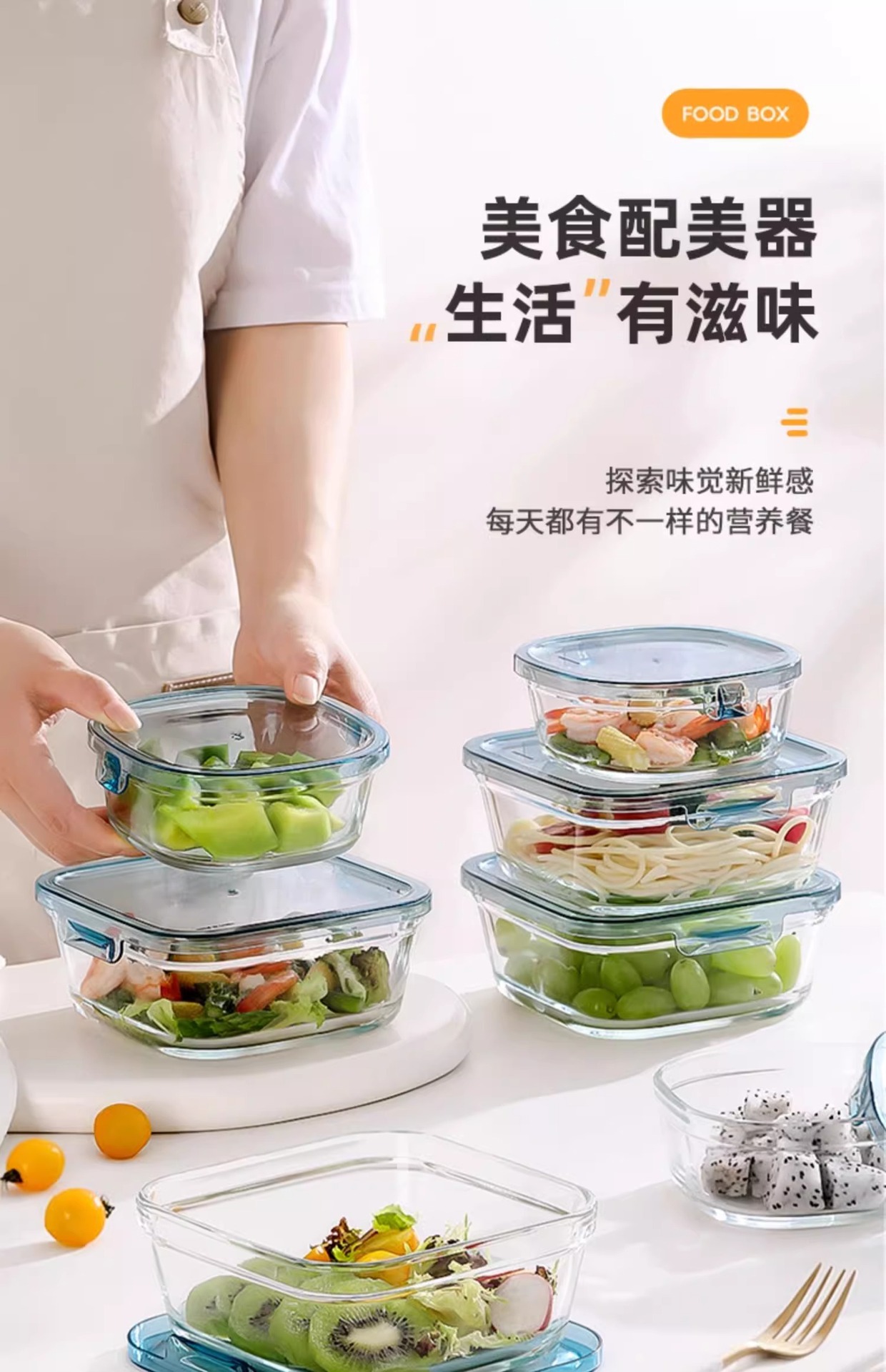 Caja de almuerzo de vidrio especial calentada por horno de microondas, caja de frutas, ensalada, caja de conservación de verduras de alto silicio