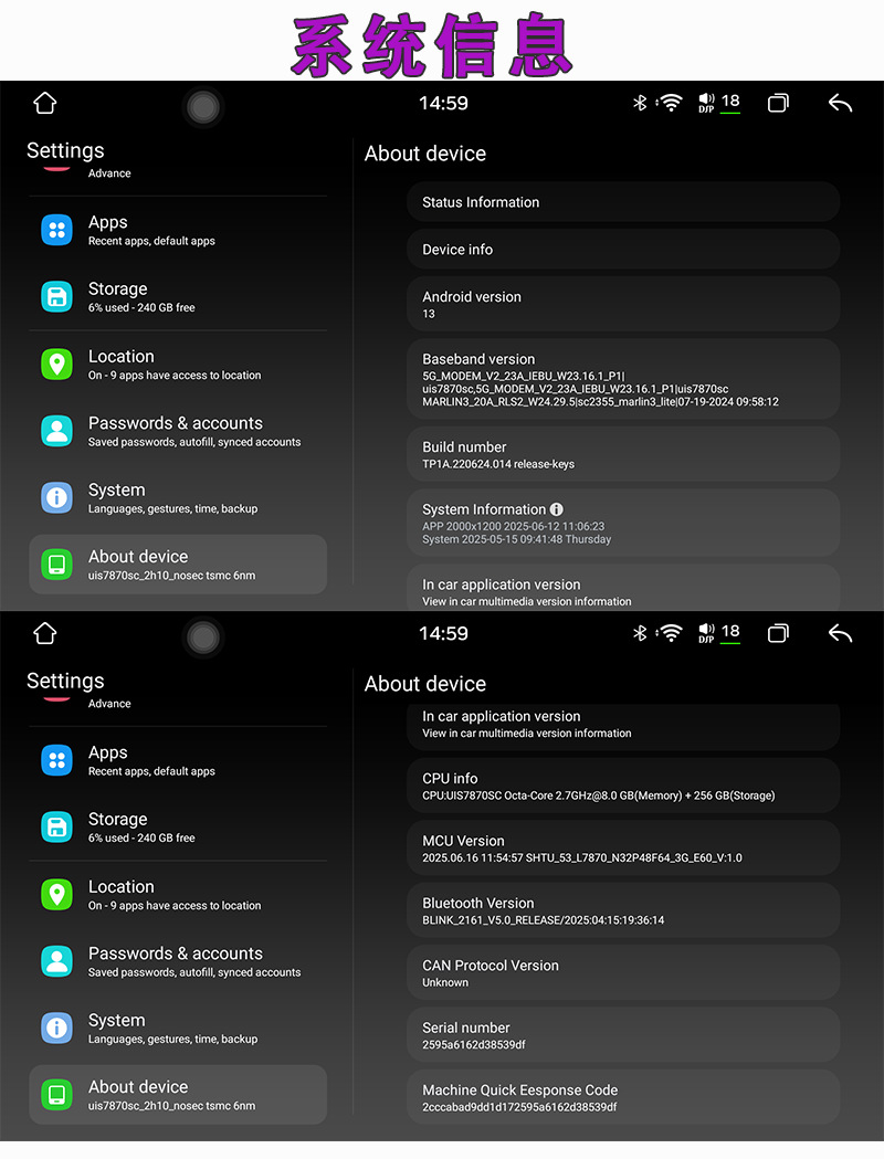 | Especificación | 9 pulgadas 7870S 4 64/Carplay 4G,9 pulgadas 7870S 6+128/Carplay+4G,9 pulgadas 7870S 8+256/Carplay+4G,9 pulgadas 7870S 12+256/Carplay+4G,10 pulgadas 7870S 4 64/Carplay 4G,10 pulgadas 7870S 6+128/Carplay+4G,10 pulgadas 7870S 8+256/Carplay+4G,10 pulgadas 7870S 12+256/Carplay+4G,Máquina todo en uno 7870S 4+64 360 de 9 pulgadas/Carplay+4G,Máquina todo en uno 7870S 6+128 360 de 9 pulgadas/Carplay+4G,Máquina todo en uno 7870S 8+256 360 de 9 pulgadas/Carplay+4G,Máquina todo en uno 7870S 12+256 360 de 9 pulgadas/Carplay+4G,Máquina todo en uno 7870S 4+64 360 de 10 pulgadas/Carplay+4G,Máquina todo en uno 7870S 6+128 360 de 10 pulgadas/Carplay+4G,Máquina todo en uno 7870S 8+256 360 de 10 pulgadas/Carplay+4G,Máquina todo en uno 7870S 12+256 360 de 10 pulgadas/Carplay+4G |