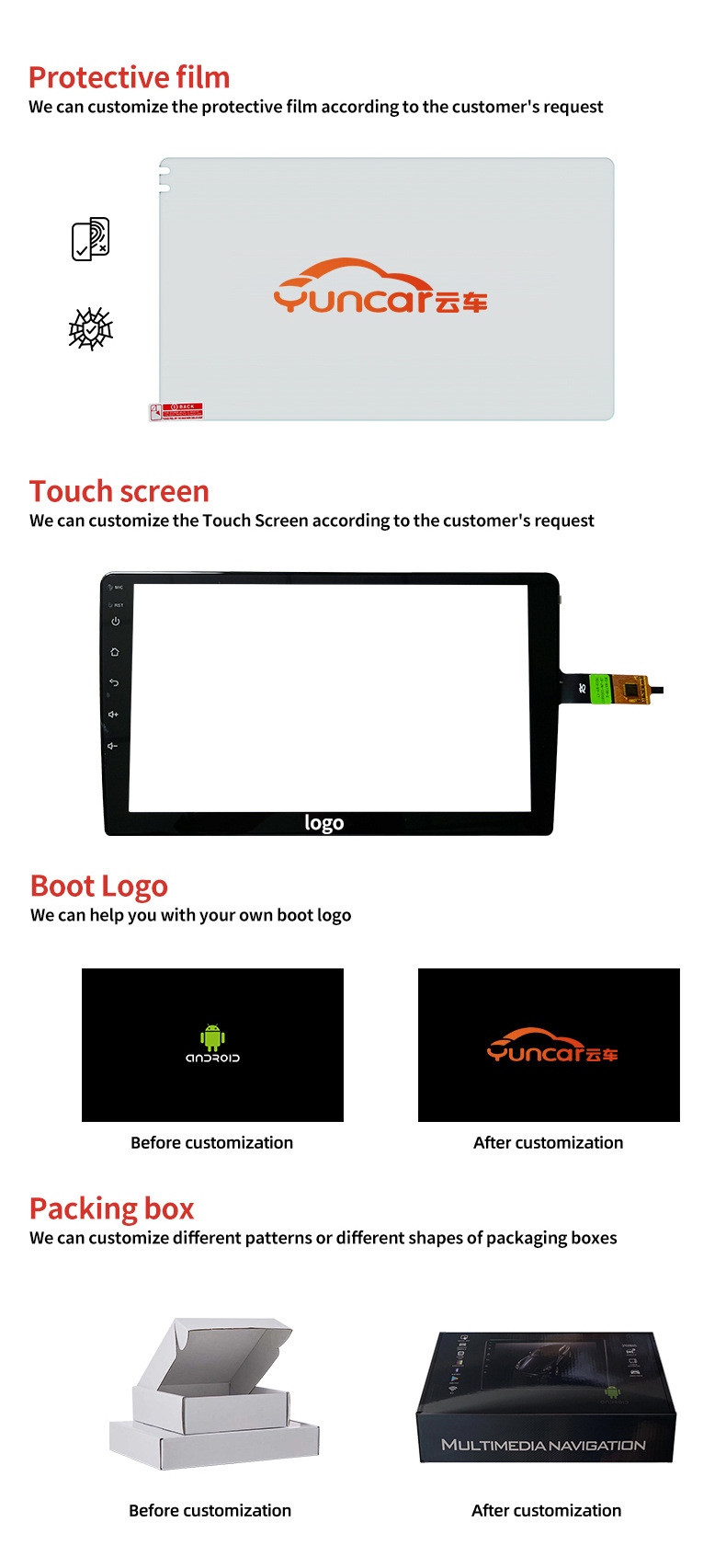 Fangyitong 7862 QLED 8GB 128GB caja de coche personalizada
