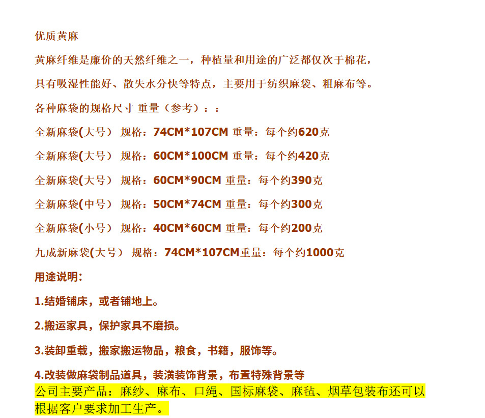 Noventa por ciento de sacos nuevos (grandes) 60 cm * 100 cm; Sacos amarillos; 100% Yute