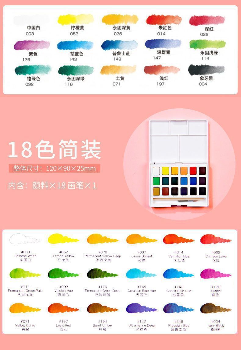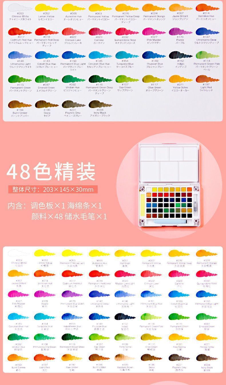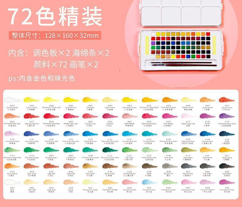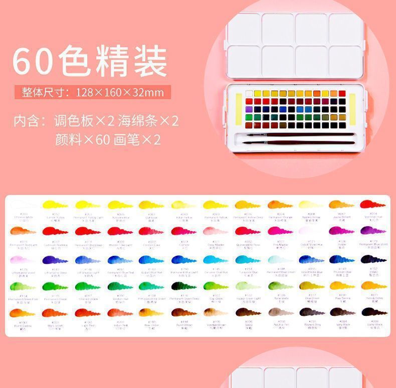 Color de acuarela sólida japonesa 24 colores 36 colores 48 colores 60 colores 72 colores acuarela especial para estudiantes de arte conjunto completo