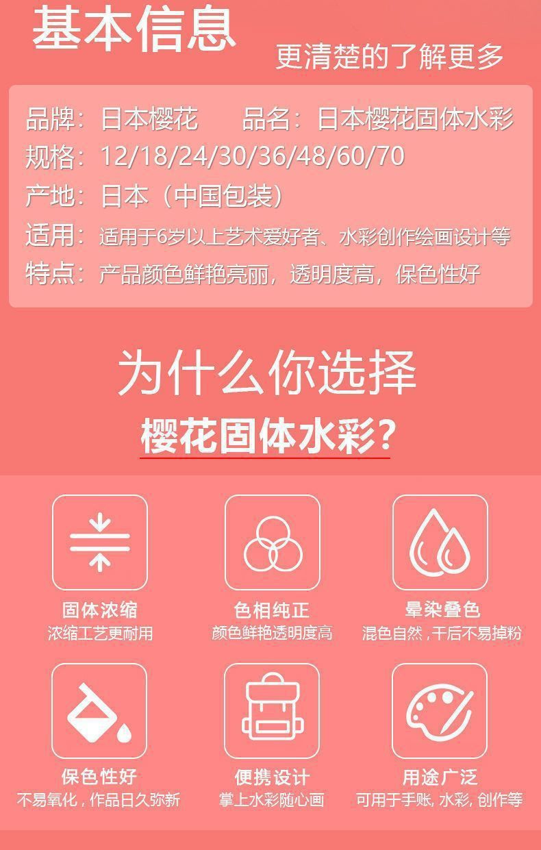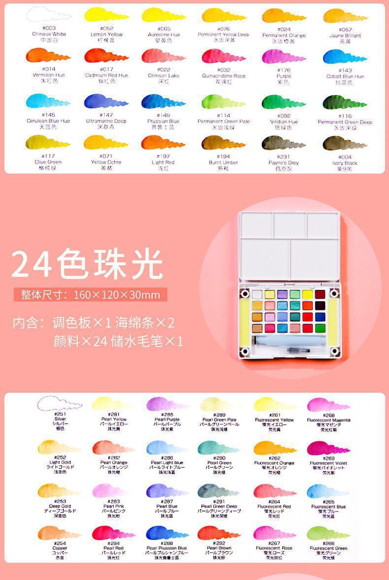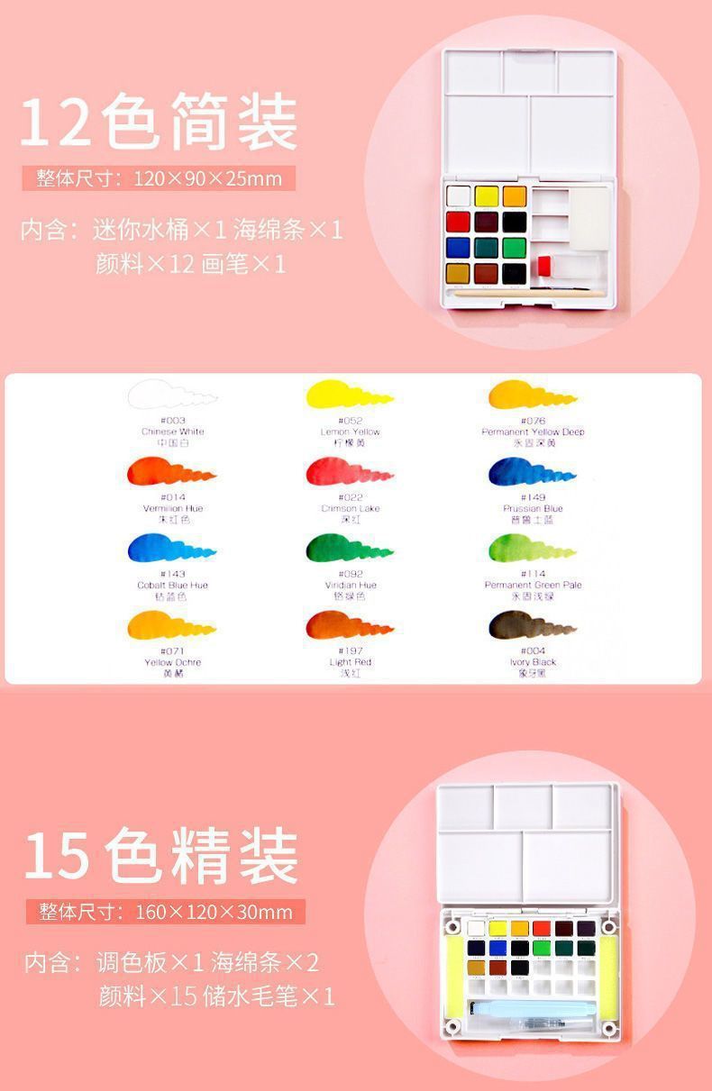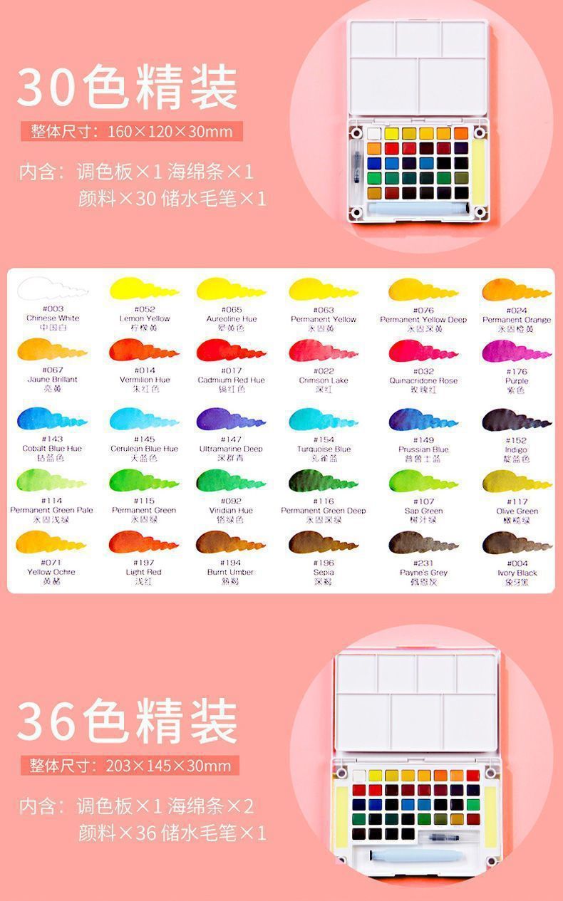 Color de acuarela sólida japonesa 24 colores 36 colores 48 colores 60 colores 72 colores acuarela especial para estudiantes de arte conjunto completo