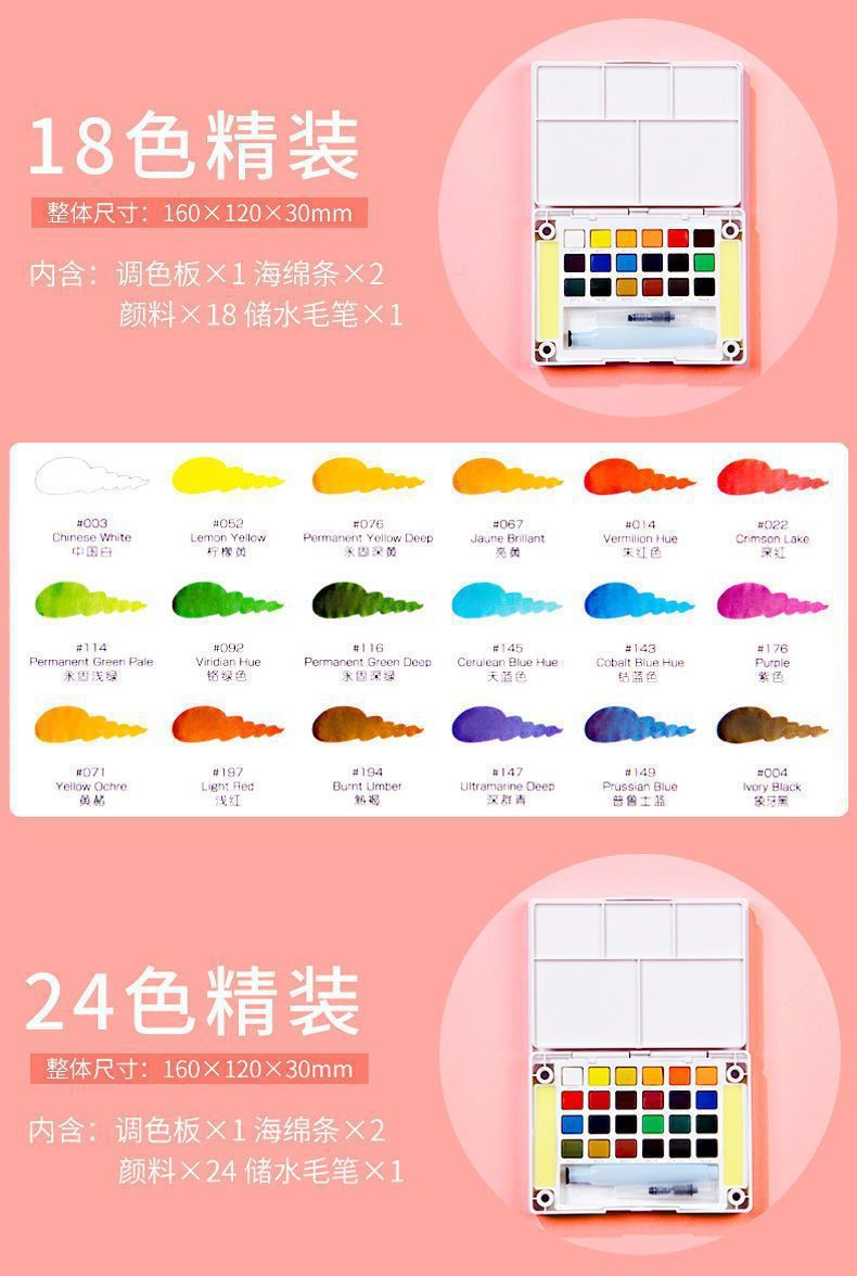 | Color | Tapa dura de 12 colores, tapa dura de 18 colores, tapa dura de 15 colores, tapa dura de 18 colores, tapa dura de 24 colores - púrpura de lavanda, tapa dura de 24 colores - Rosa de cerezo, tapa dura de 24 colores - azul de ajenjo claro, tapa dura de 24 colores - Verde menta, tapa dura de cuentas de 24 colores, tapa dura de 30 colores, tapa dura de 36 colores, tapa dura de 48 colores, tapa dura de 60 colores, tapa dura de 72 colores |