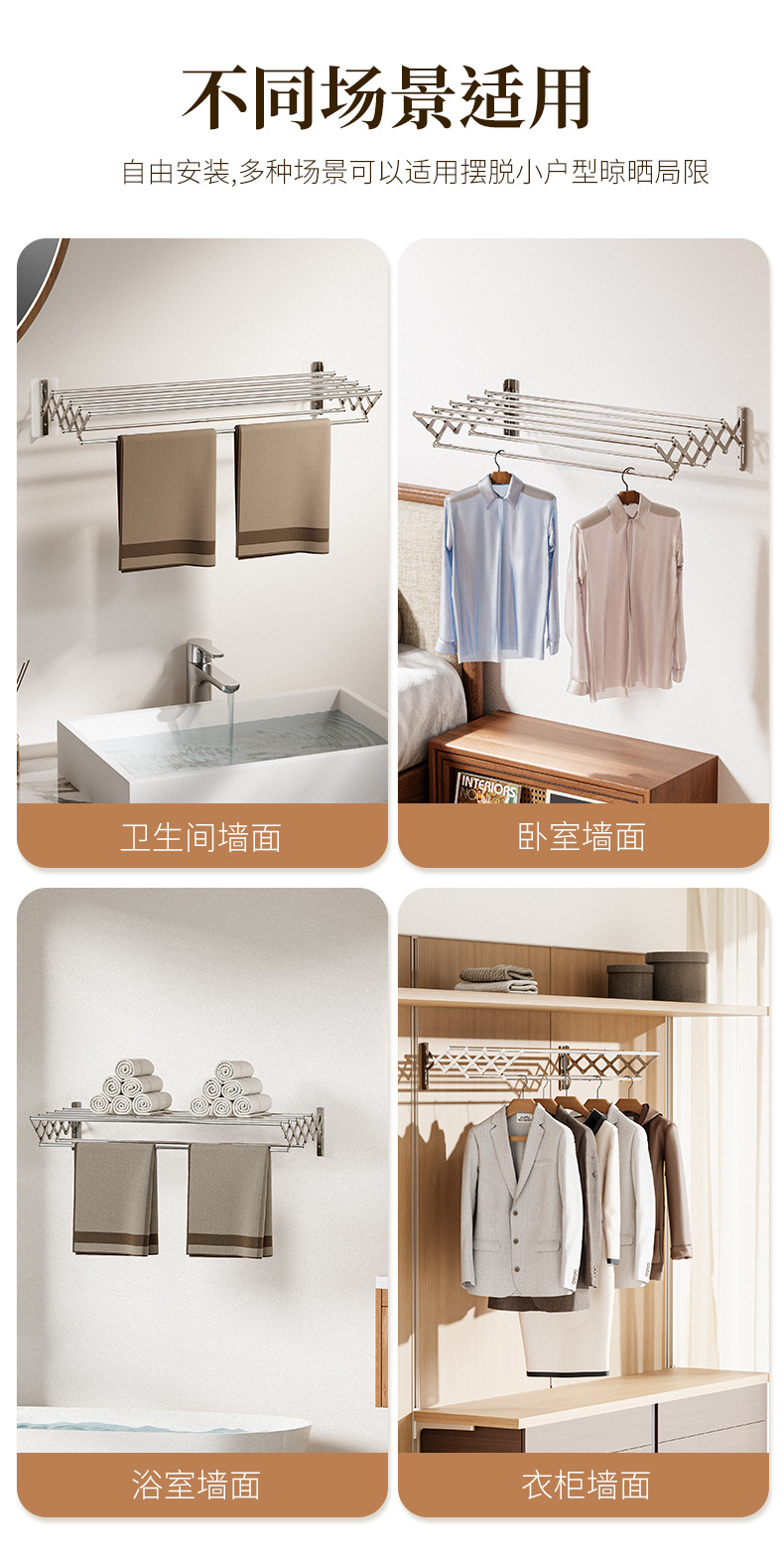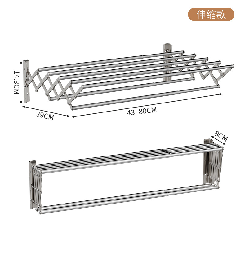 Acero inoxidable pared percha de ropa percha de ropa retráctil plegable percha de ropa percha de baño estante de almacenamiento balcón tipo barra de secado de ropa tipo push-pull percha de zapatos