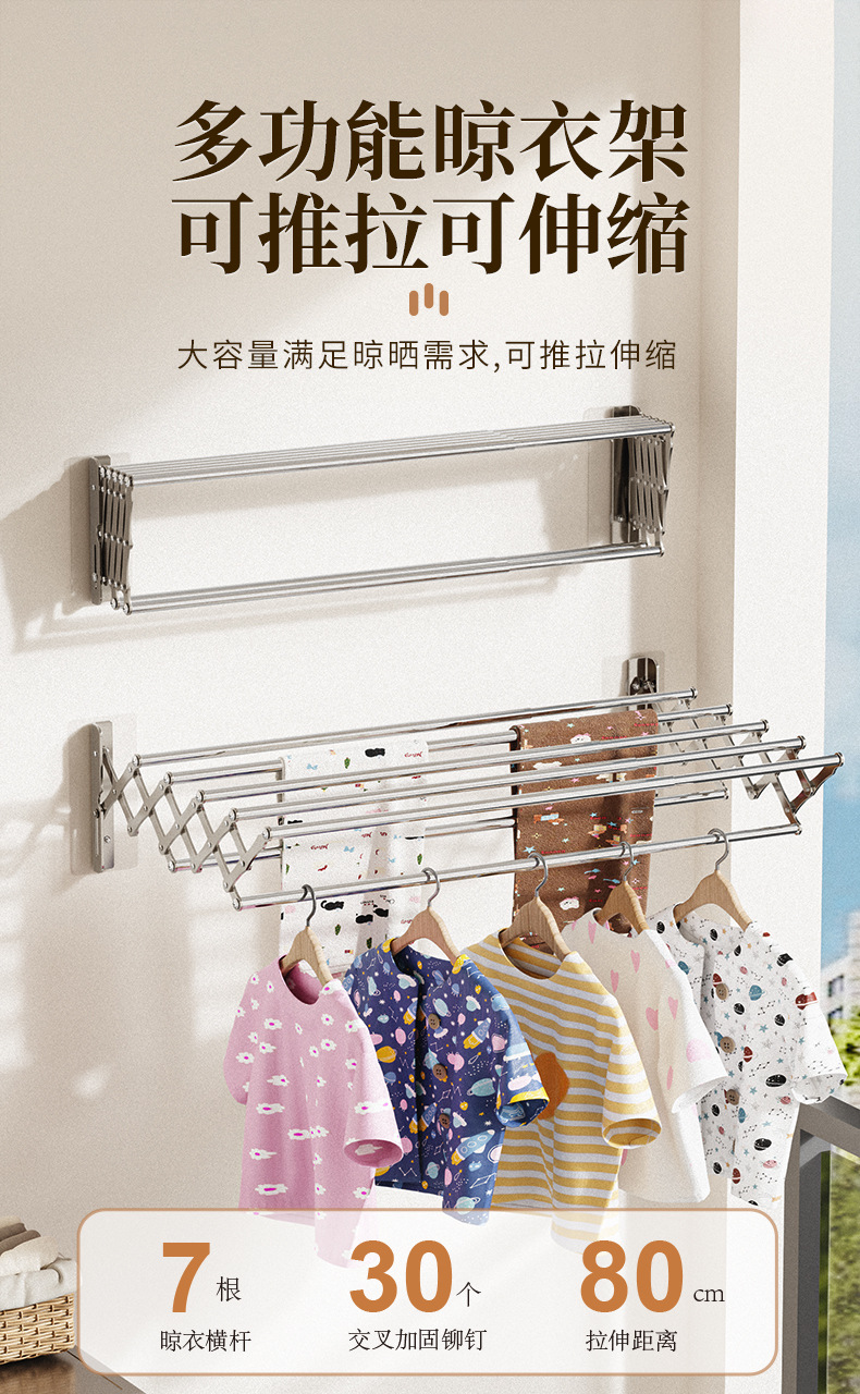 Acero inoxidable pared percha de ropa balcón telescópico barra de ropa percha de ropa doméstica plegable tipo empuje percha de secado