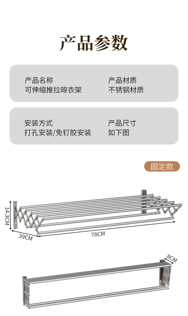 | Color | Colgante de pared de balcón de acero inoxidable (fijo), colgante de pared de balcón de acero inoxidable (telescópico) |