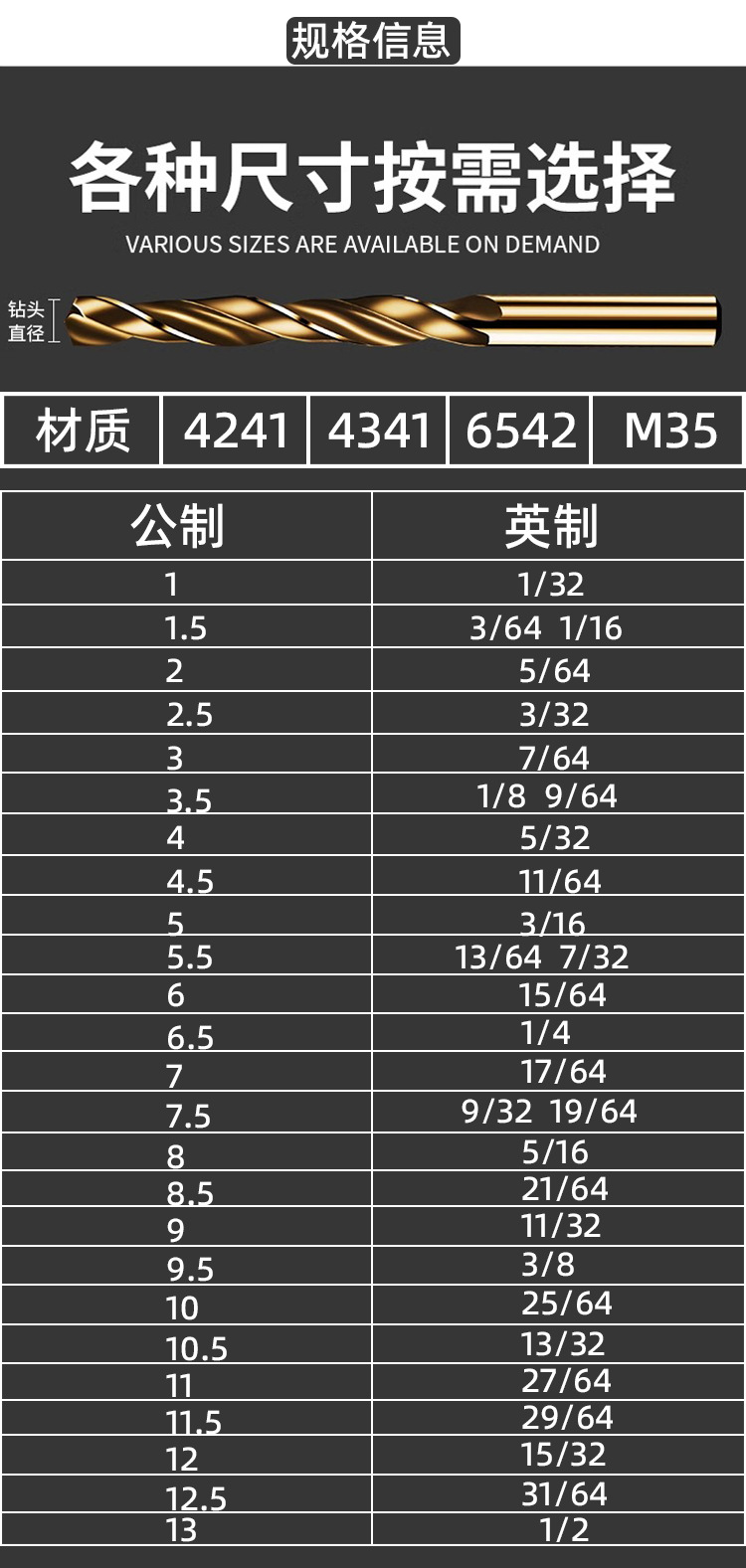 | Especificaciones y modelos | 10 taladros de torsión horneados en caja, laminados en taladros de torsión, conjuntos de taladros de 13 psc, taladros a granel consulte al servicio al cliente en detalle |