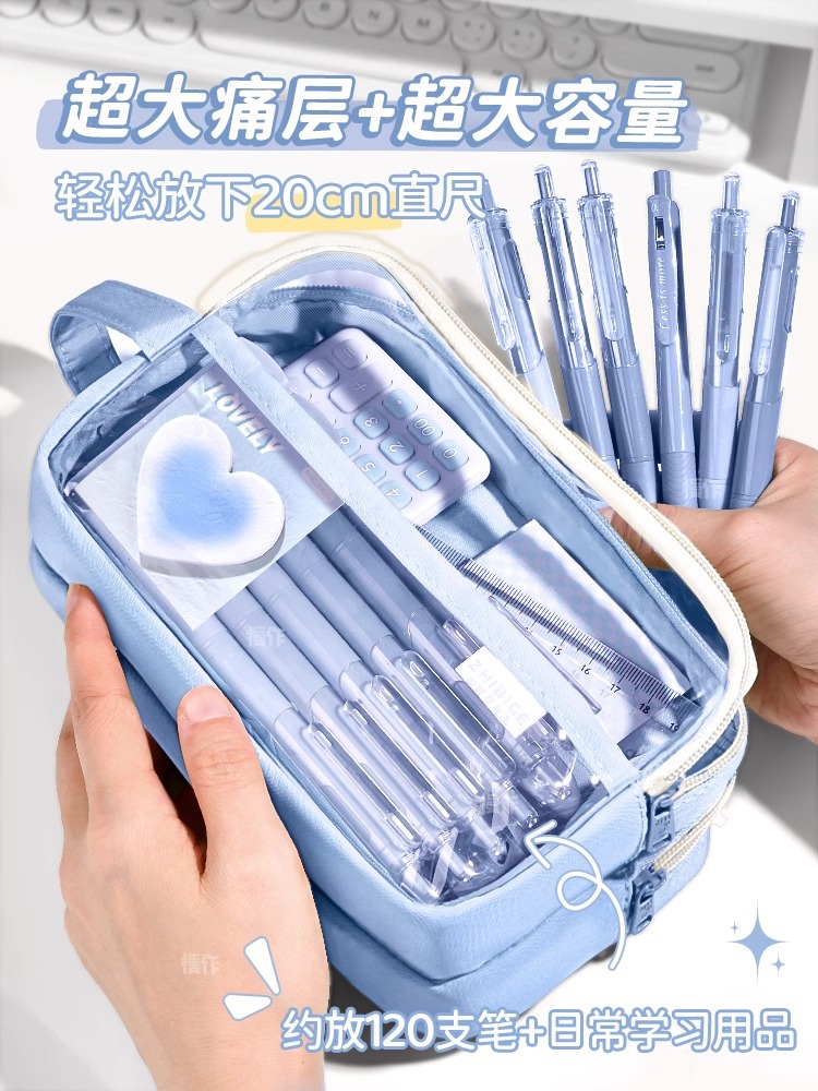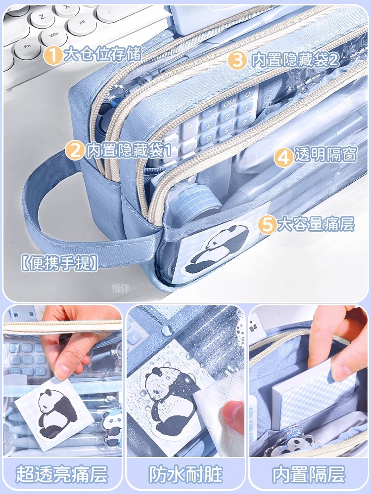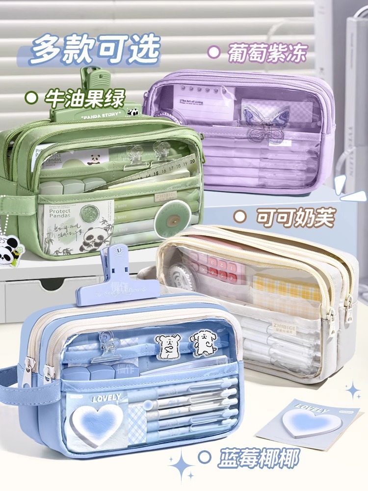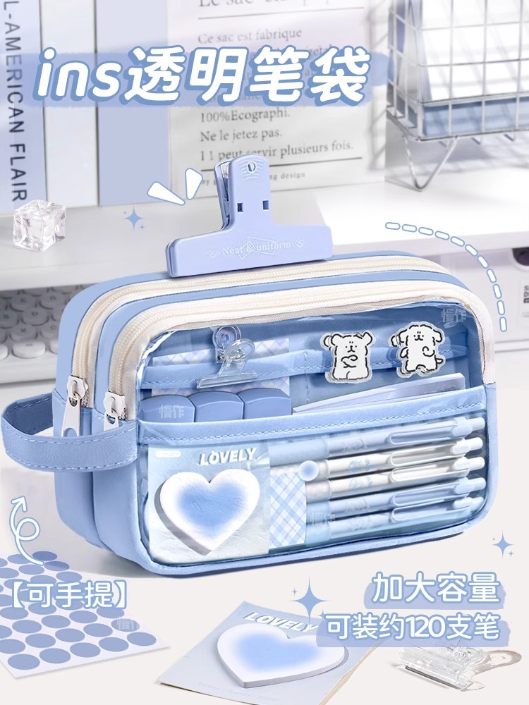 Estuche de lápices de gran capacidad para niños y niñas, estudiantes de secundaria y estudiantes de primaria, superpopular, bolsa de papelería transparente, bolsa de lápices estilo ins