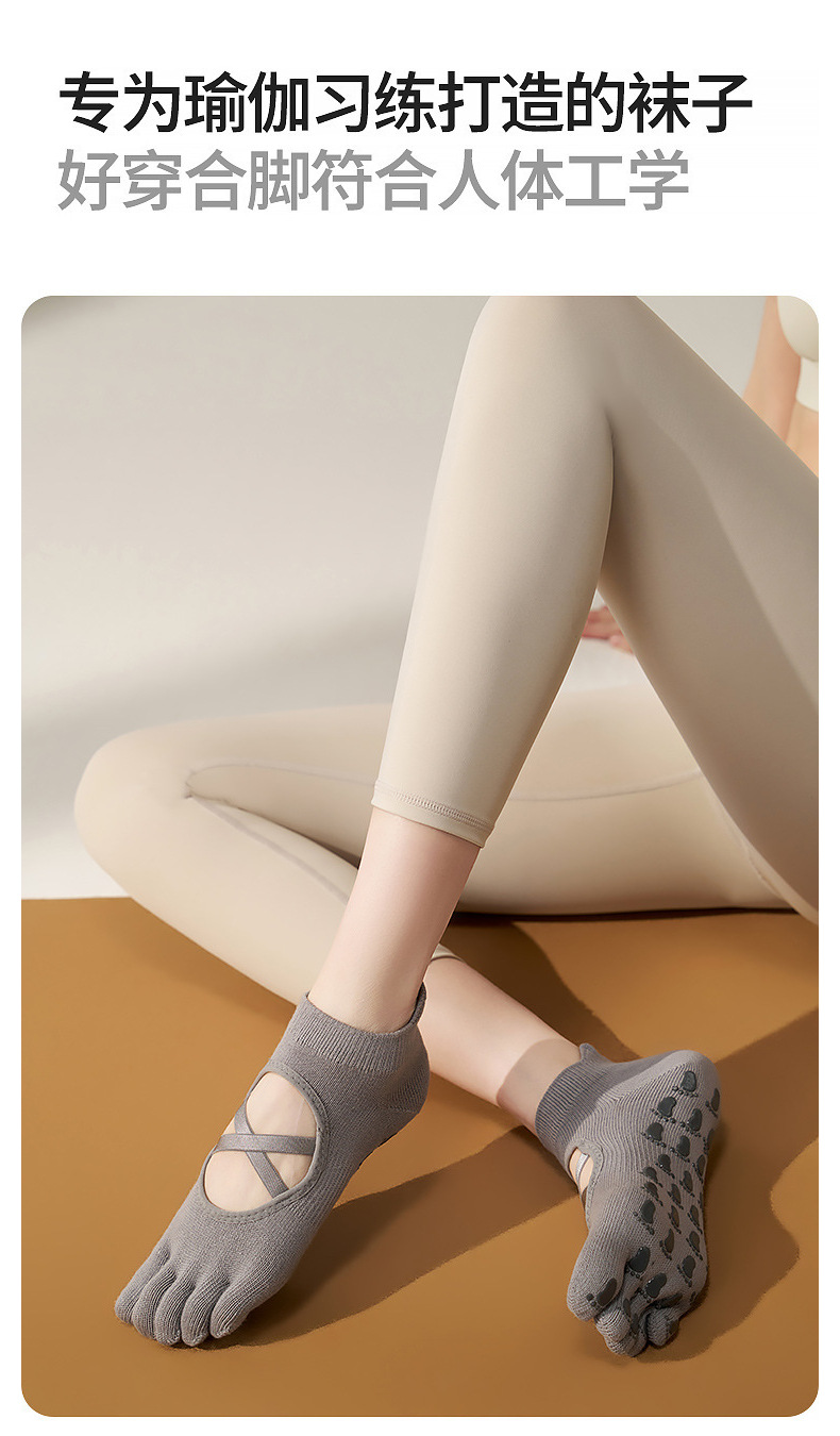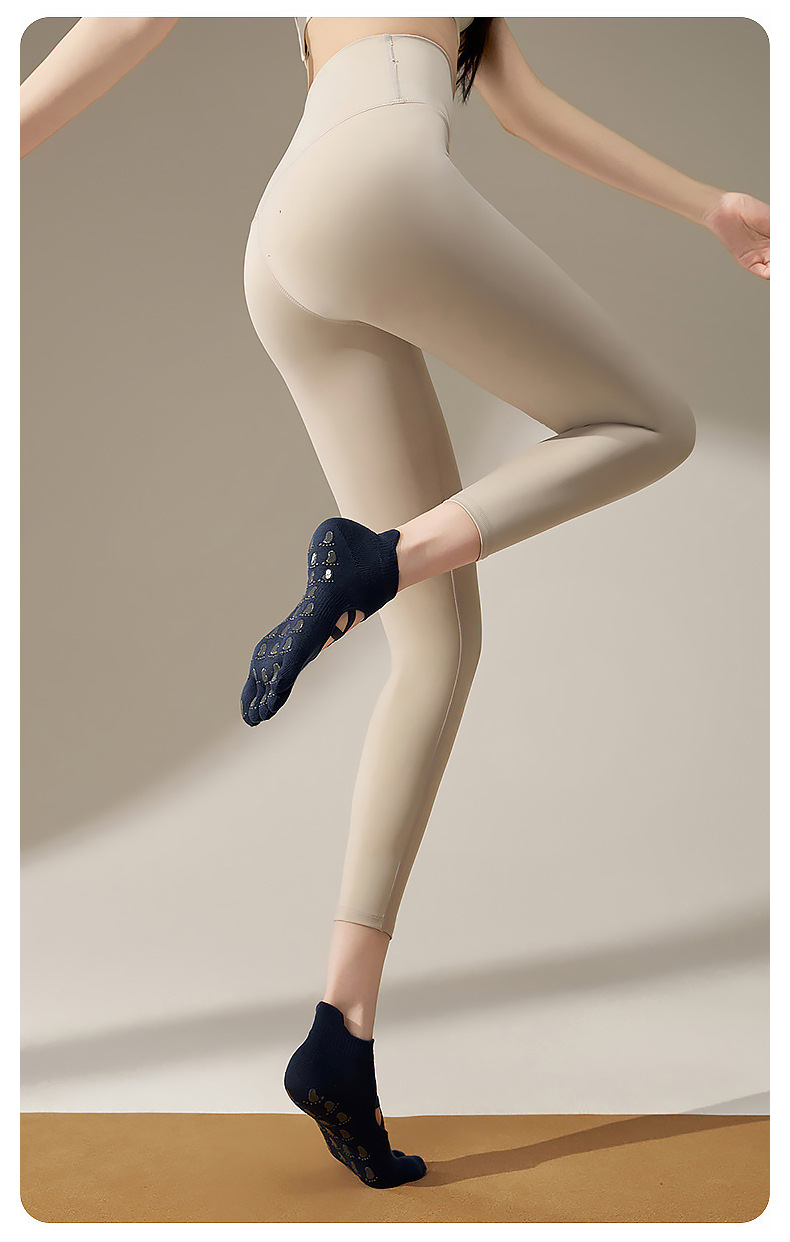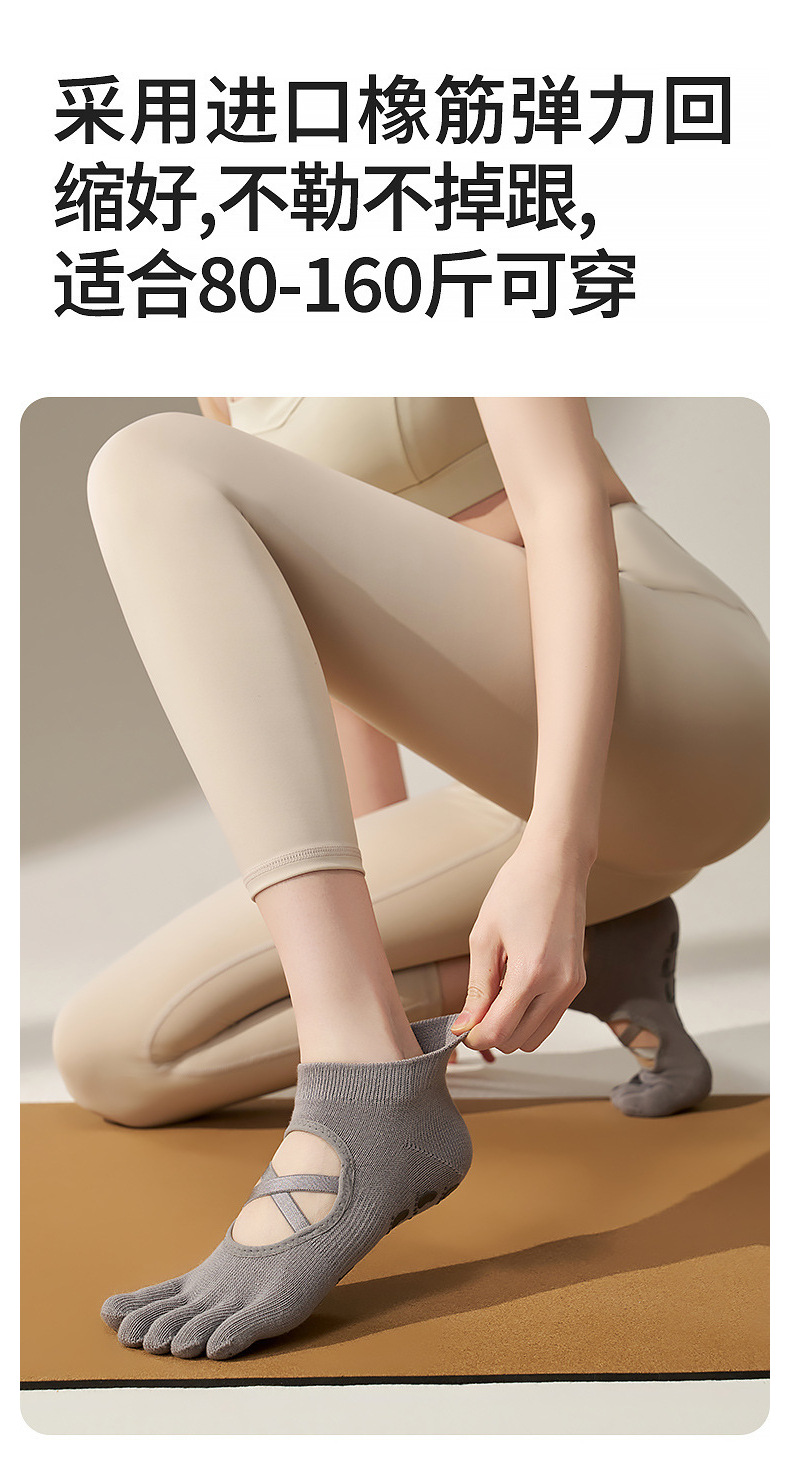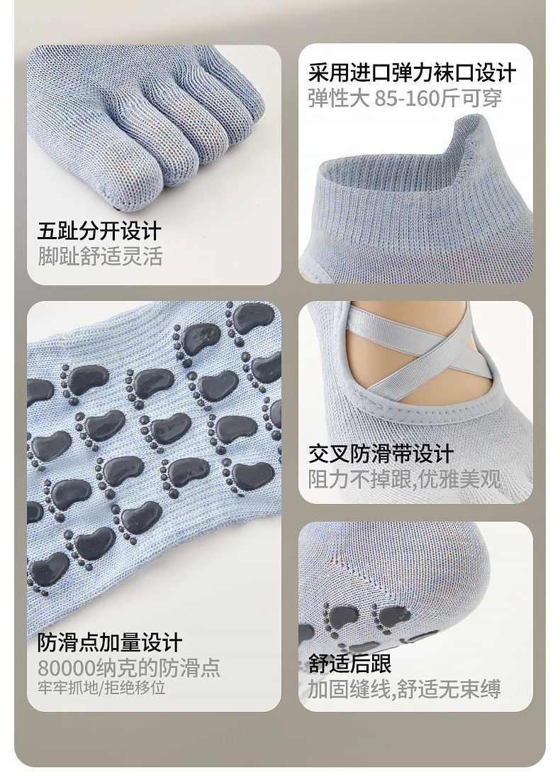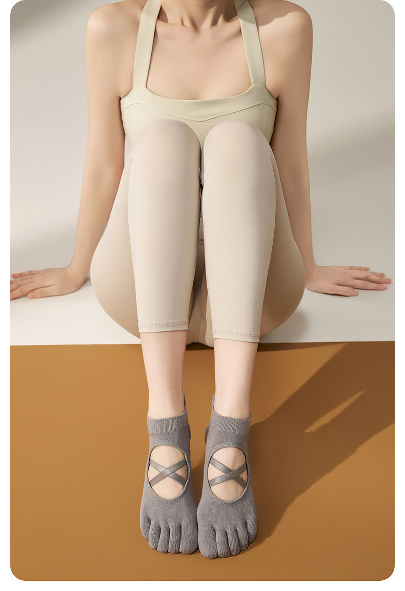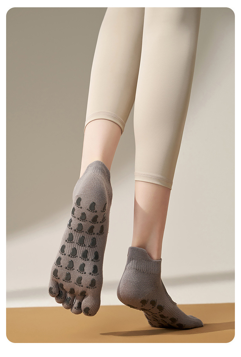 Calcetines especiales Yoga Pilates Calcetines antideslizantes de algodón transpirables Calcetines de cinco dedos de yoga Calcetines de dedos de fitness de tubo corto para mujer