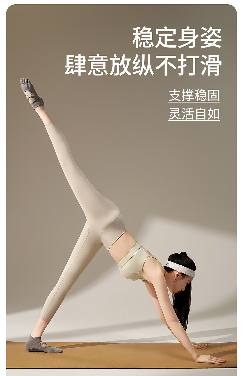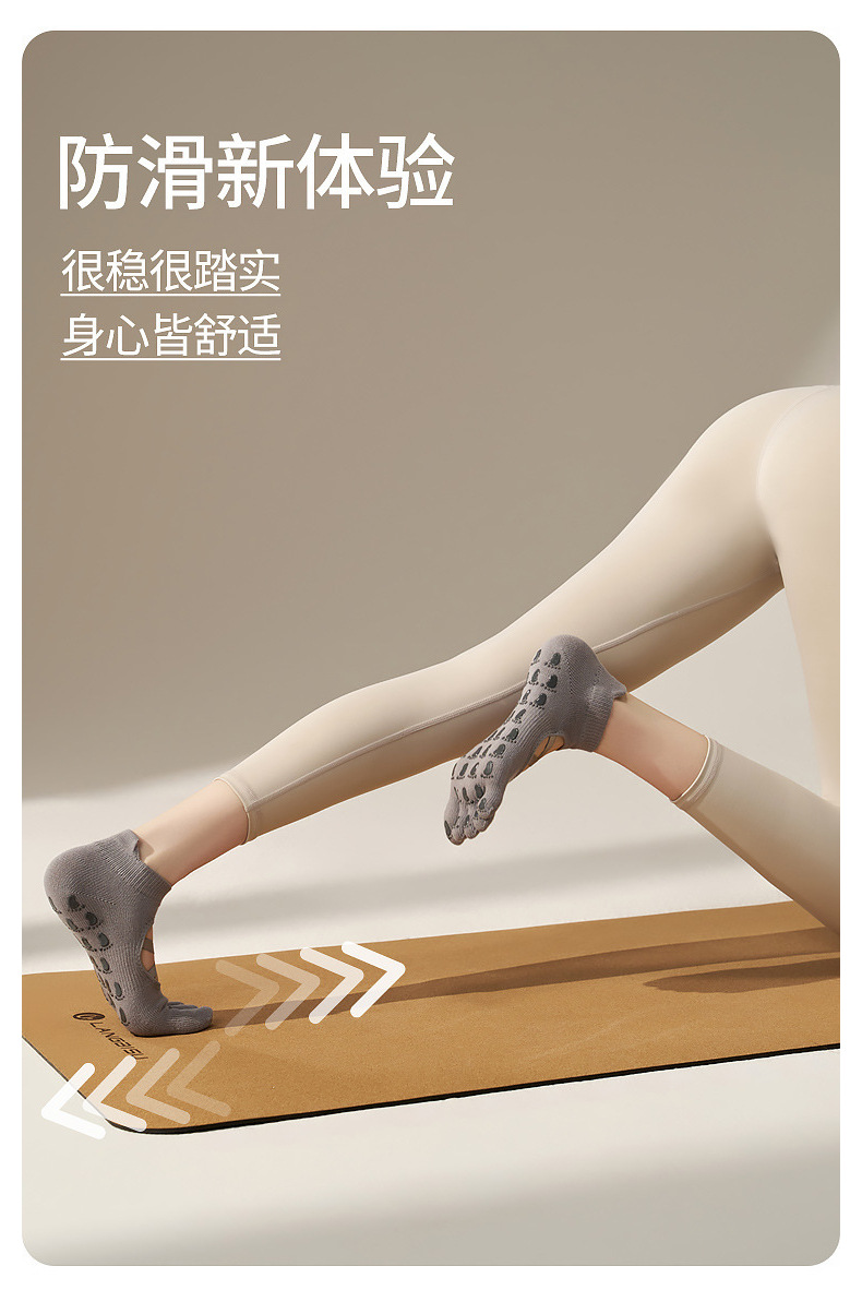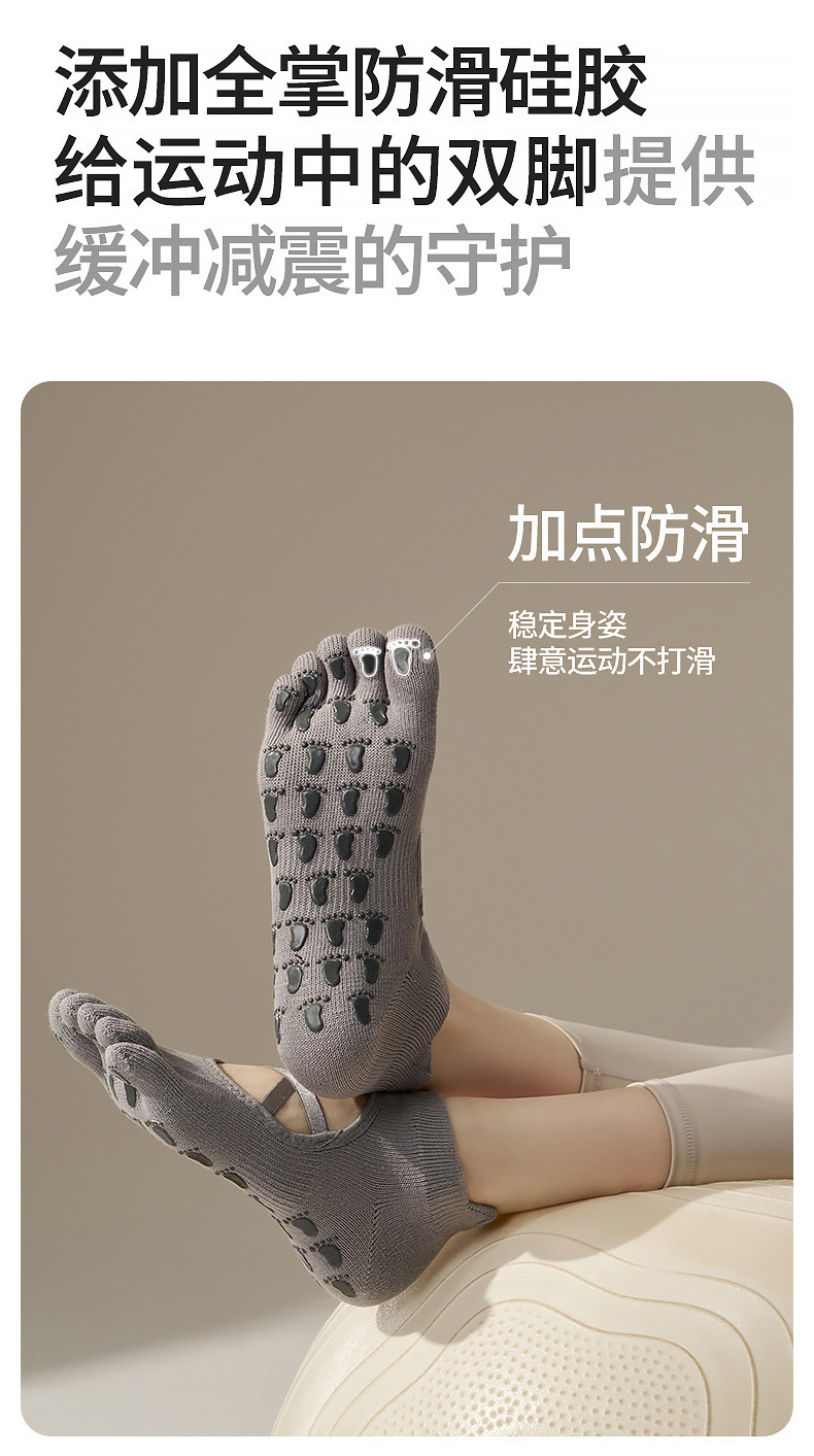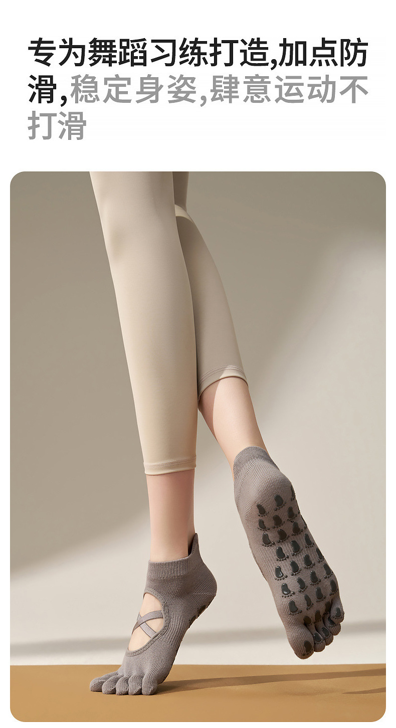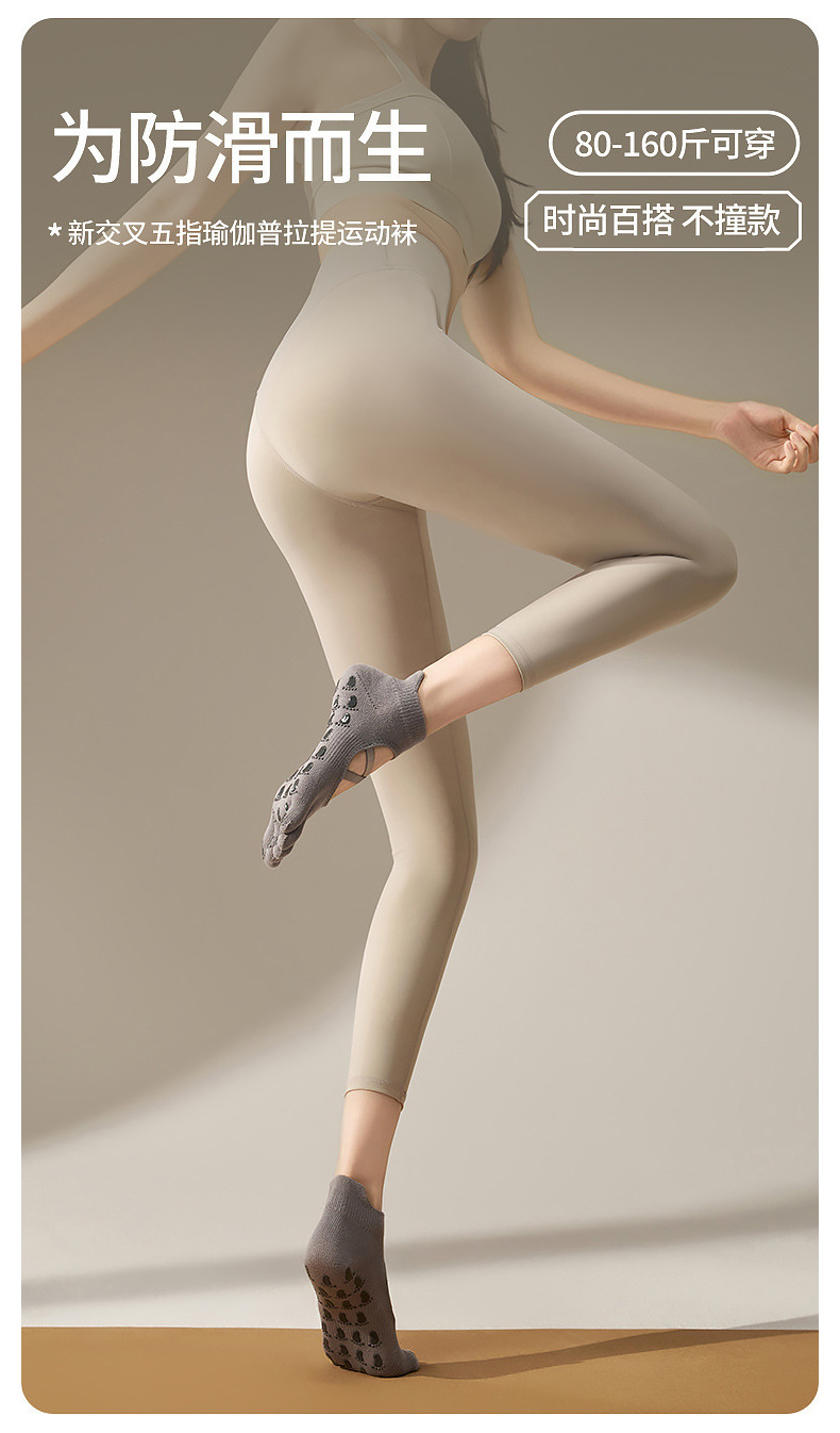 Calcetines especiales Yoga Pilates Calcetines antideslizantes de algodón transpirables Calcetines de cinco dedos de yoga Calcetines de dedos de fitness de tubo corto para mujer