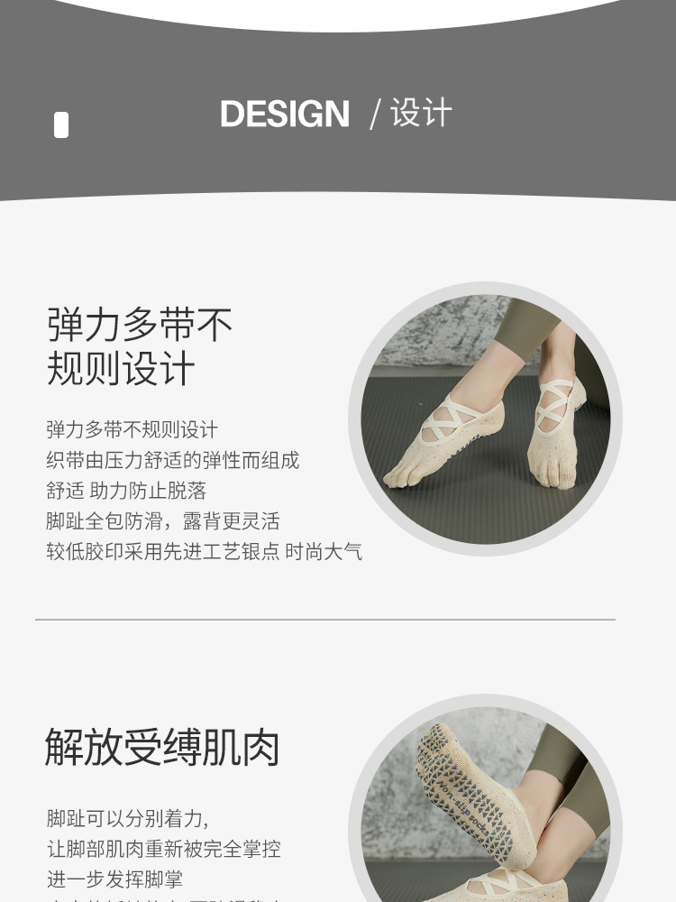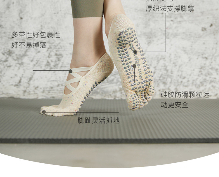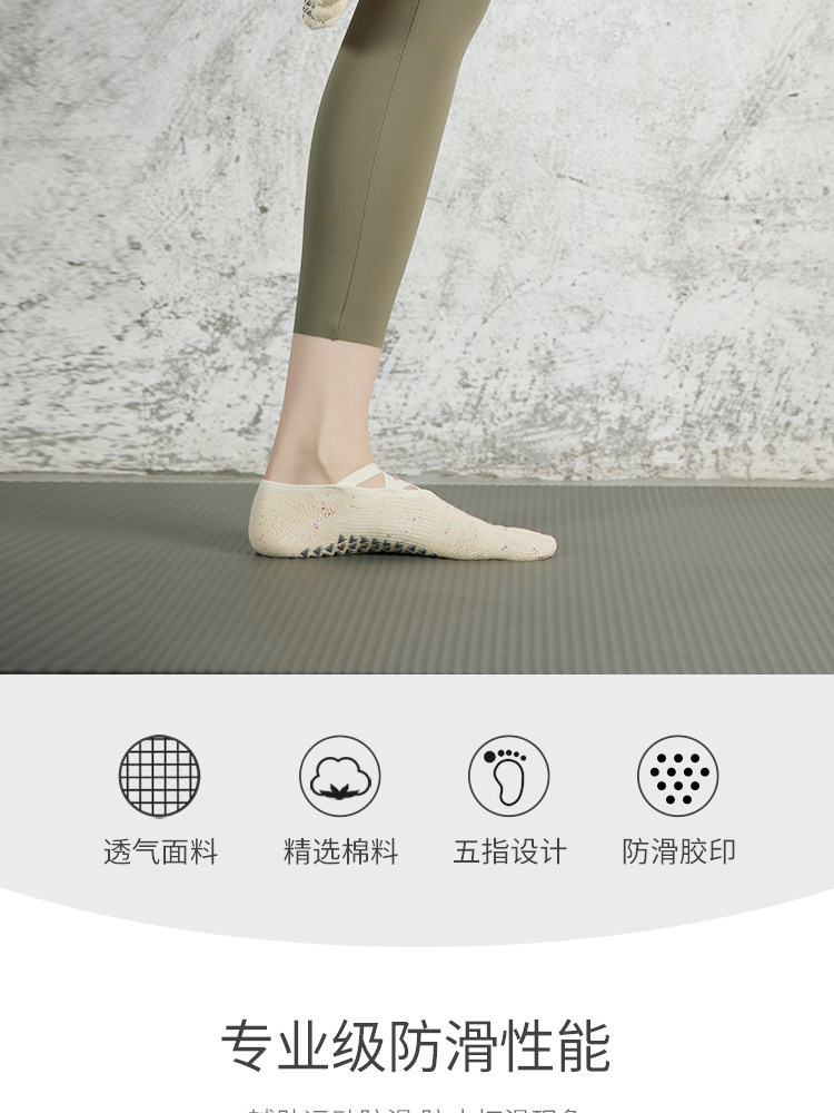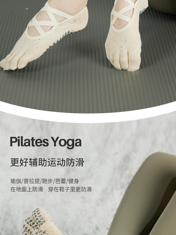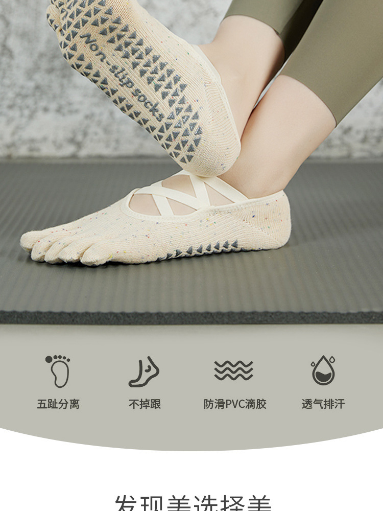 Calcetines de Pilates con cinco dedos y tiras, calcetines de yoga para mujer, calcetines deportivos profesionales antideslizantes, de algodón puro con dedos separados, exportación a Japón y Corea.