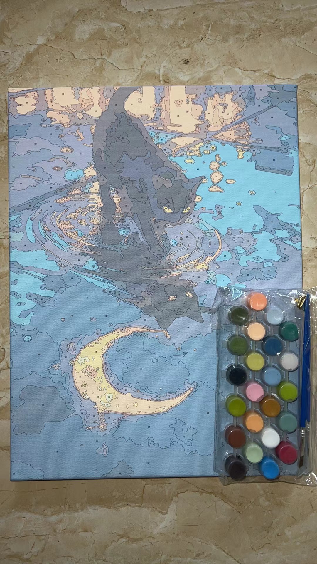 Luna gato diy pintura digital al óleo 2024 nuevo sistema de curación pintura al óleo de relleno acrílico descompresión regalo pintado a mano