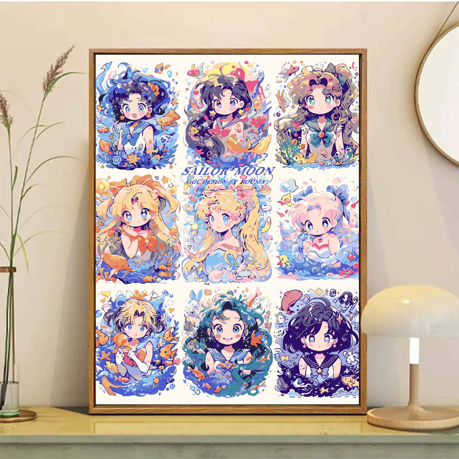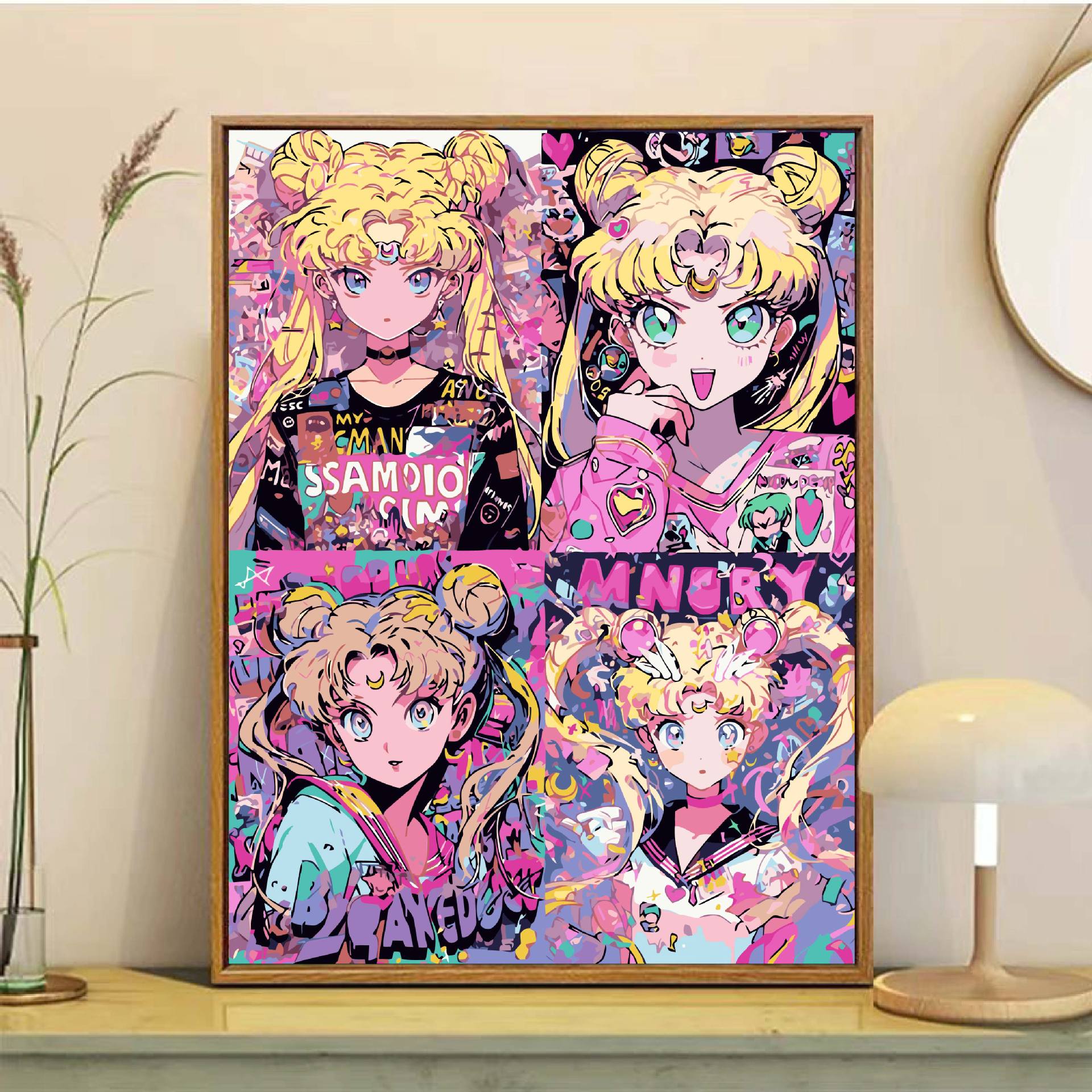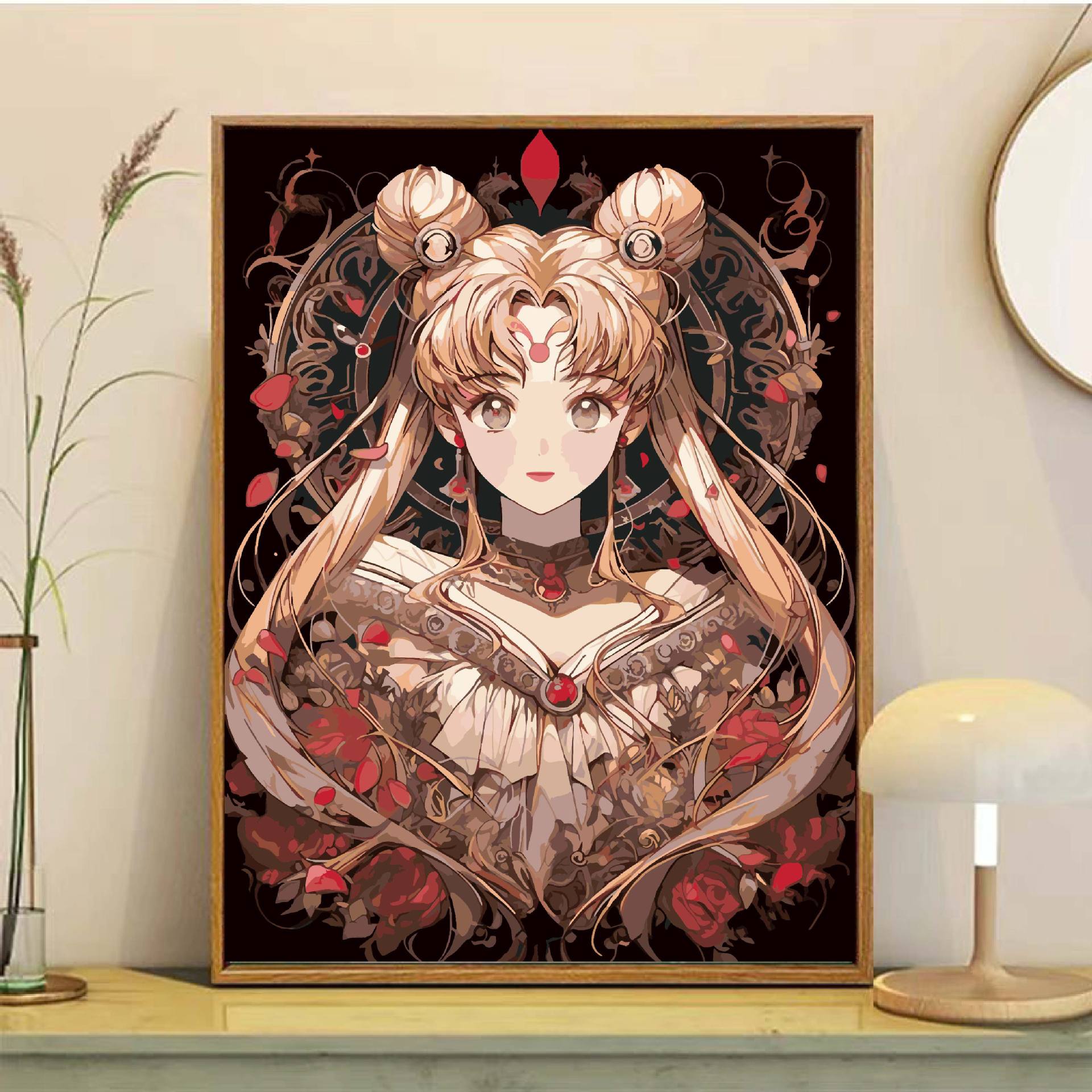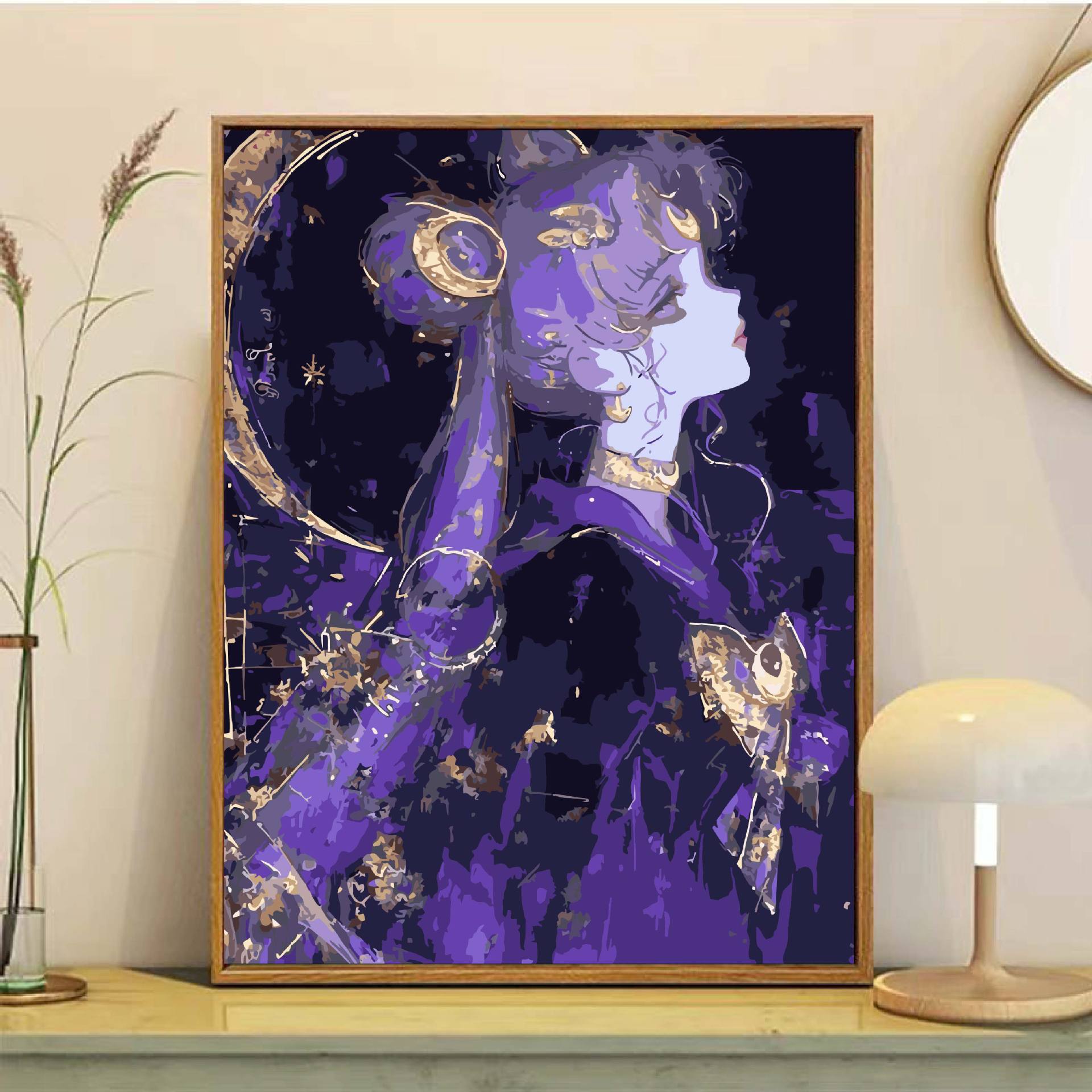 Sailor Moon pintura al óleo digital DiDi princesa pintura de agua hielo luna animación pintura colgante simple pintura de relleno manual