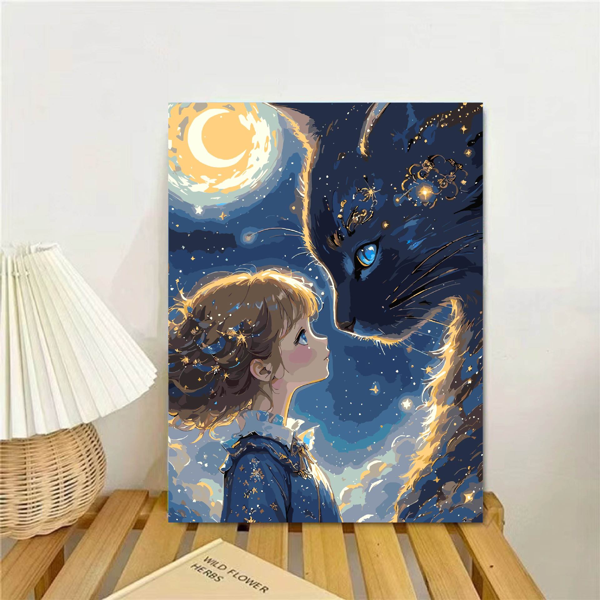 Gato chica pintura al óleo digital diy2025 nuevo sistema de curación para aliviar el aburrimiento pintado a mano relleno de pintura al óleo acrílico