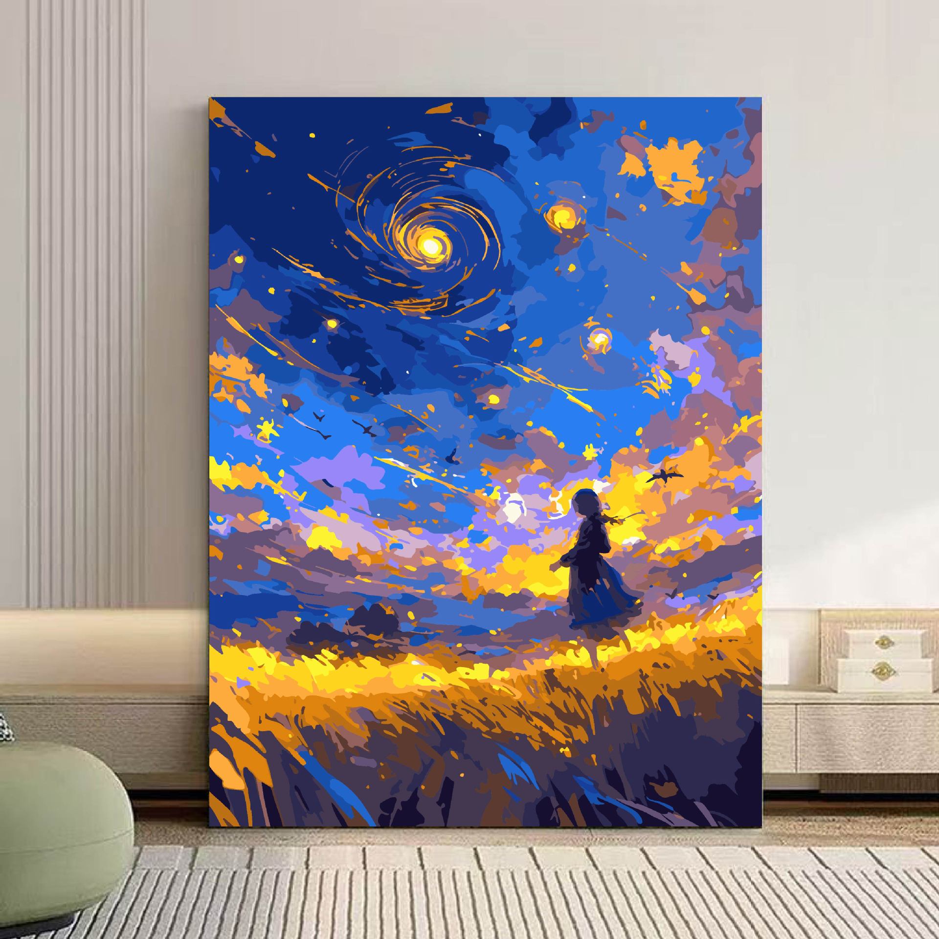 Mar de estrellas pinturas al óleo digitales di relleno pintura al óleo dibujos animados abstracto sentido avanzado descompresión pintura a mano color rico