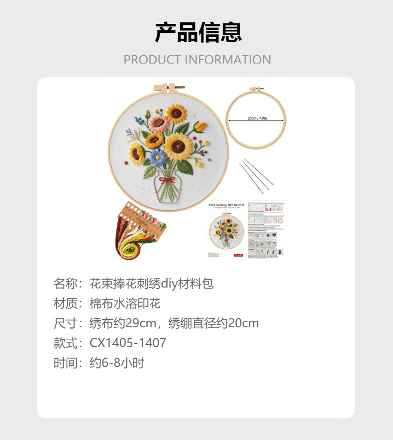 Nuevos productos bordados a mano DIY material paquete ramo de flores flores girasol original Amazon transfronterizo inglés