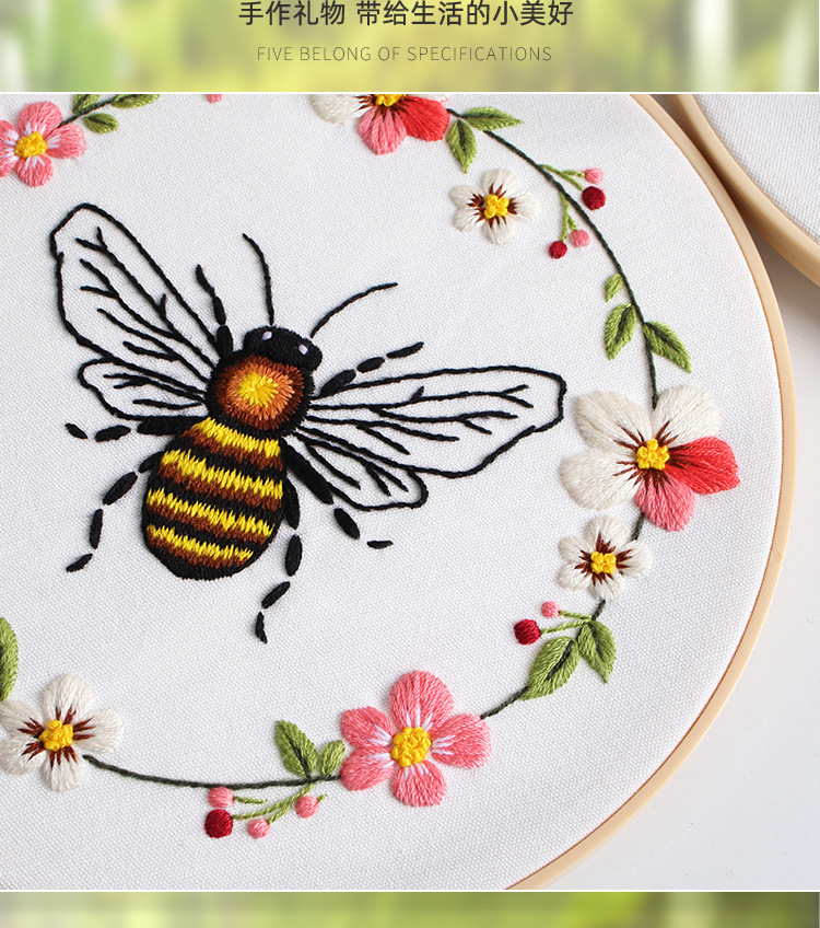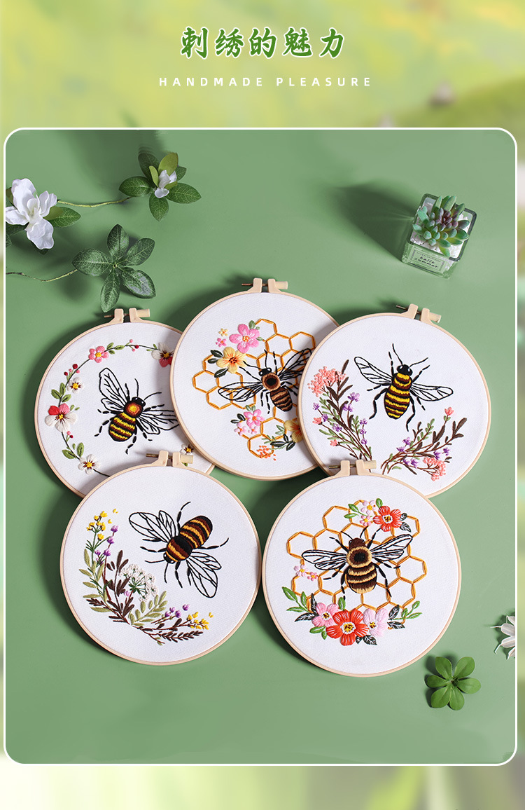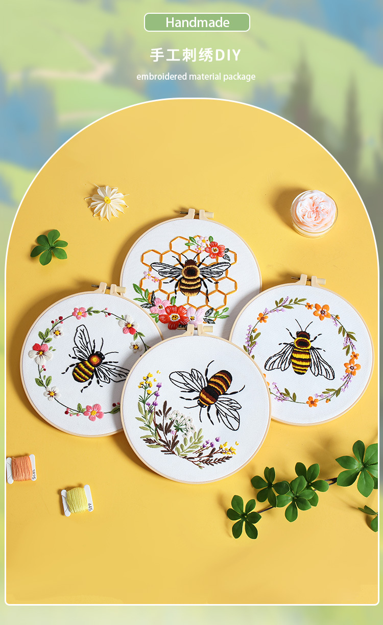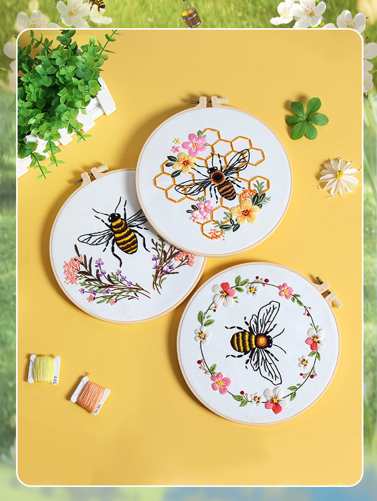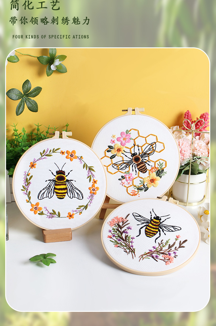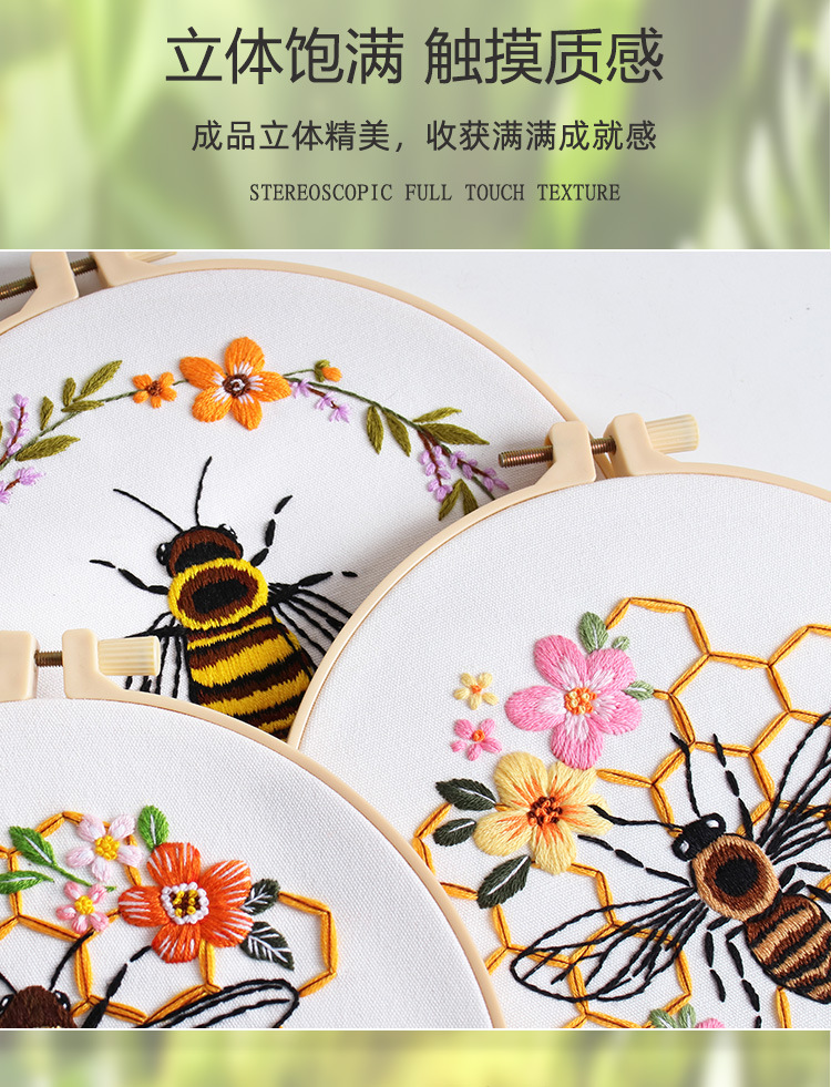 Nuevos productos de bordado de abejas europeas bordado tridimensional Amazon venta caliente bordado a mano diy paquete de material