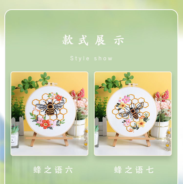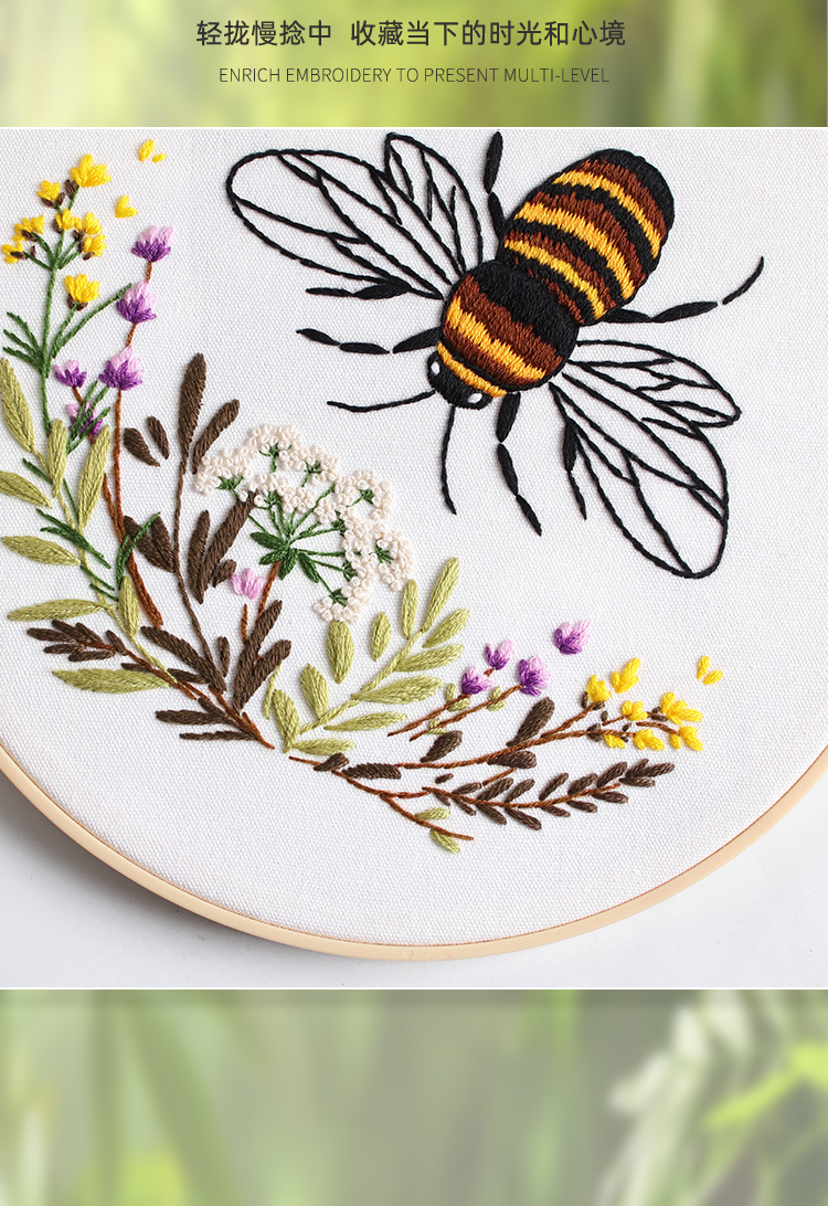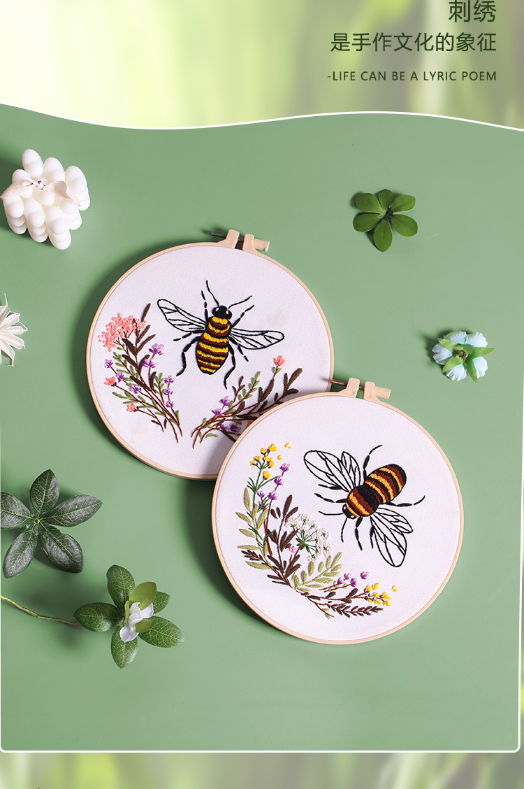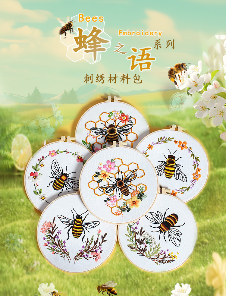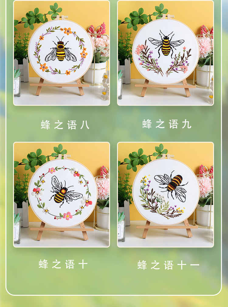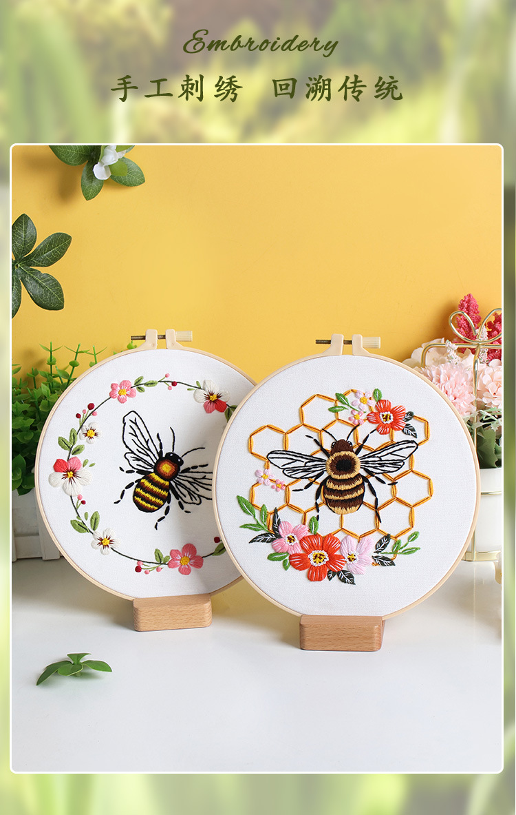 Nuevos productos de bordado de abejas europeas bordado tridimensional Amazon venta caliente bordado a mano diy paquete de material