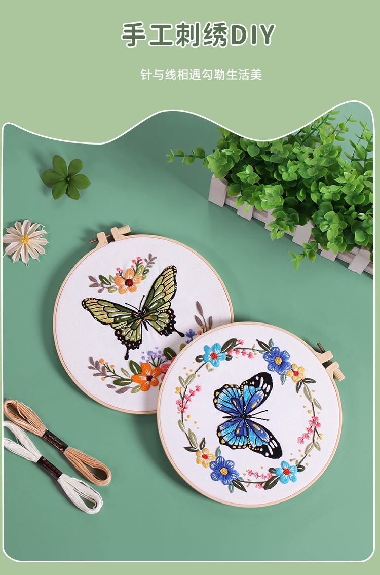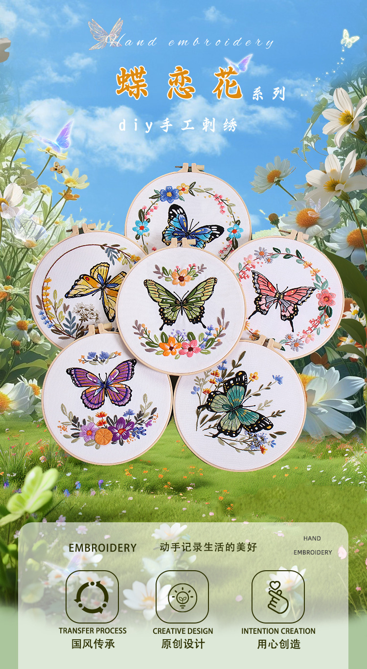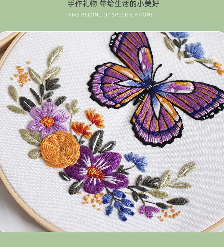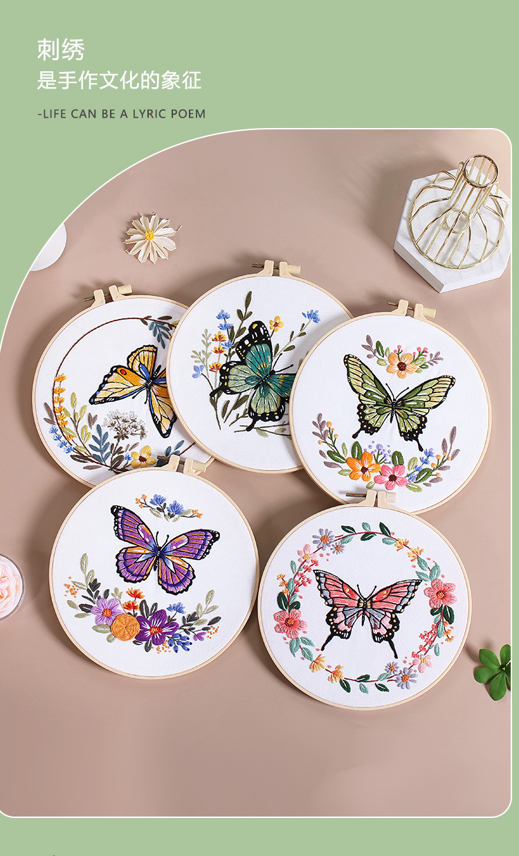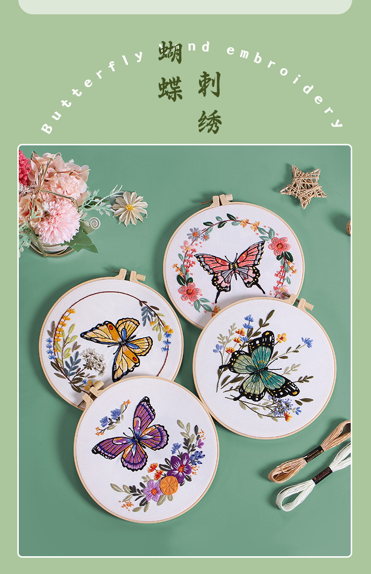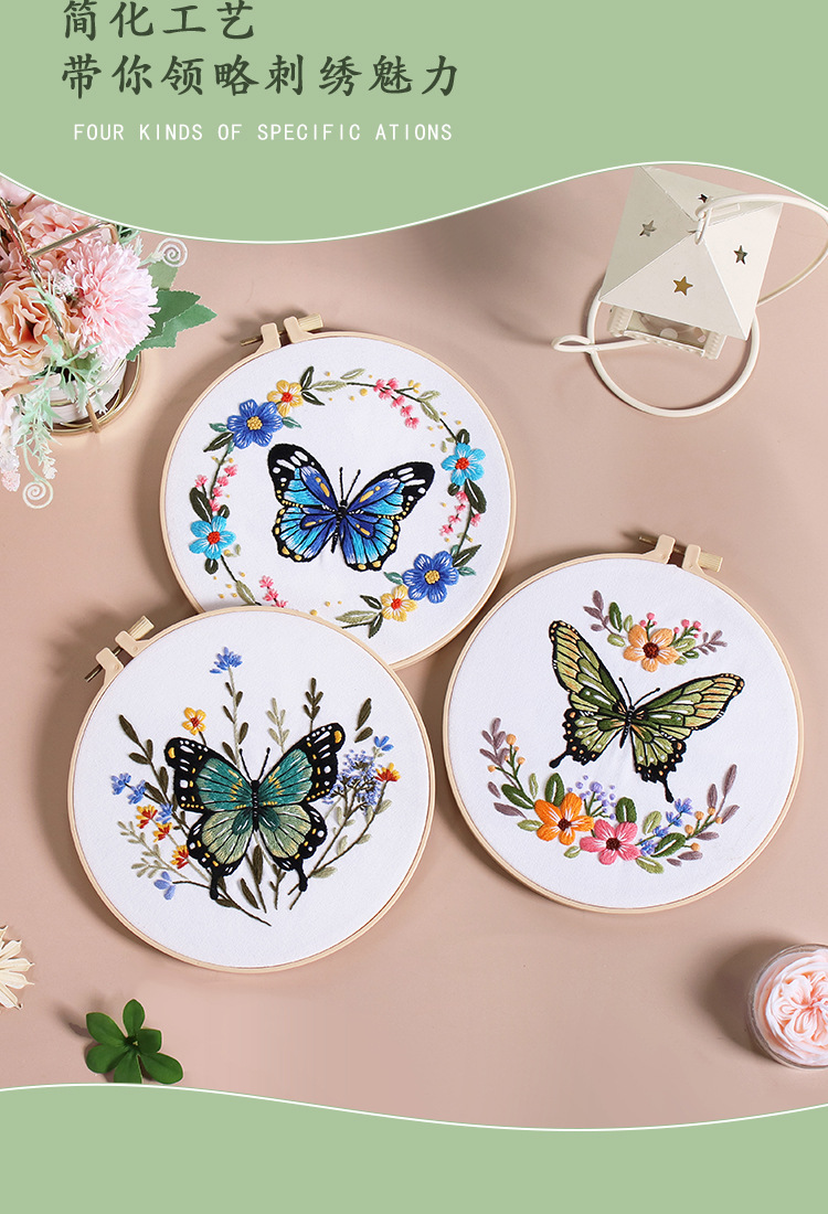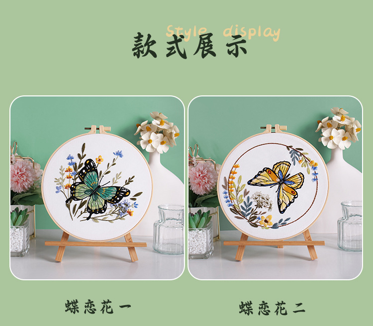 Original nuevo paquete de materiales de bordado DIY mano mariposa amor flores mariposa kit de bordado cruzado venta caliente Inglés creativo