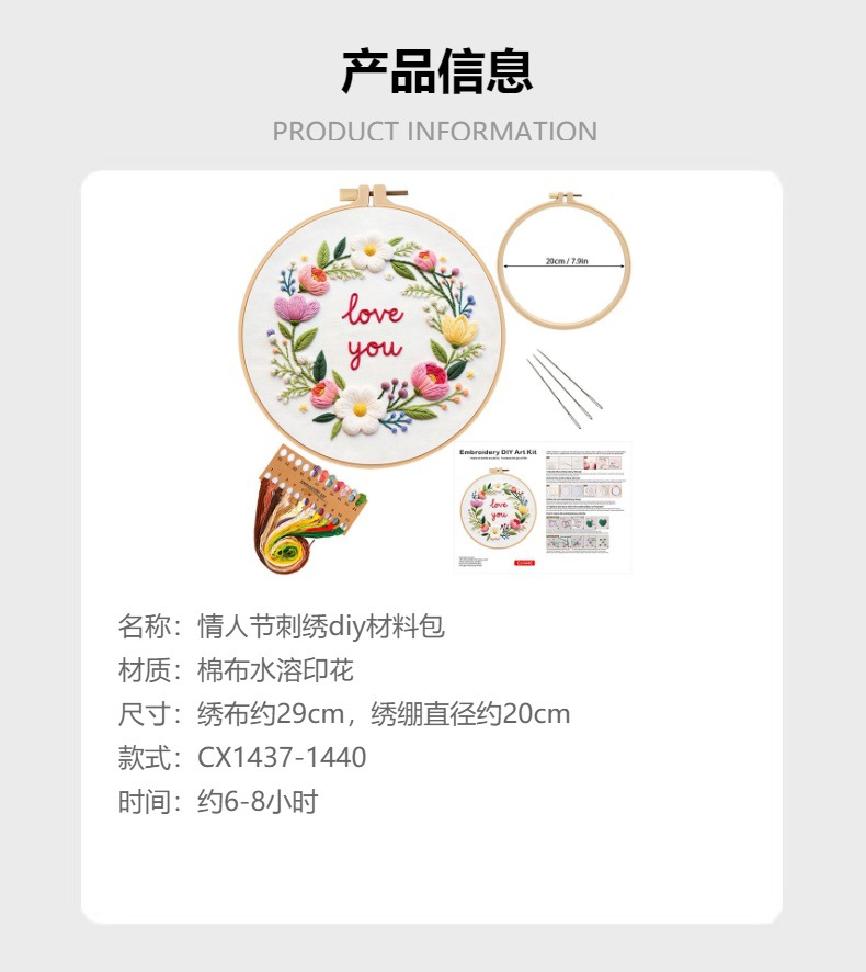 Nuevo día de San Valentín bordado flordiy material hecho a mano paquete original de aguja transfronterizo inglés