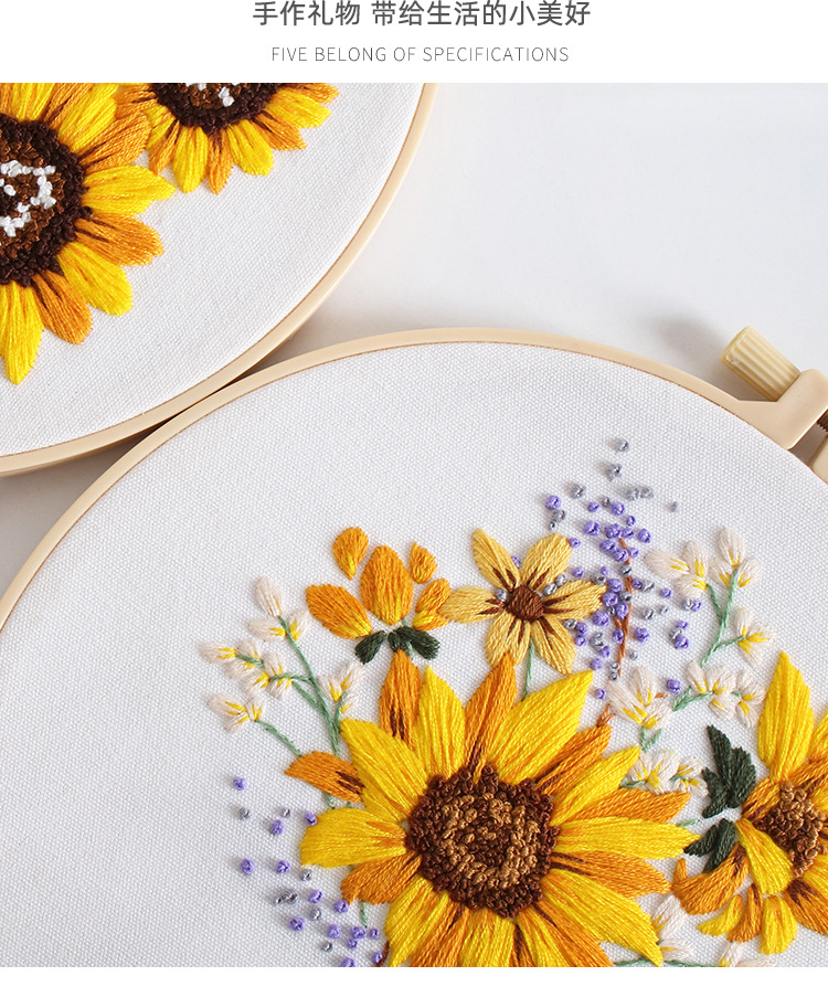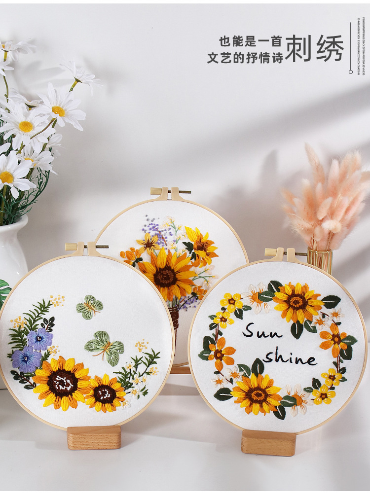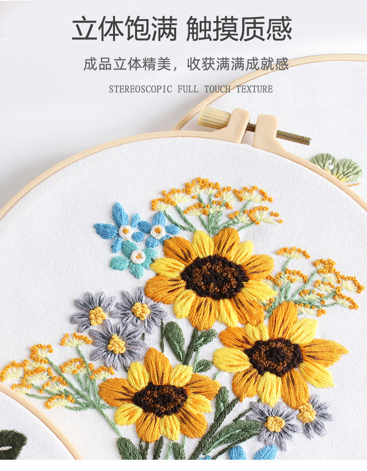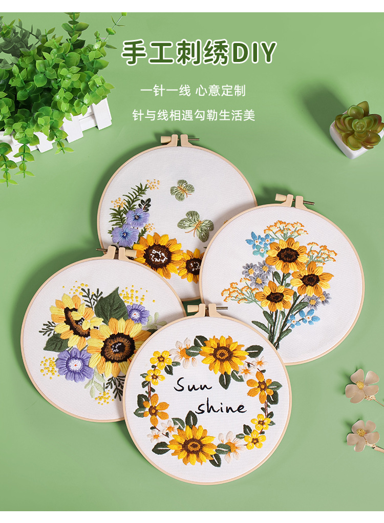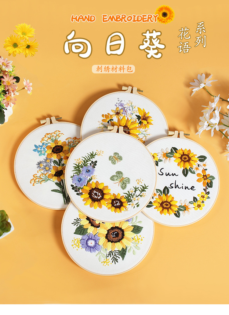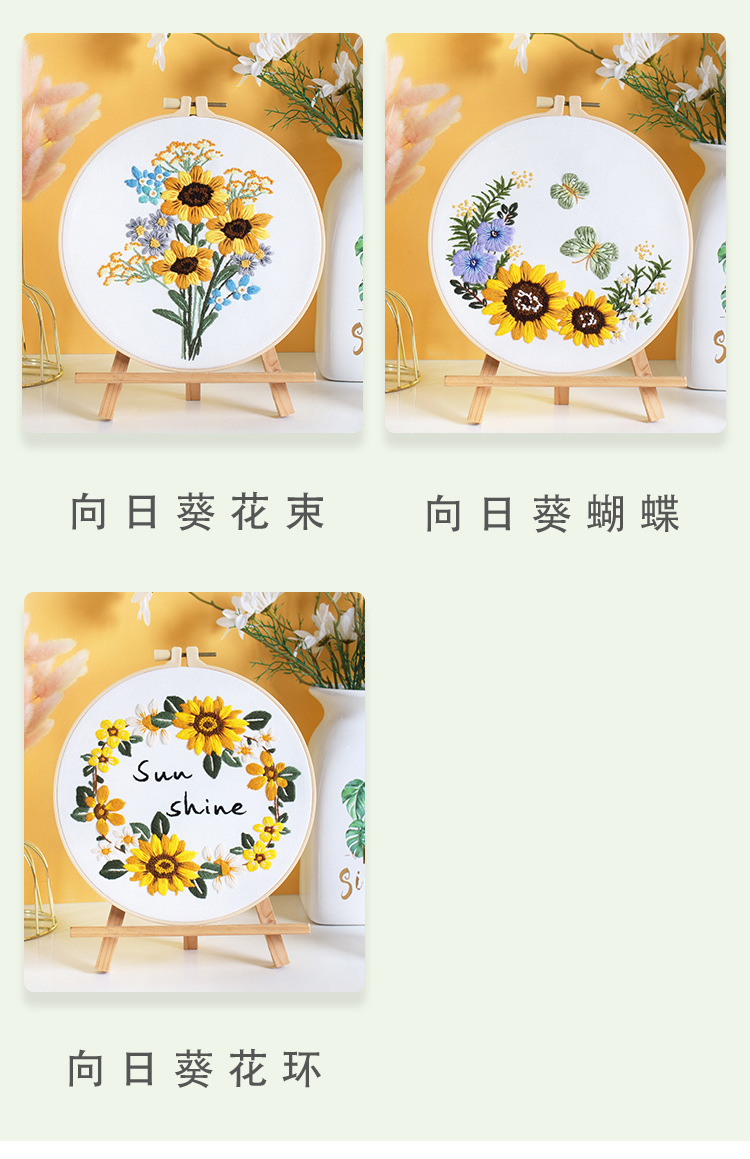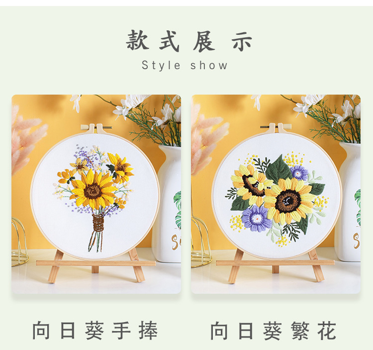Paquete de material de bordado hecho a mano de bricolaje original nuevo ramo de flores de girasol guirnalda transfronteriza inglés